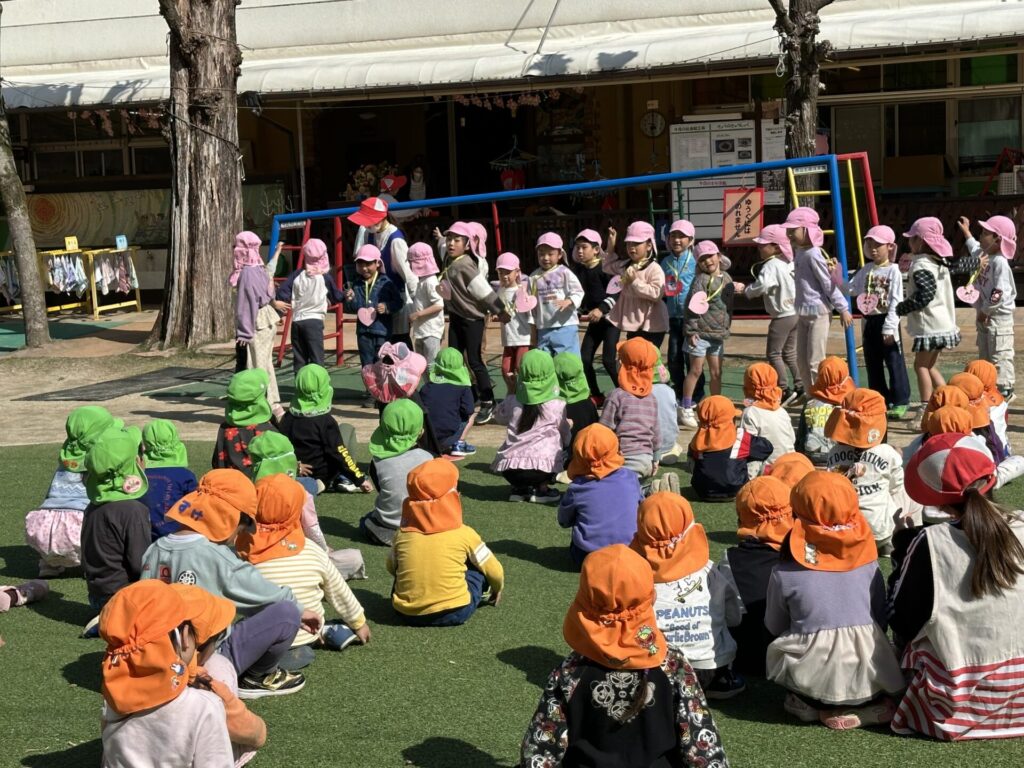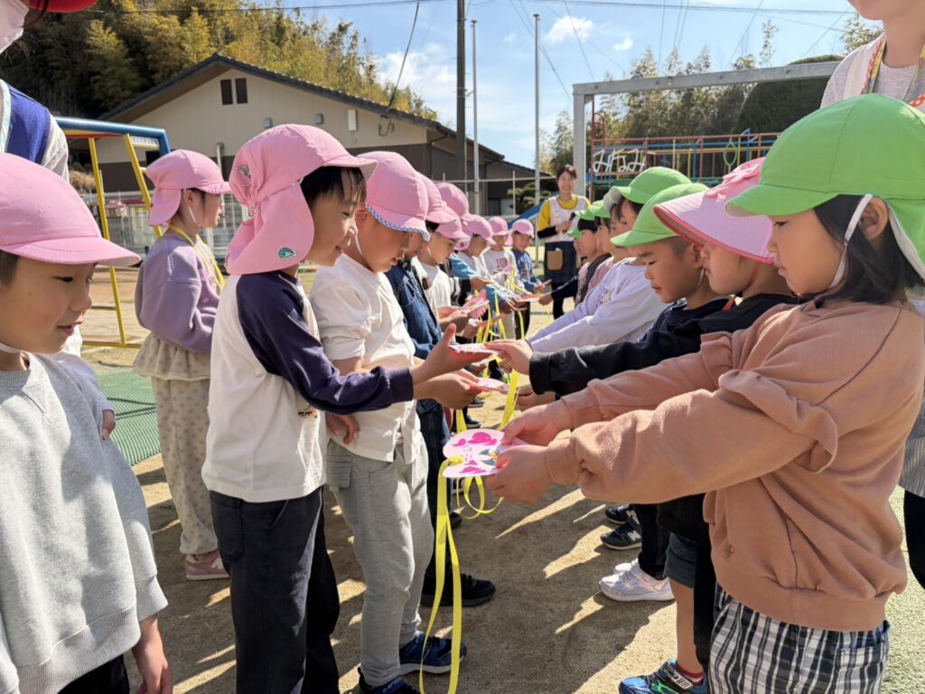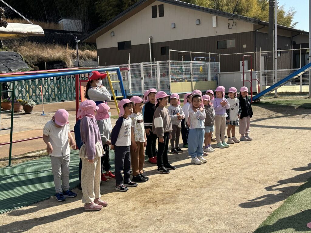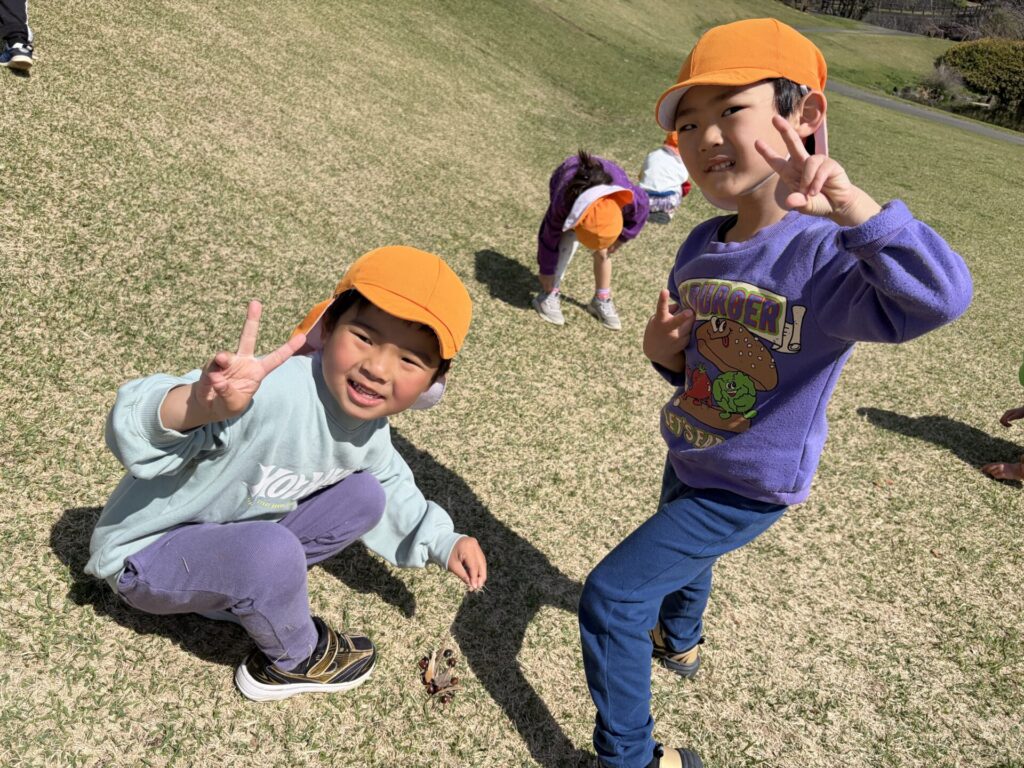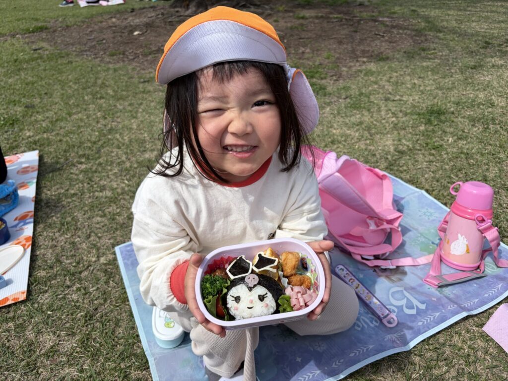 202603.26 お別れ遠足① 今日は、お別れ遠足でした! 天候に恵まれて、以上児クラスは園庭でレクレーションをした後、妙泉寺公園にいって沢山遊びました! みんな大好きお弁当の時間は、ハイテンションで大盛り上がりでしたよ✨ ●園庭でのレクレーション ●さくら組