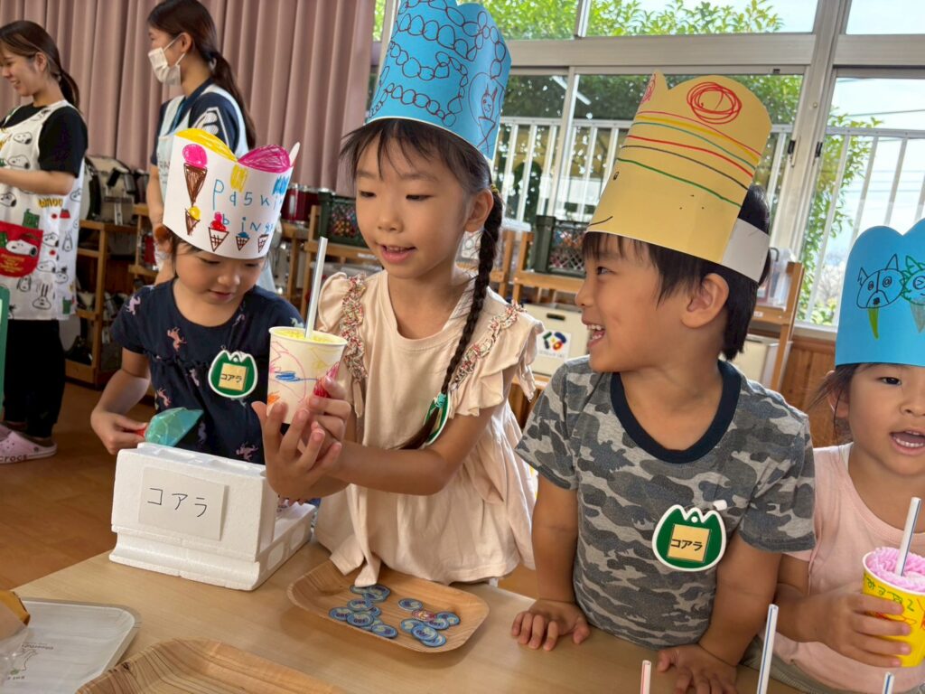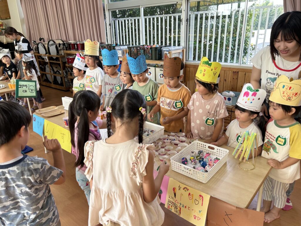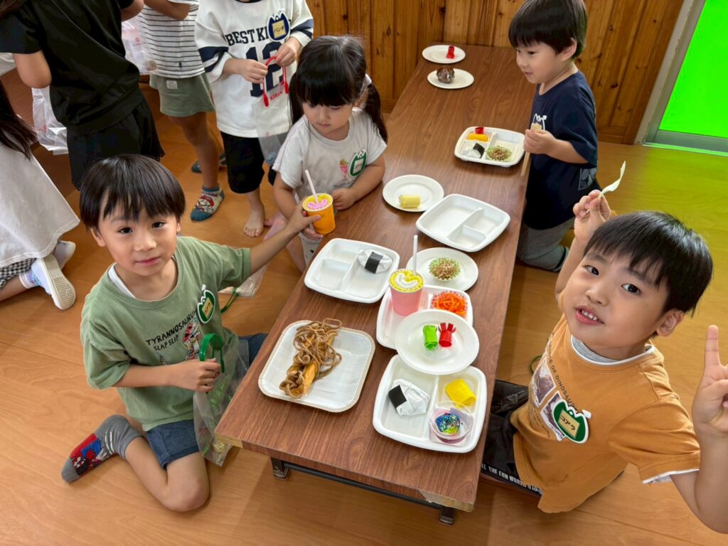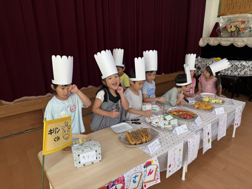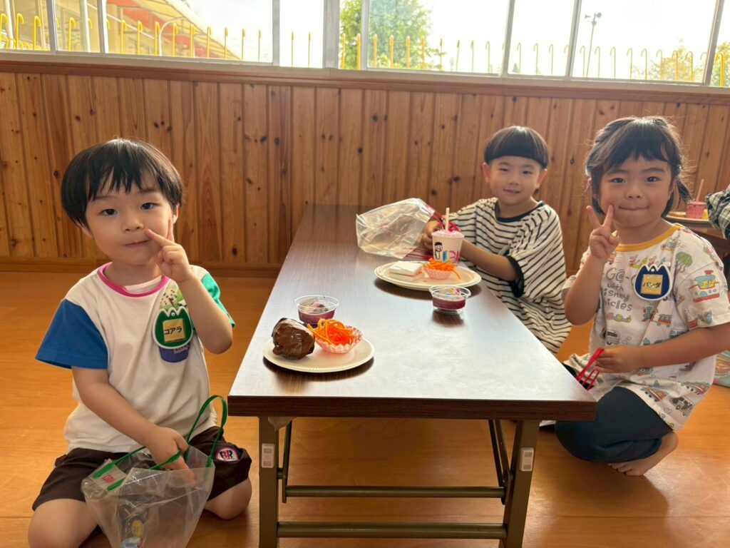 202510.17 お店屋さんごっこ② R7/10/16(木)2階ホールで、お店屋さんごっこをしましたよ✨ ●キルン組(パン屋さん) ●コアラ屋さん(アイス屋さん) ●パンダ組(お弁当屋さん) ●みんなで思い思いにお店屋さんごっこを楽しみましたよ✨😆