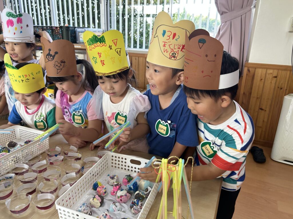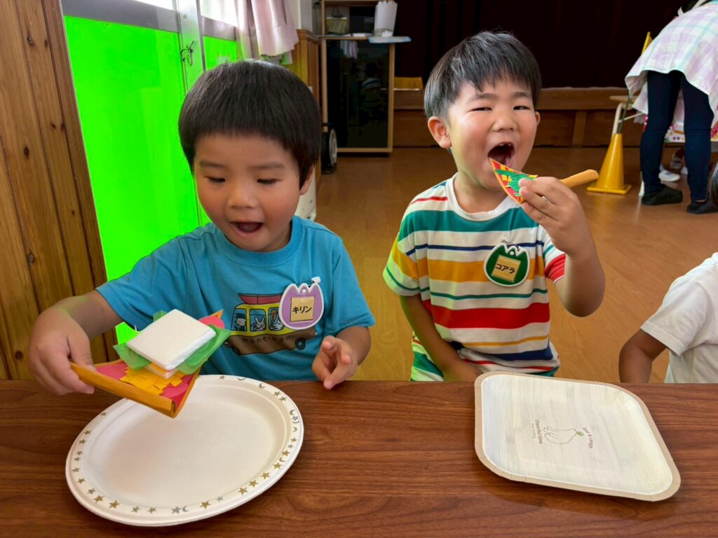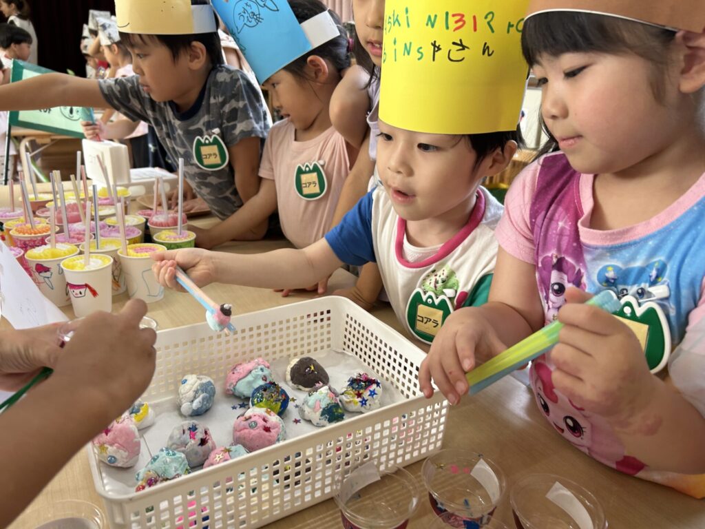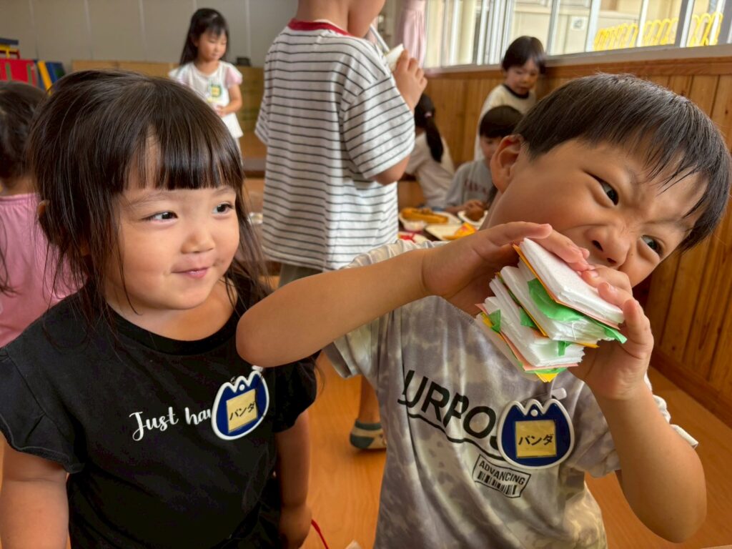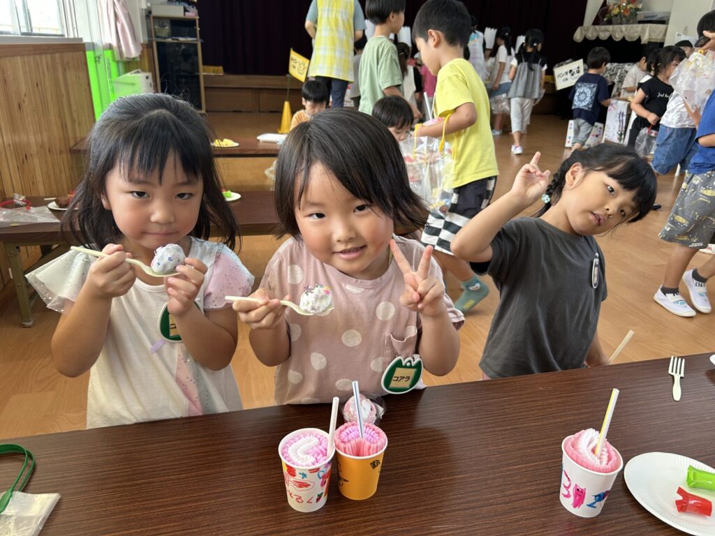 202510.17 お店屋さんごっこ② R7/10/16(木)2階ホールで、お店屋さんごっこをしましたよ✨ ●キルン組(パン屋さん) ●コアラ屋さん(アイス屋さん) ●パンダ組(お弁当屋さん) ●みんなで思い思いにお店屋さんごっこを楽しみましたよ✨😆