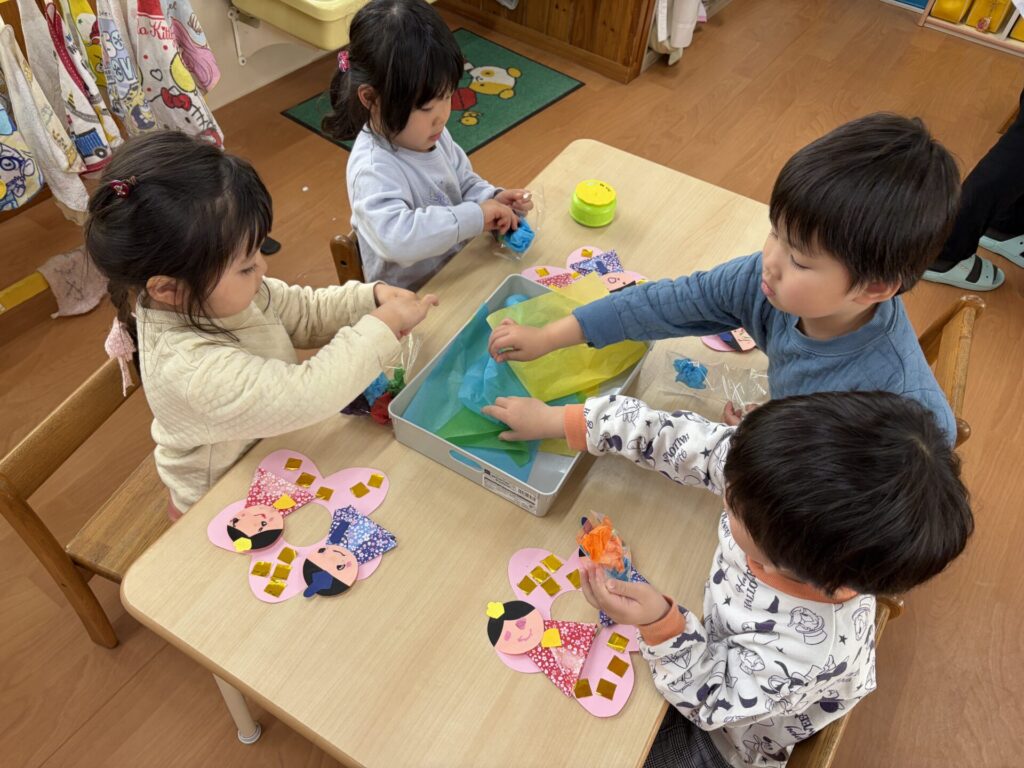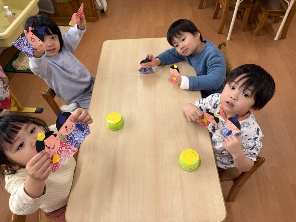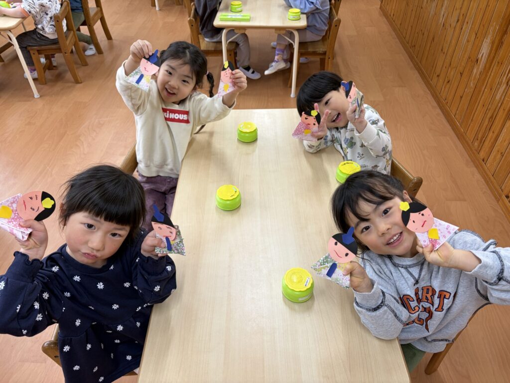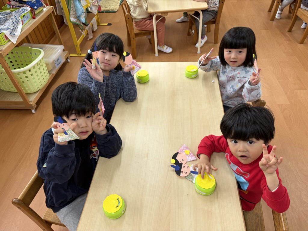 202602.06 さくら組(ひな祭り制作) 3月のひな祭りに向けて制作をしました! 『ひな祭り』の歌を歌いながら、楽しく制作をしましたよ✨ 着物を折り紙で折り、お顔をクレヨンで描き、可愛い仕上がりになりました💖 持ち帰りを楽しみにされて下さいね😁