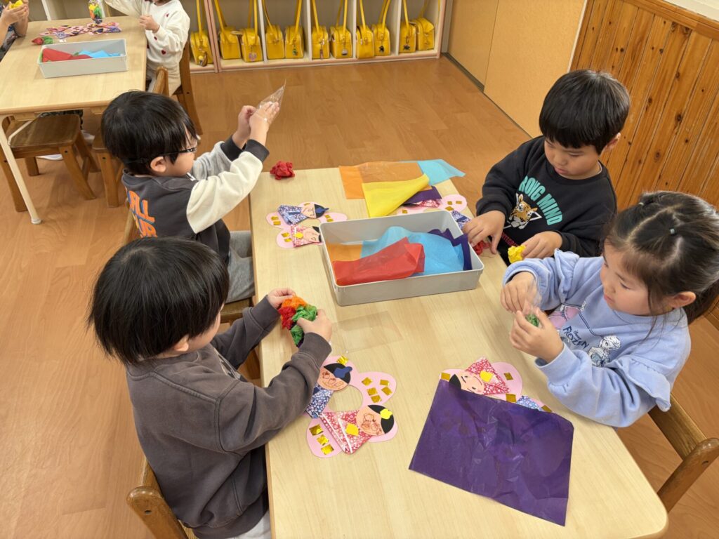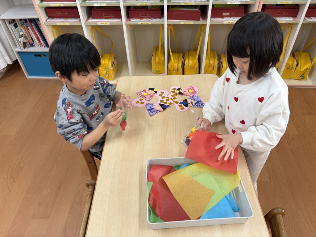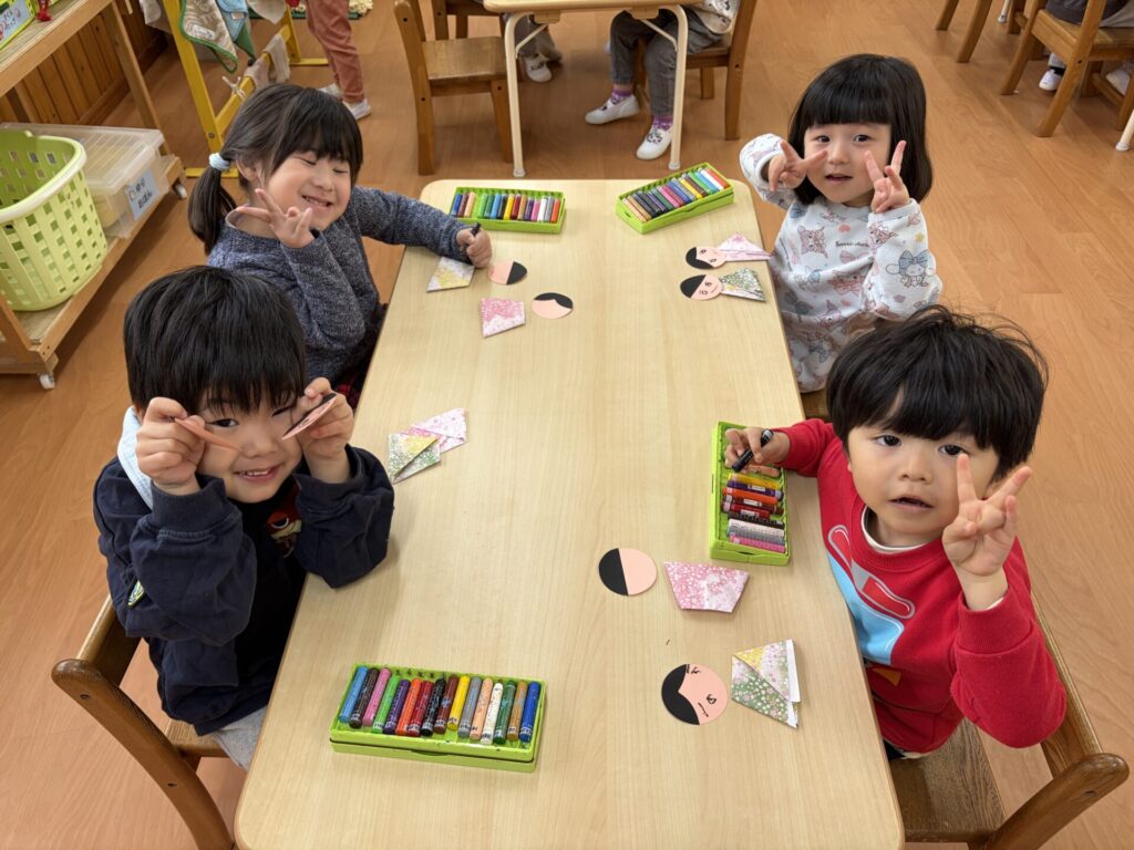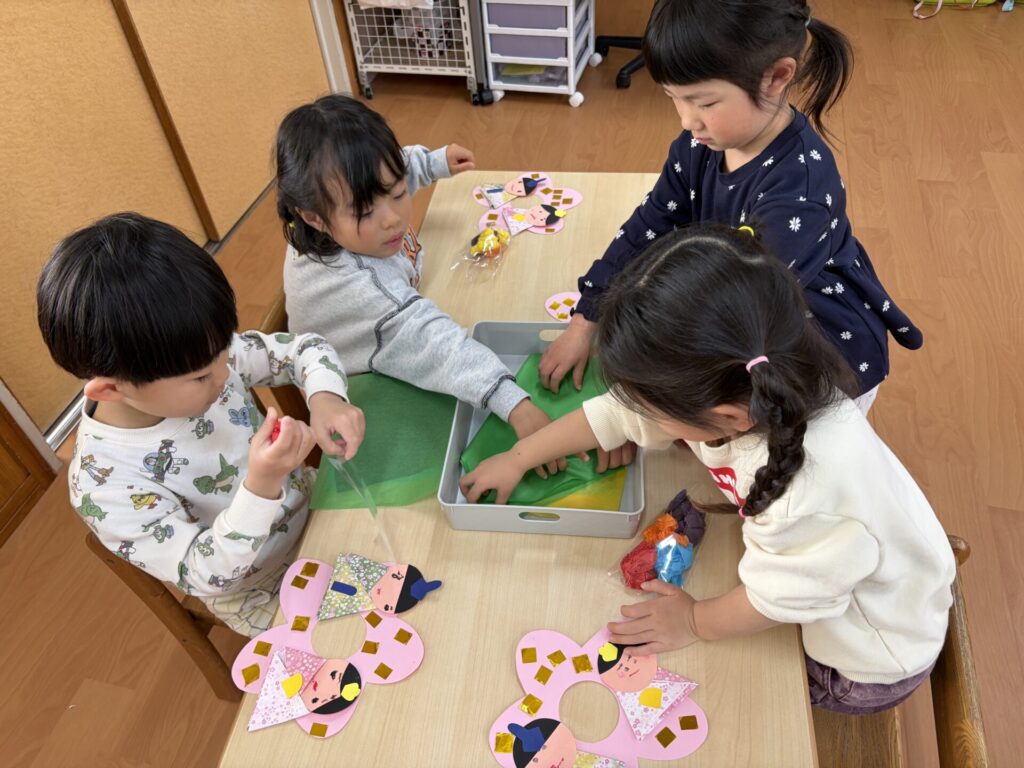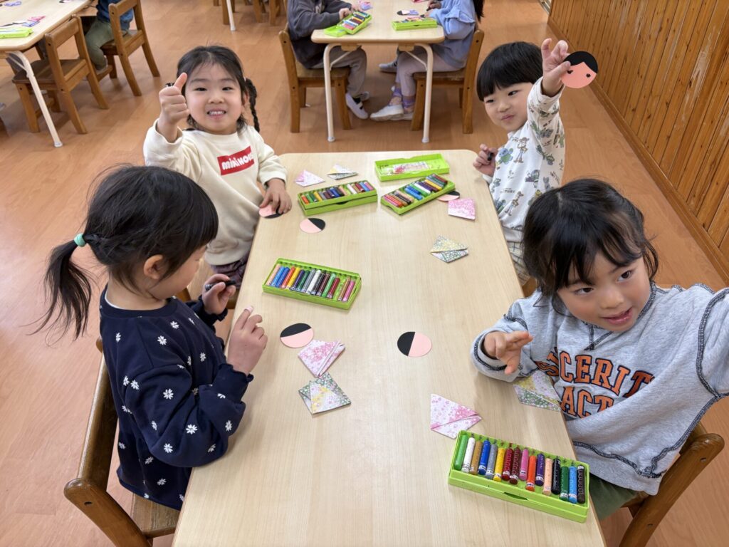 202602.06 さくら組(ひな祭り制作) 3月のひな祭りに向けて制作をしました! 『ひな祭り』の歌を歌いながら、楽しく制作をしましたよ✨ 着物を折り紙で折り、お顔をクレヨンで描き、可愛い仕上がりになりました💖 持ち帰りを楽しみにされて下さいね😁