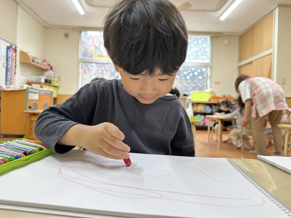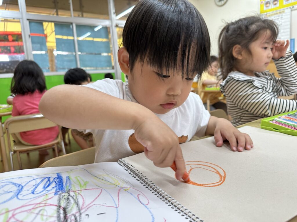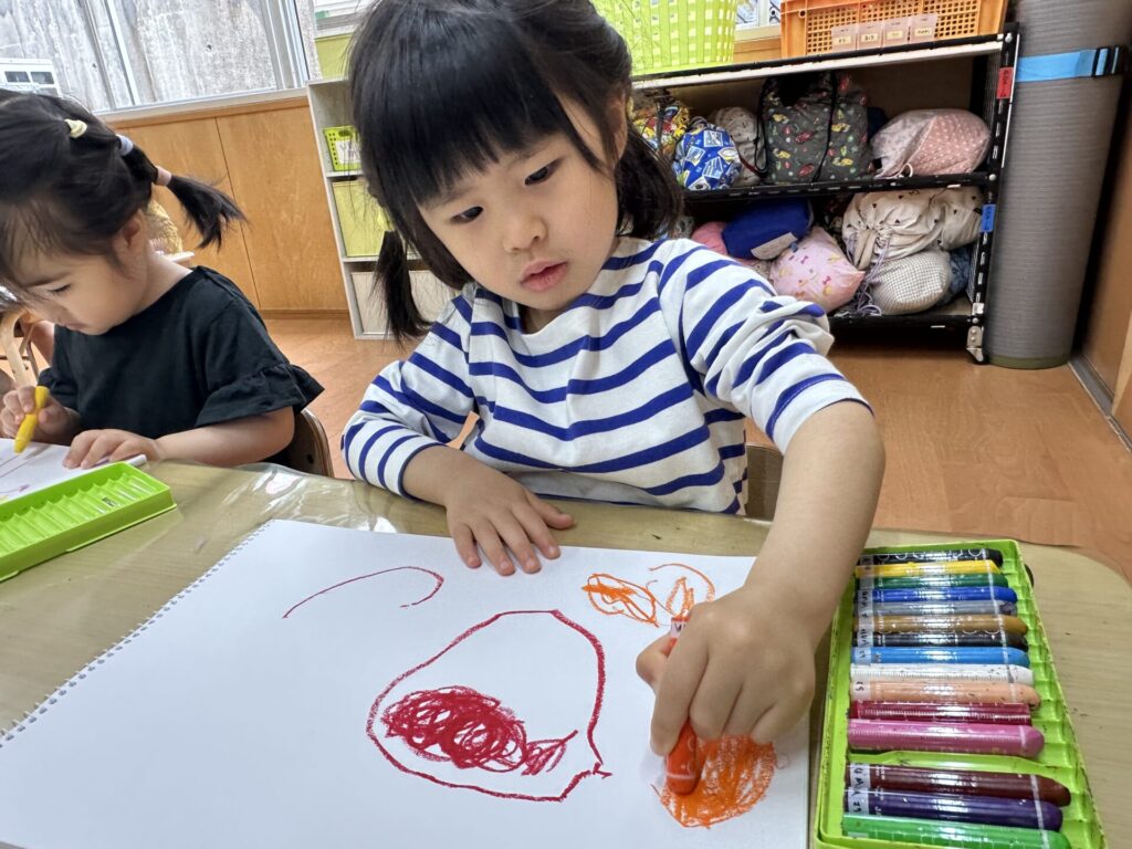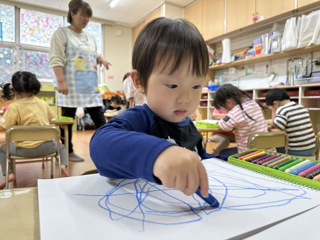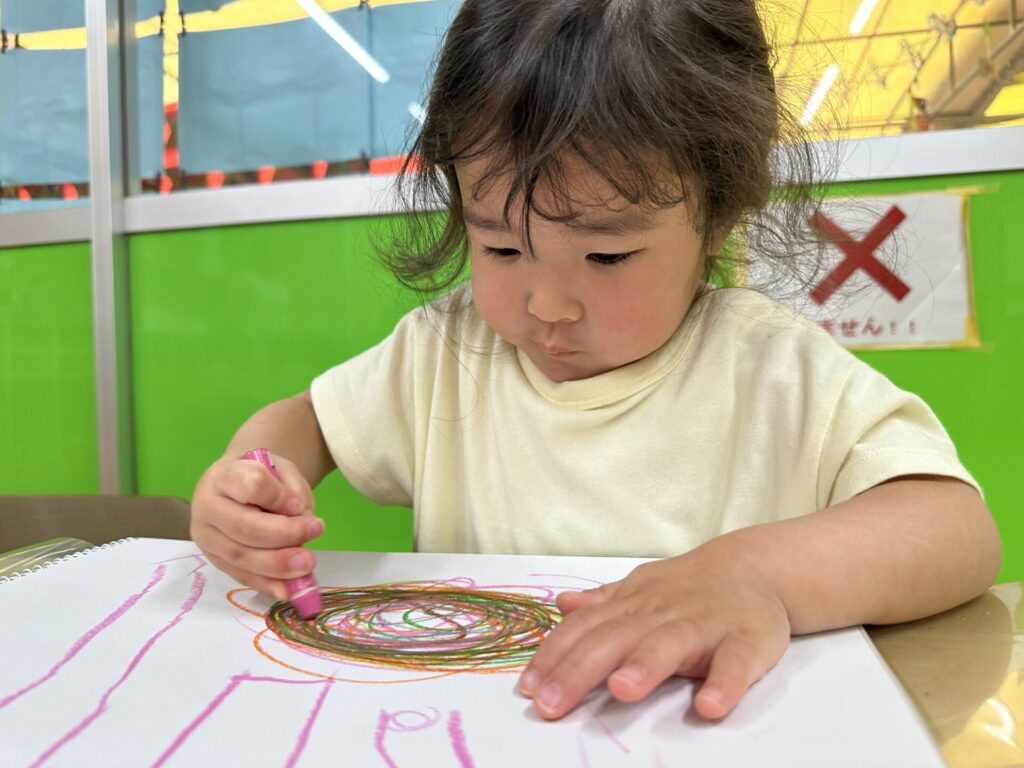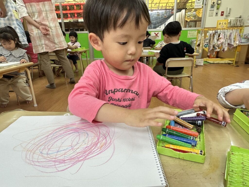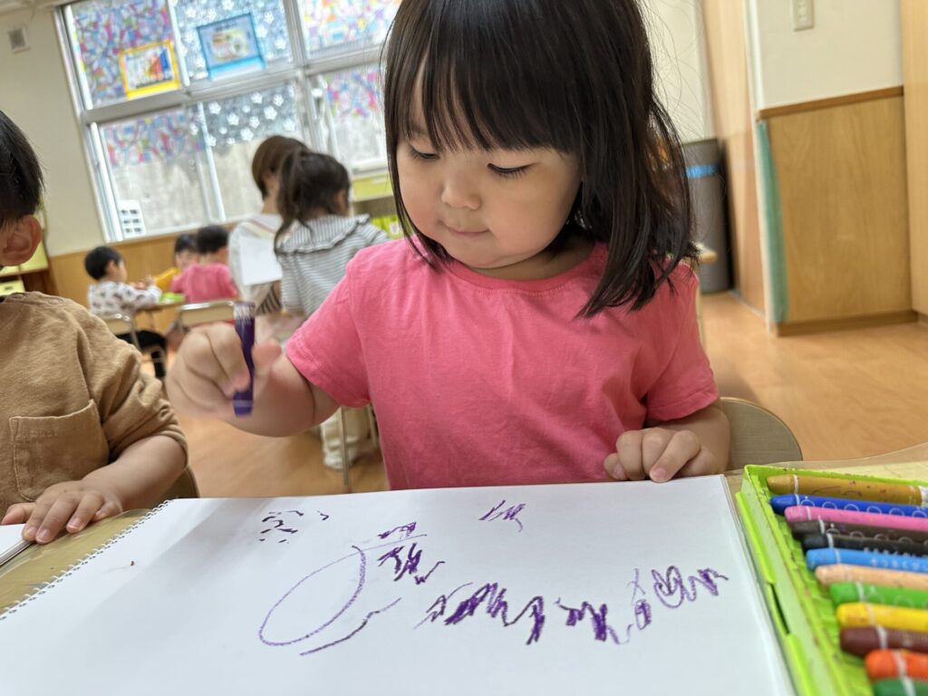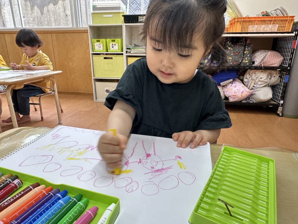 202604.24 さくら組(クレヨンでお絵描きしたよ!) ●4/23(木)クレヨンでお絵描きをしました! 1人1冊ある自由が帳を嬉しそうに手に取り、お絵描きを楽しみました✨ 「これ、ママ!!」「これ、アイス!!」と描いたものを教えてくれました💖