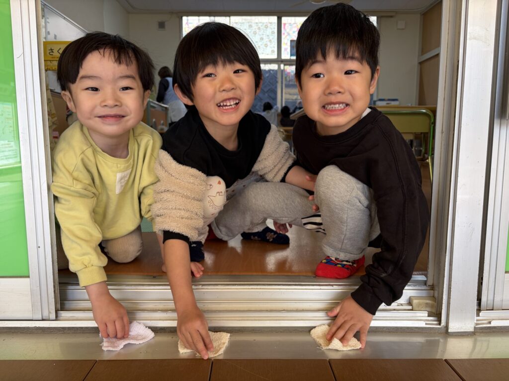 202512.26 さくら組(大掃除) 1年間お世話になった、さくら組のお部屋を大掃除しました! 雑巾を持つとはりきって、隅々まできれいにしてくれましたよ✨ ★今年1年間お世話になりました!良いお年をお迎えください💖 来年もよろしくお願いします💪