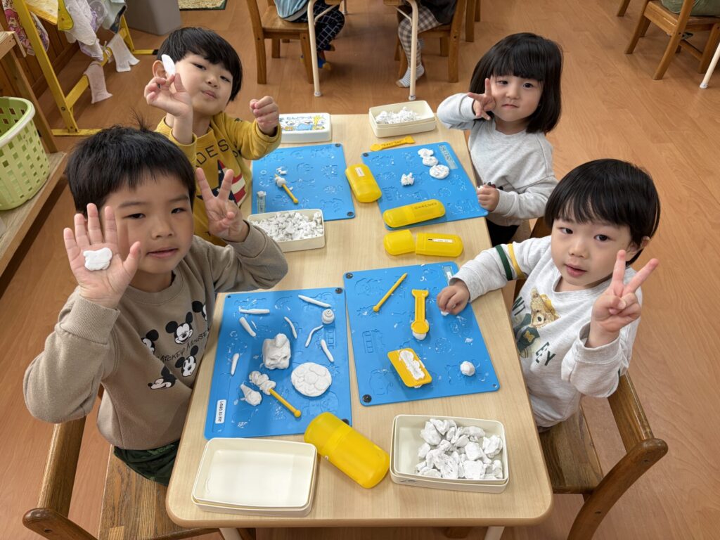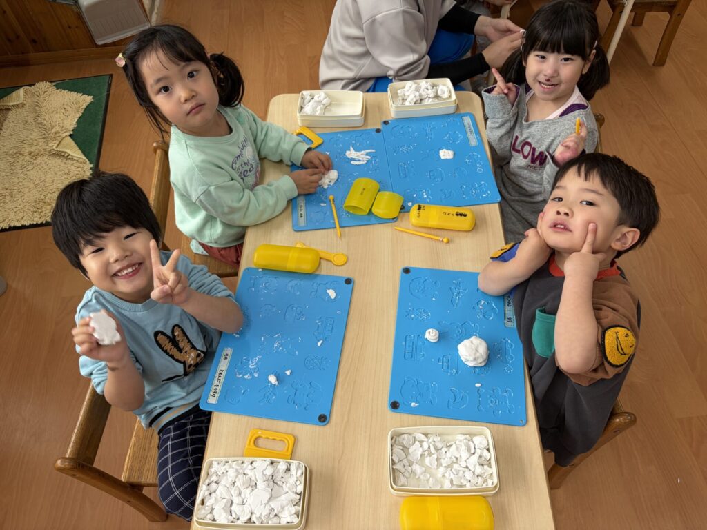 飴でお外に出られなかったので、室内で粘土やお絵描きをして遊びました!