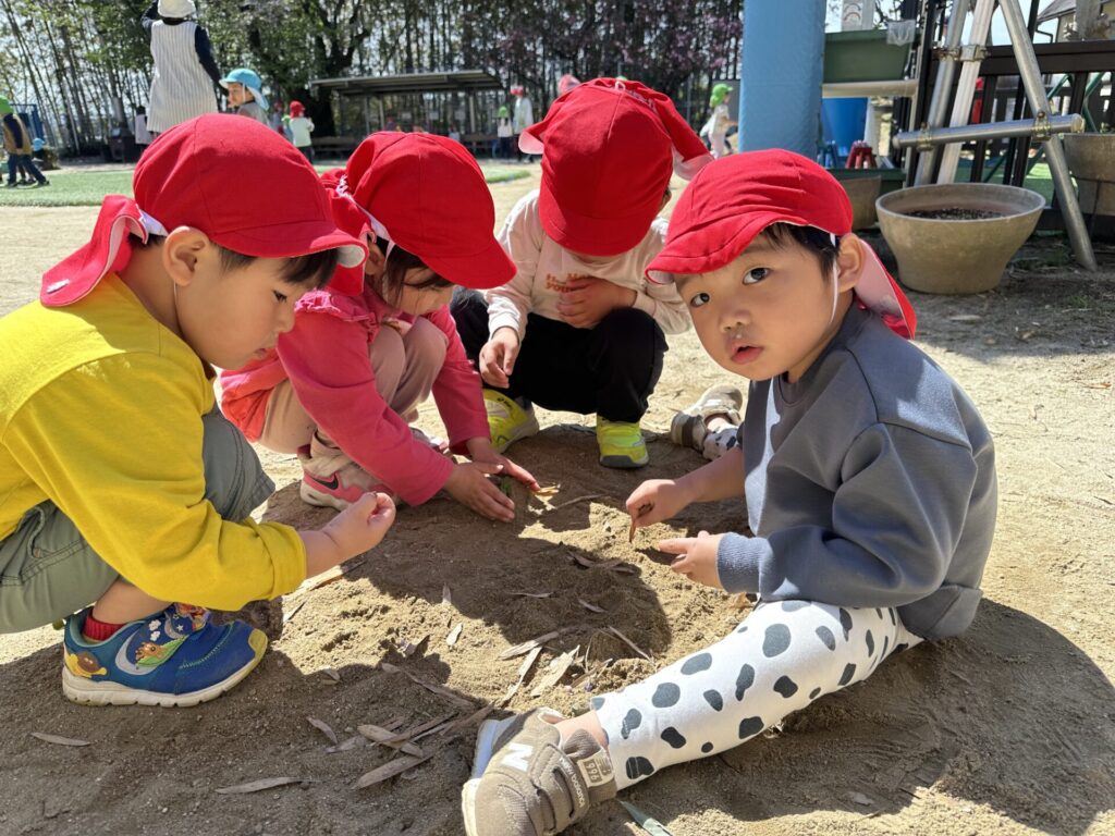 202604.08 さくら組(戸外遊び) ●4/7(火)天気が良かったので、戸外で沢山遊びました! また、4/7から登園後の外での砂場遊びが始まりました!さくら組さんすごく嬉しそうです😆 朝、時間に余裕を持っての登園にご協力いただき、ありがとうございます💖
