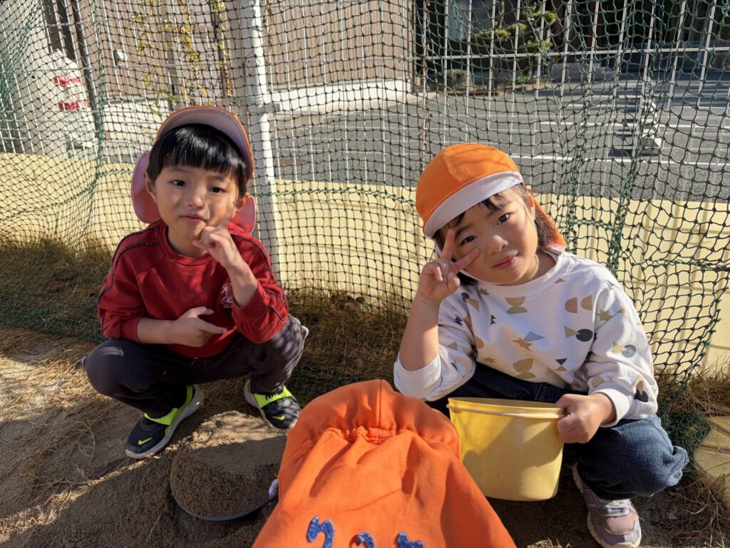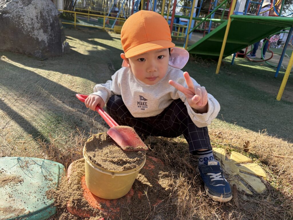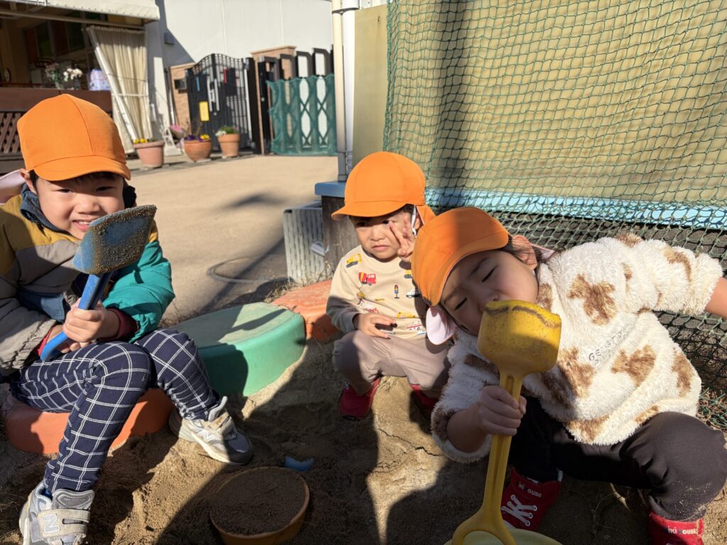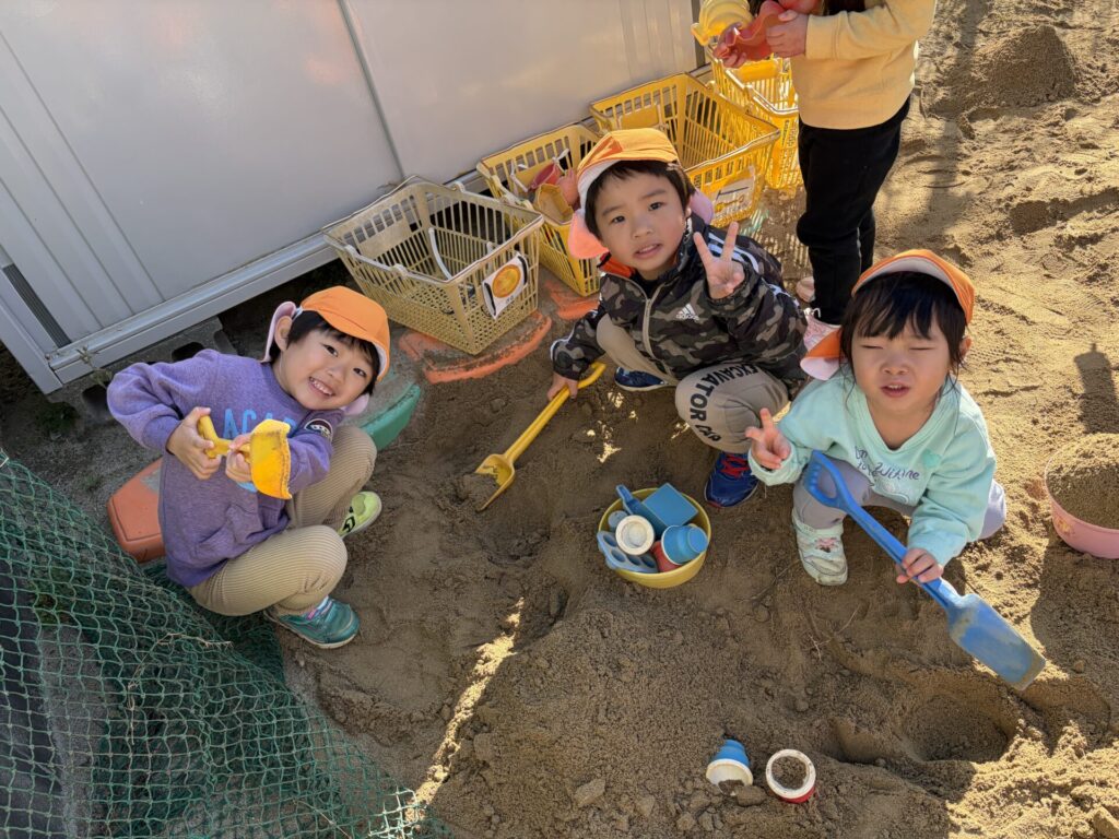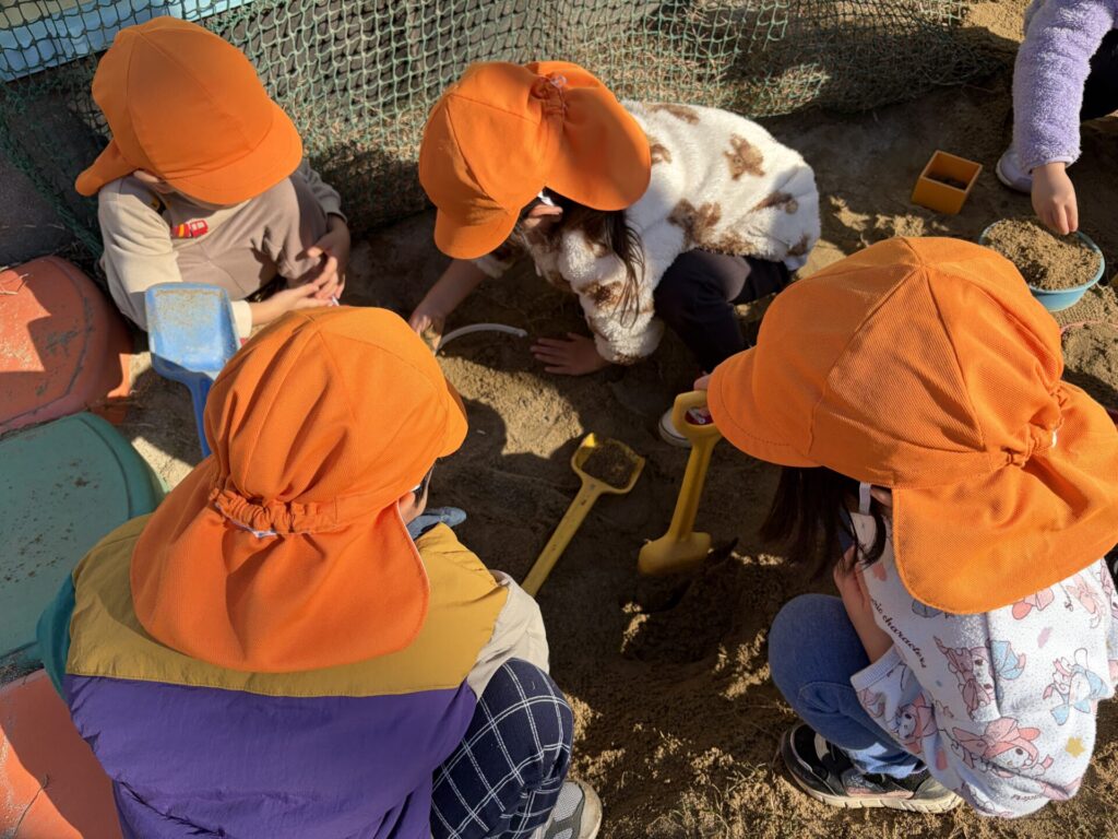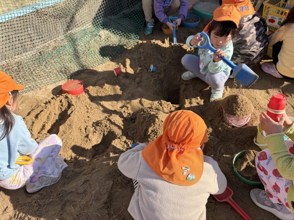 大きなお山を作ってトンネルを掘ったり、お料理をして楽しみましたよ✨
