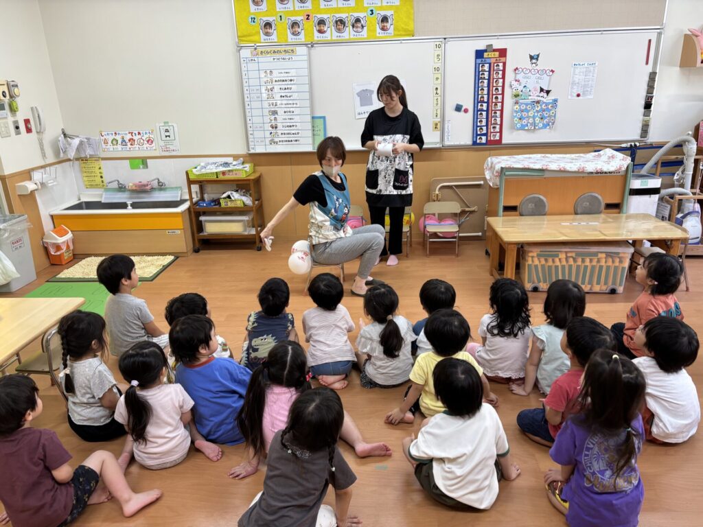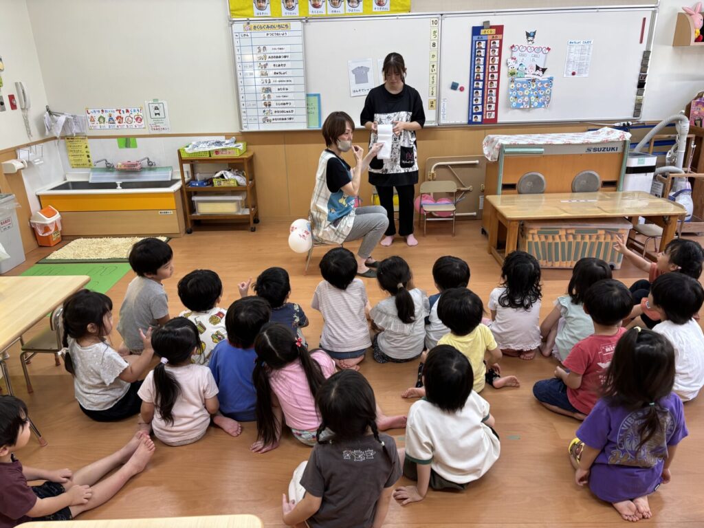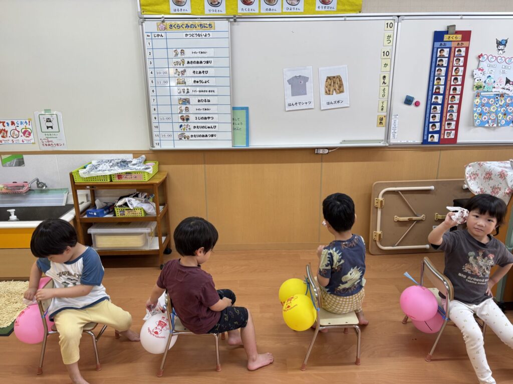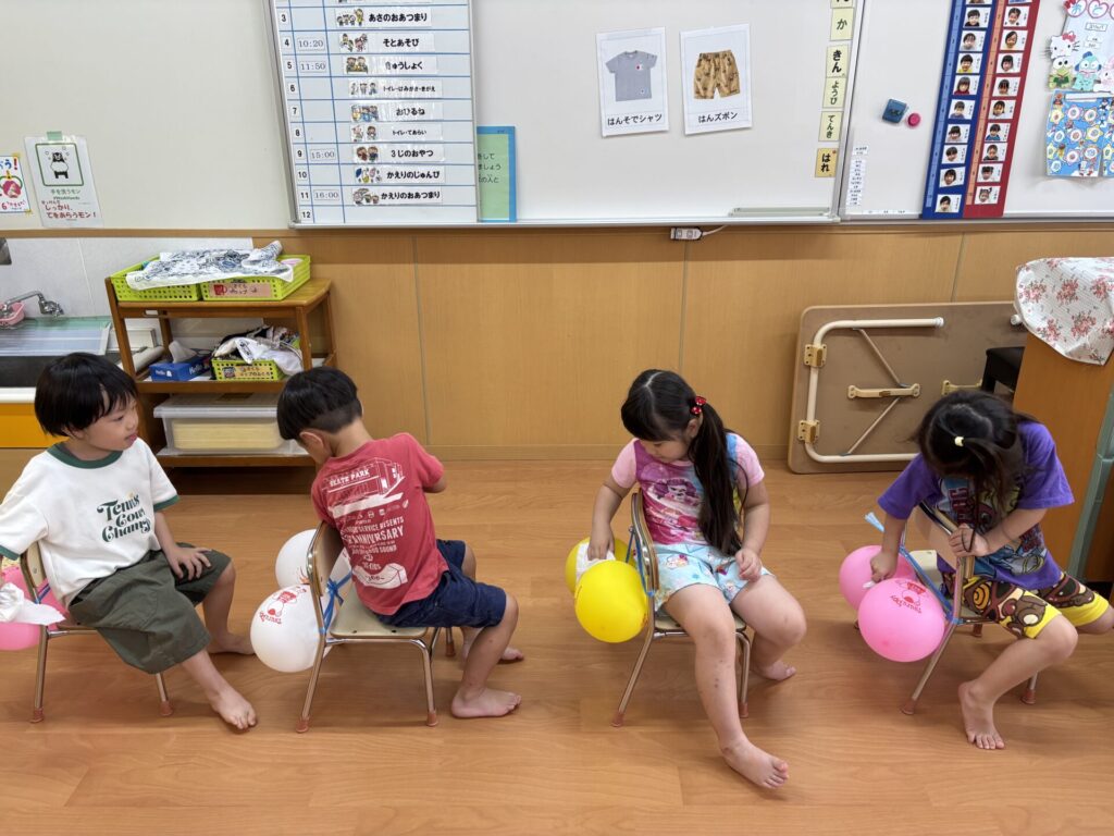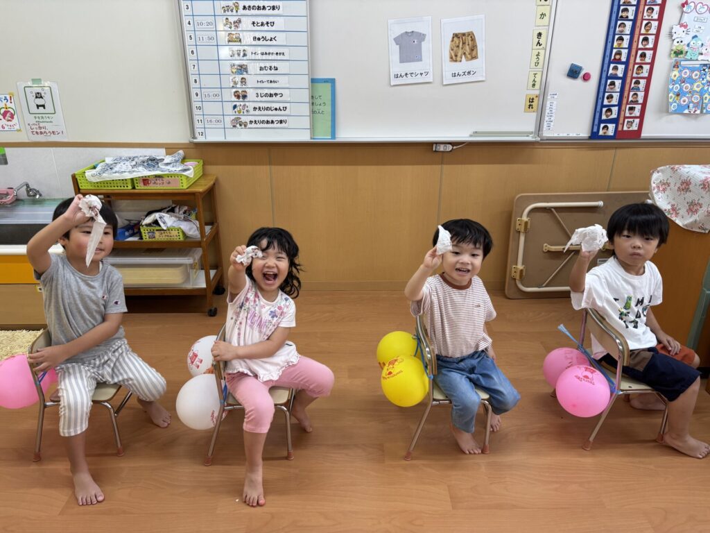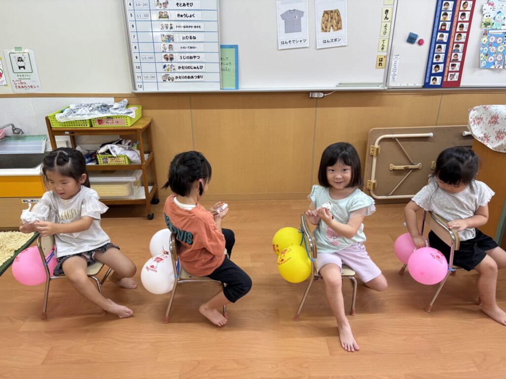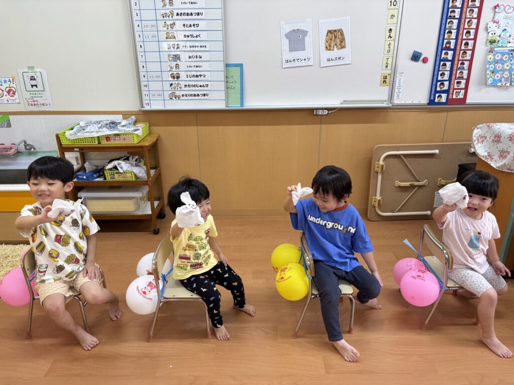 風船をお尻に見立てて、実際に拭く練習をしましたよ💖