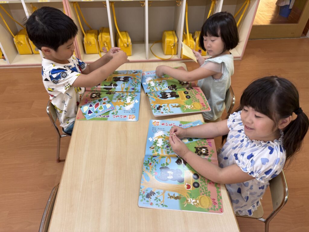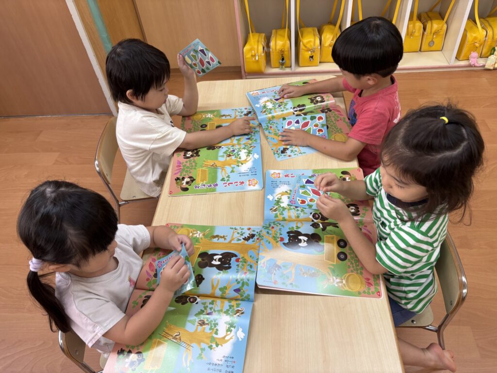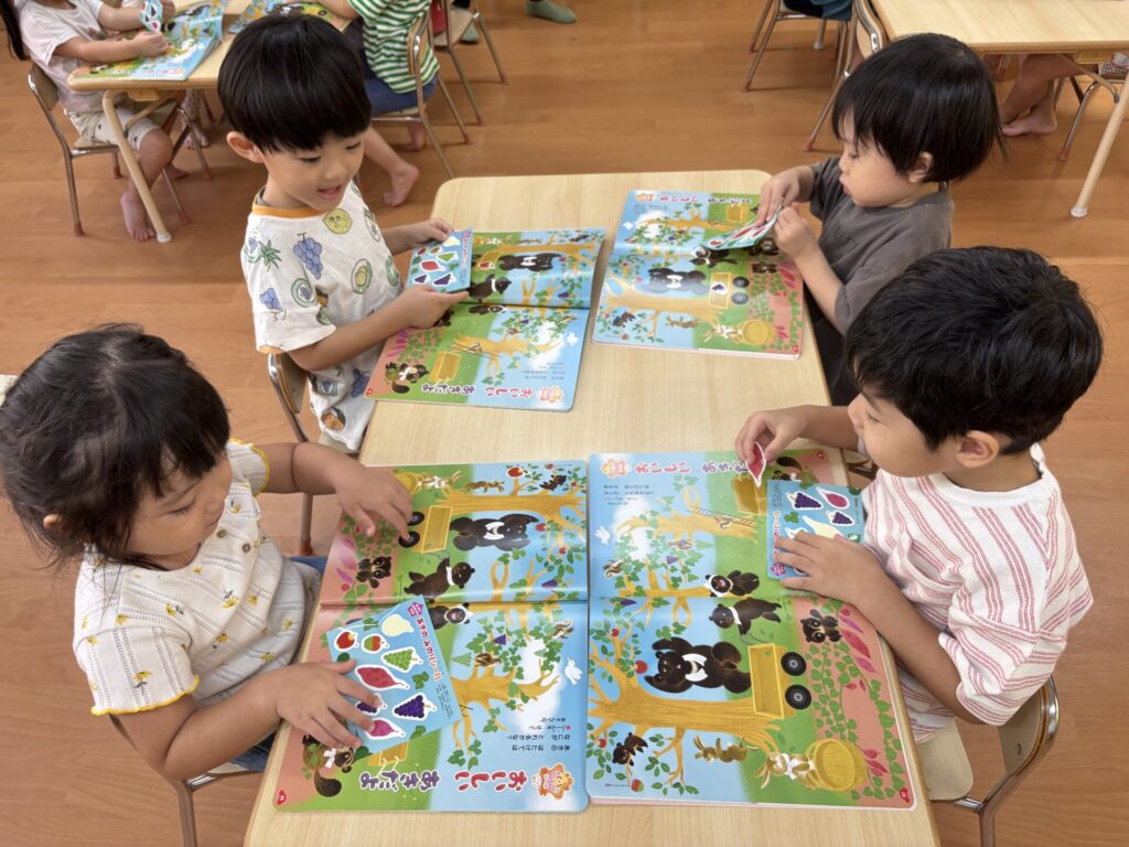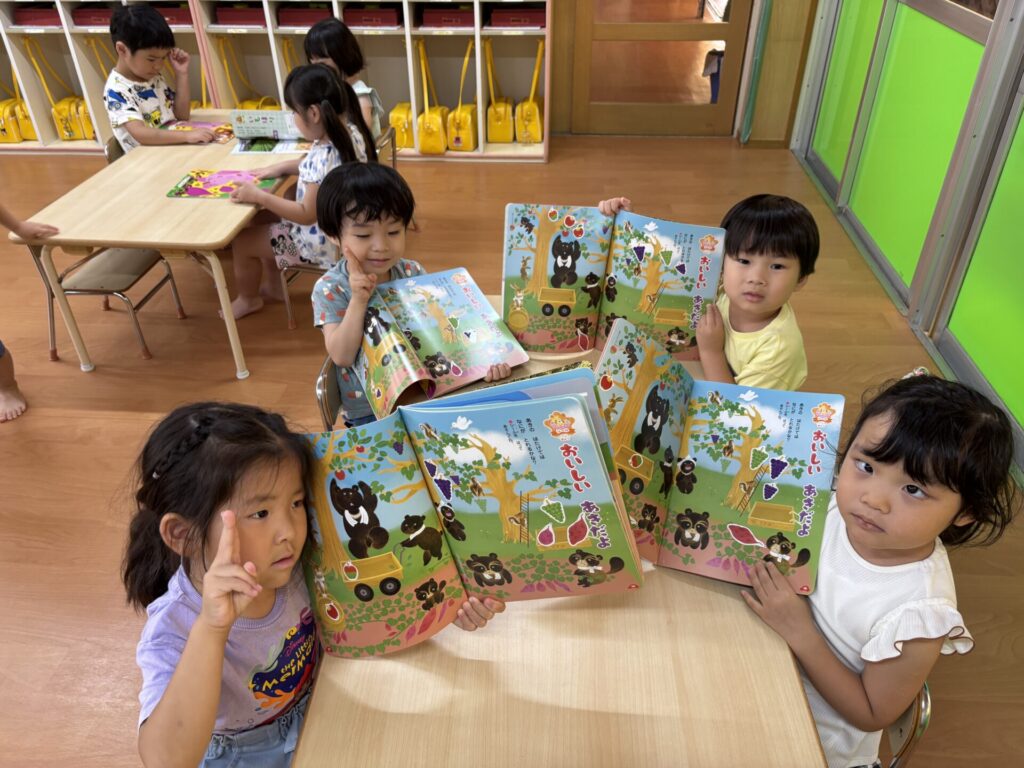 202510.21 さくら組(R7/10/17) ●10/17(金)10月の月間絵本を見ました! 秋ならではのスイーツを見て「おいしそ~💖」と皆で言ってましたよ✨ こするとスイートポテトの匂いがして大興奮でした😆