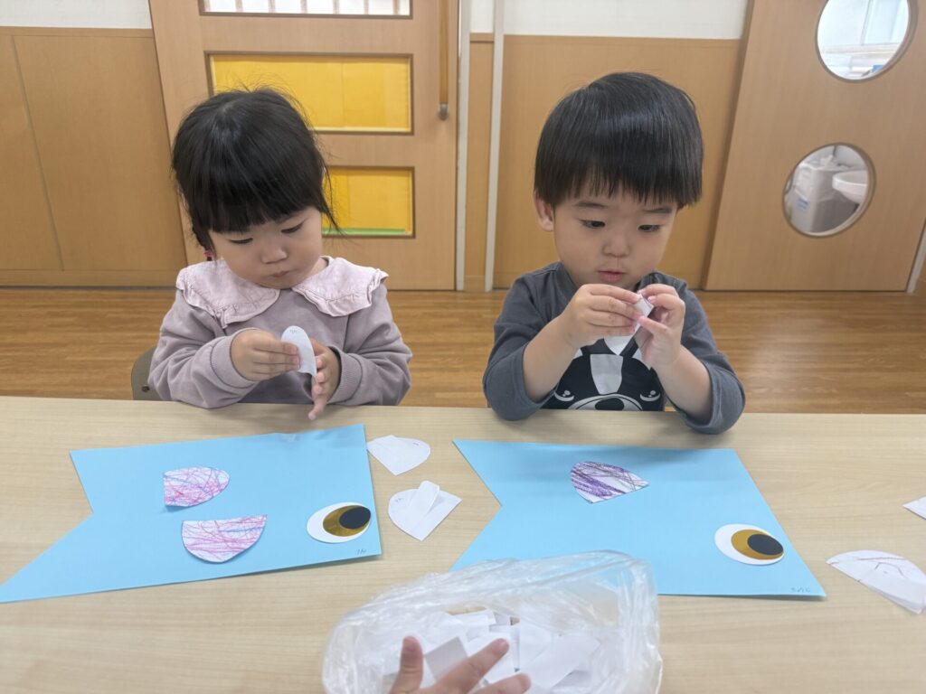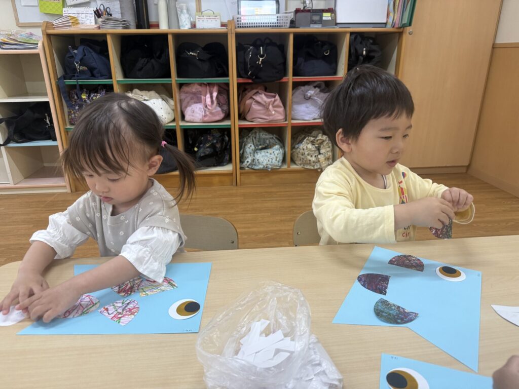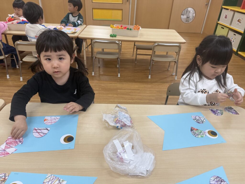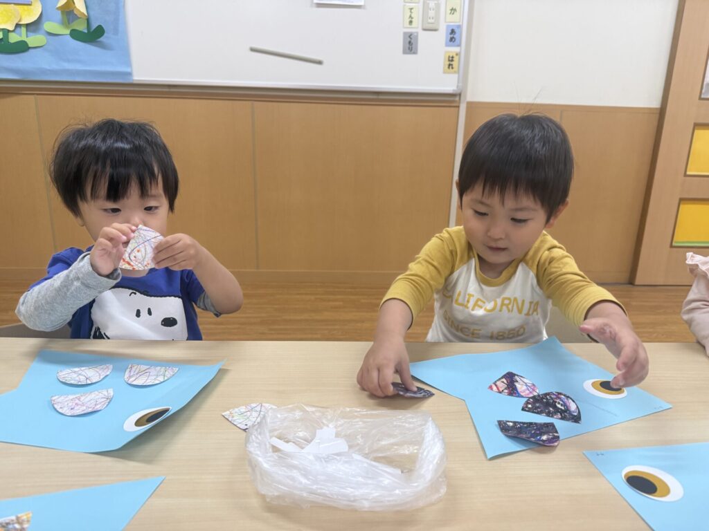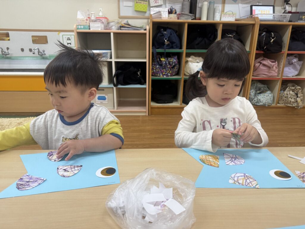 今日は、こいのぼり制作第二弾のウロコ貼りをしました!