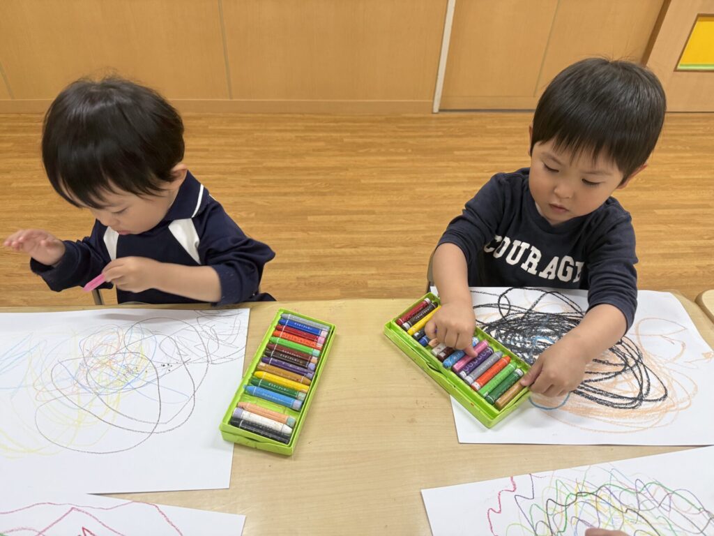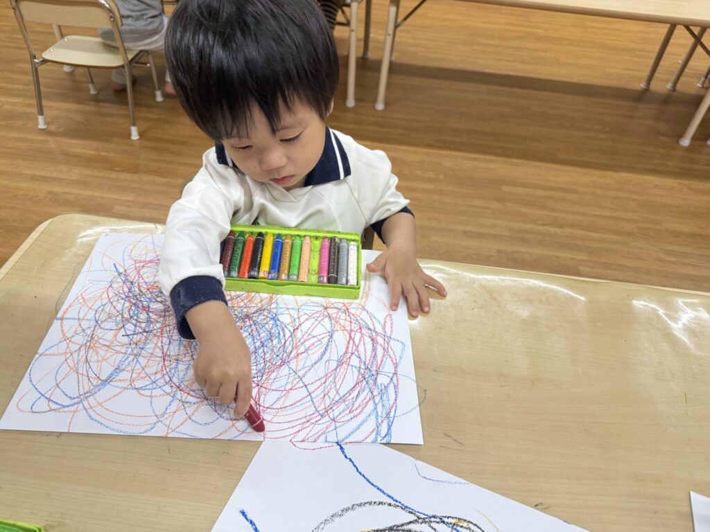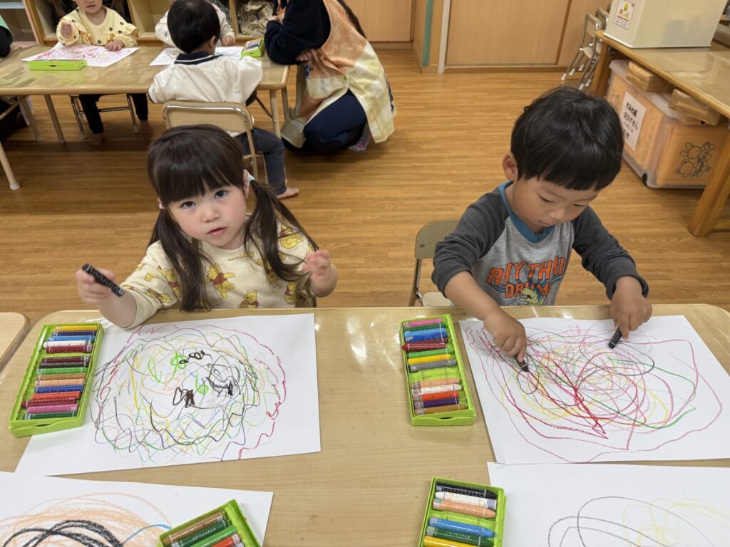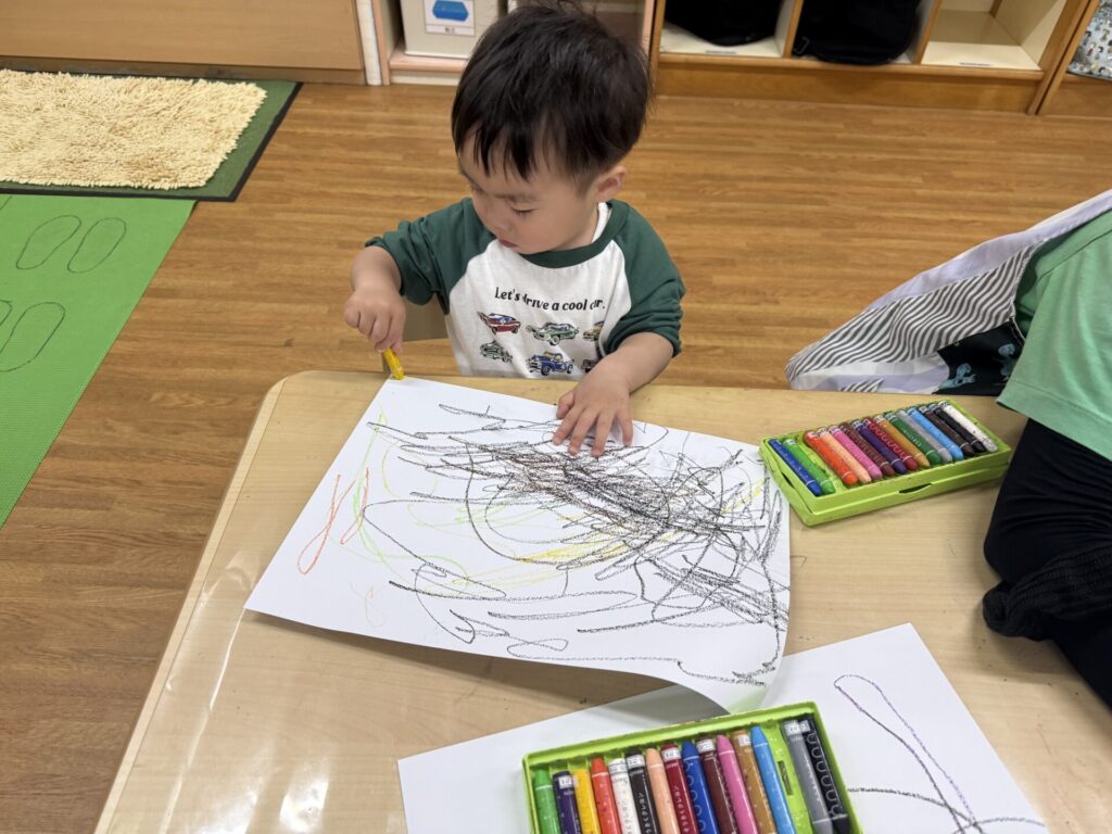 今日は、こいのぼり制作第一弾のクレヨン遊びをしました!
