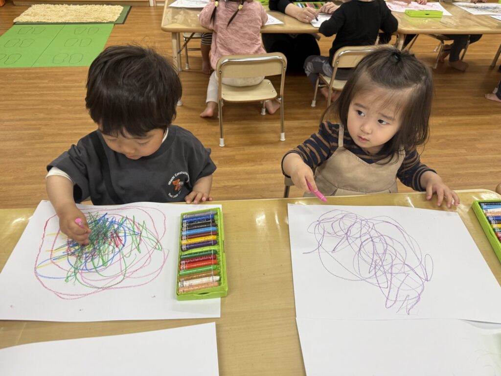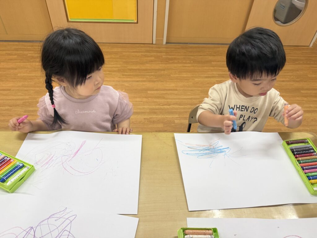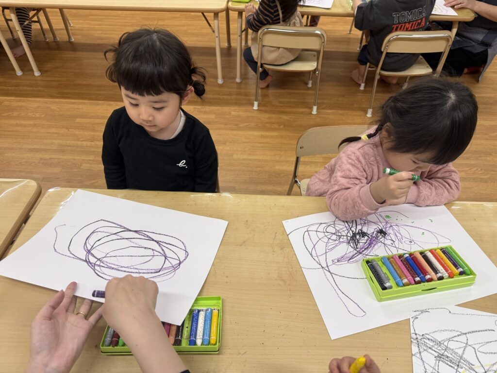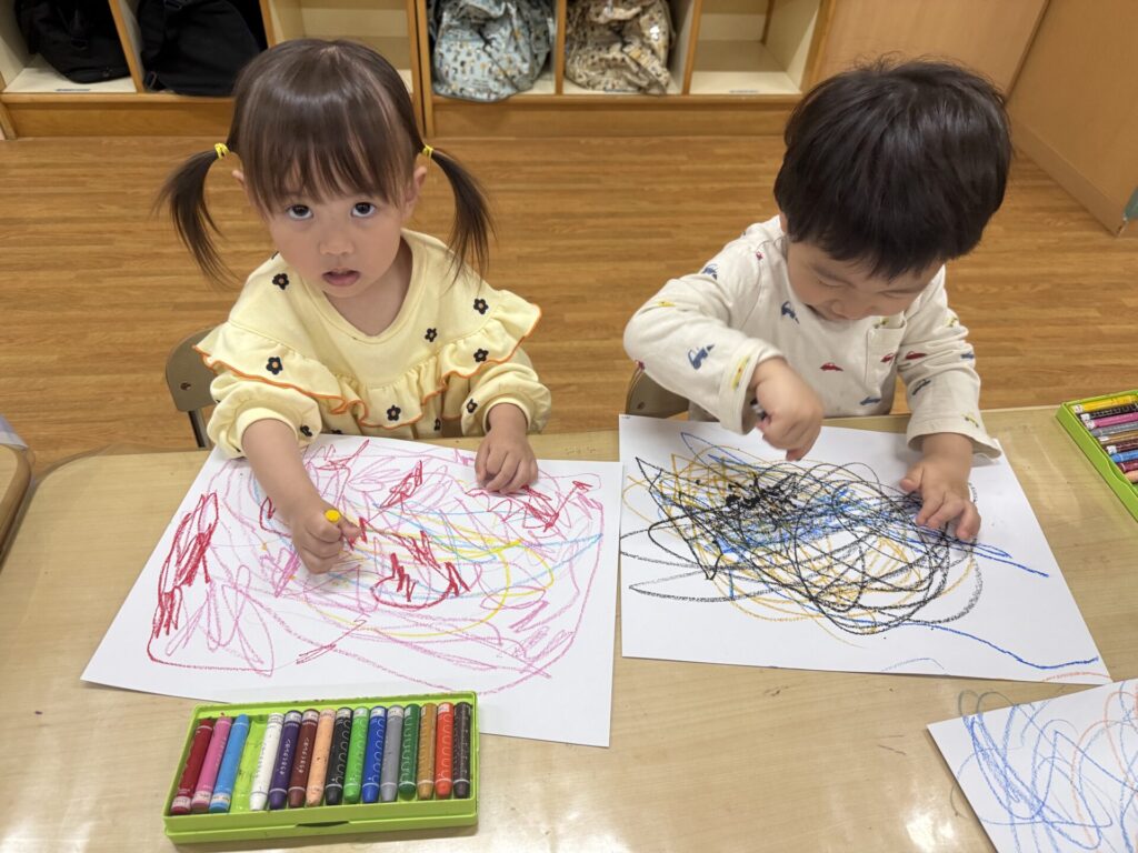 今日は、こいのぼり制作第一弾のクレヨン遊びをしました!