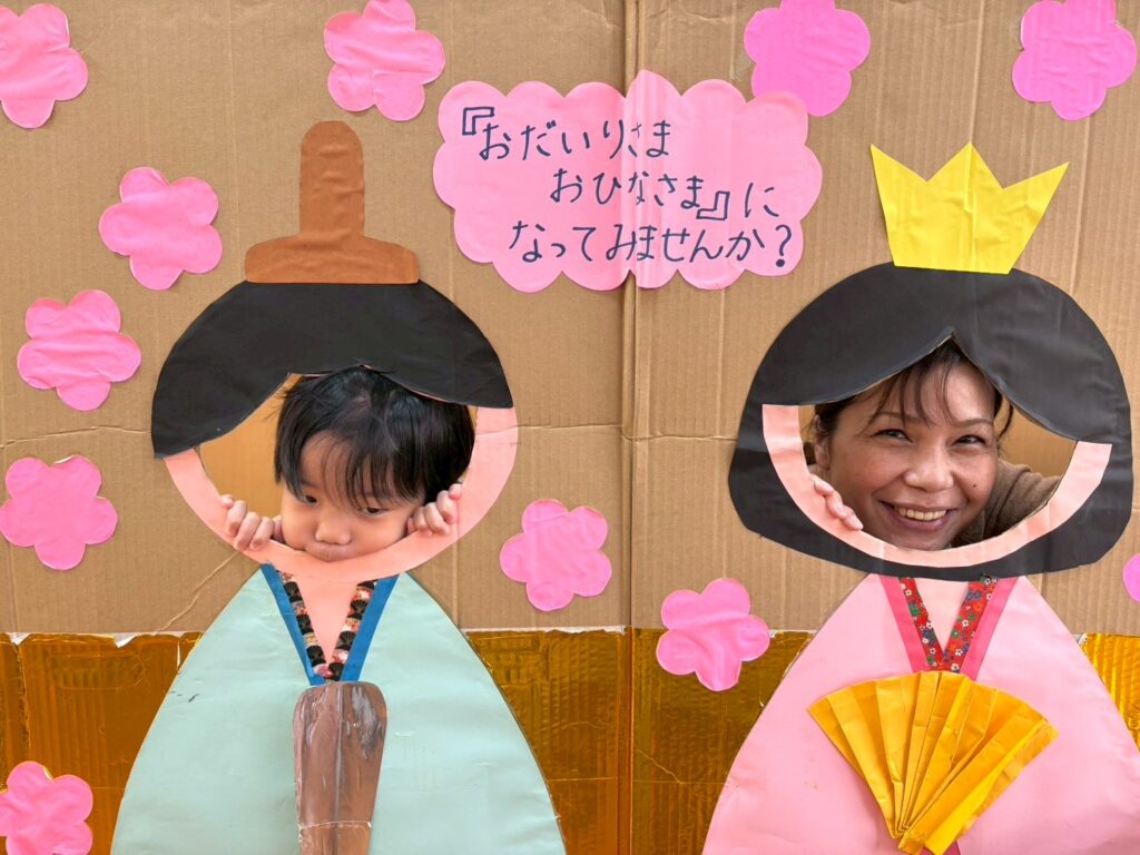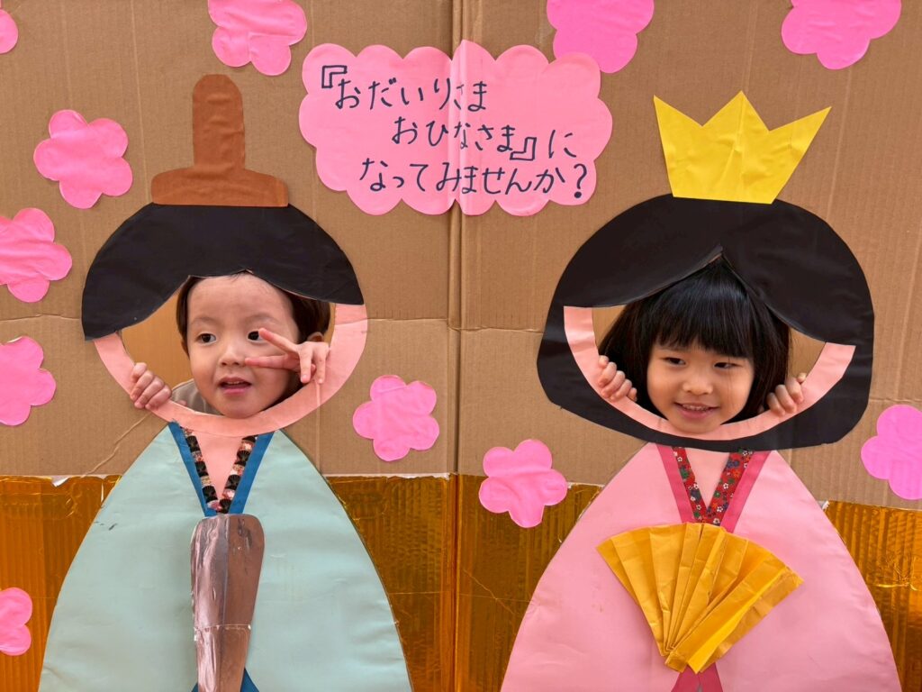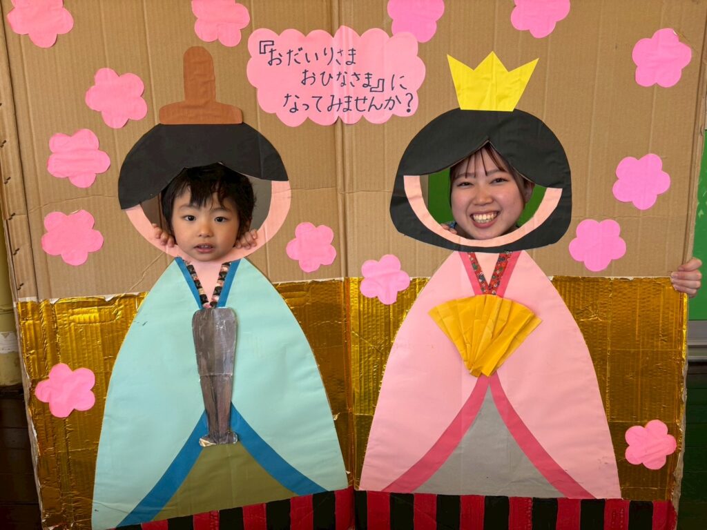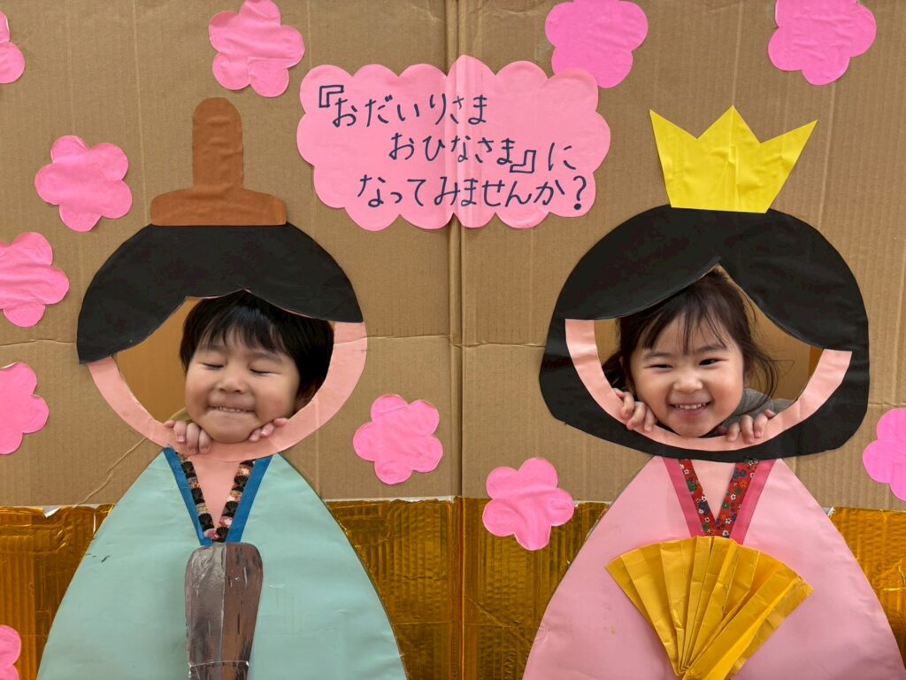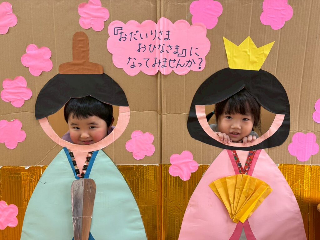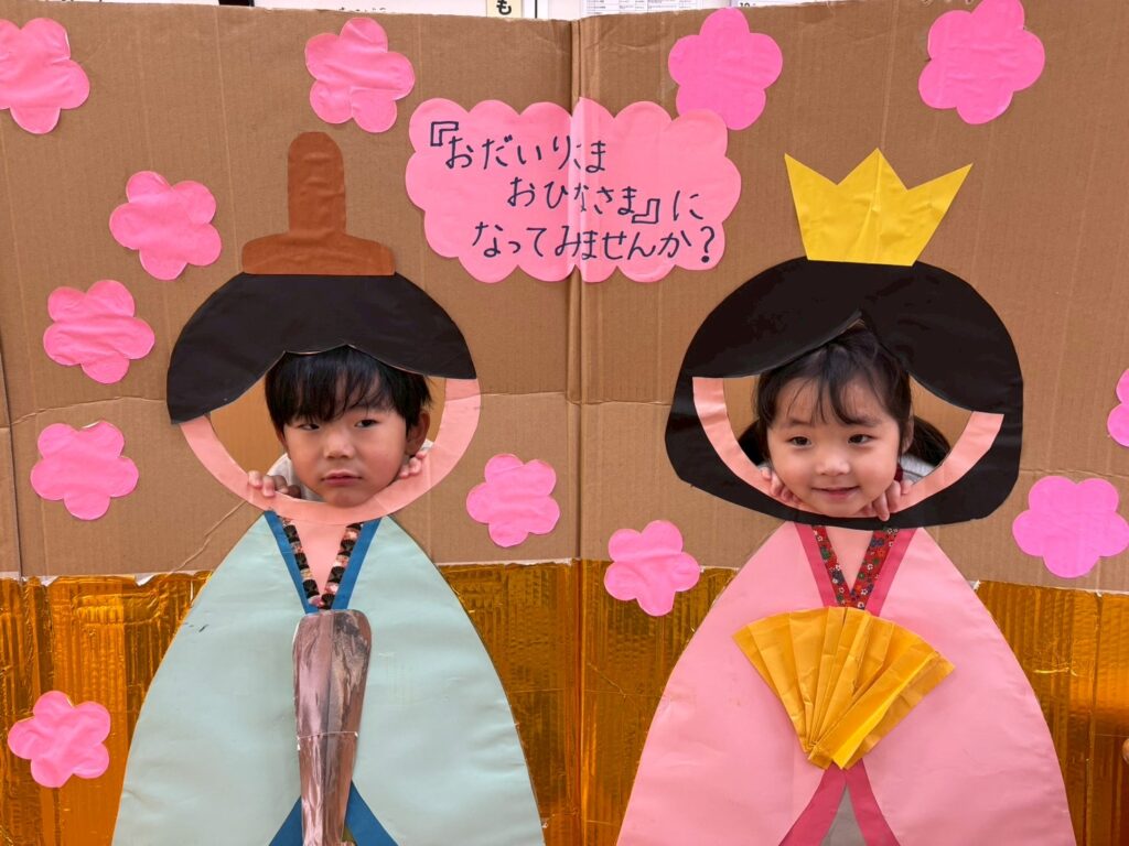 202602.21 すみれ組(ひな人形遊び&戸外遊び) ●2/20(金)戸外遊び お外でたくさん遊びました!気の合うお友だちと遊ぶ姿も増えてきました💖 それぞれに好きな遊びを楽しんでます✨ ●ひな人形パネルに入りみんなでお内裏様・おひな様になって、写真を撮りましたよ!