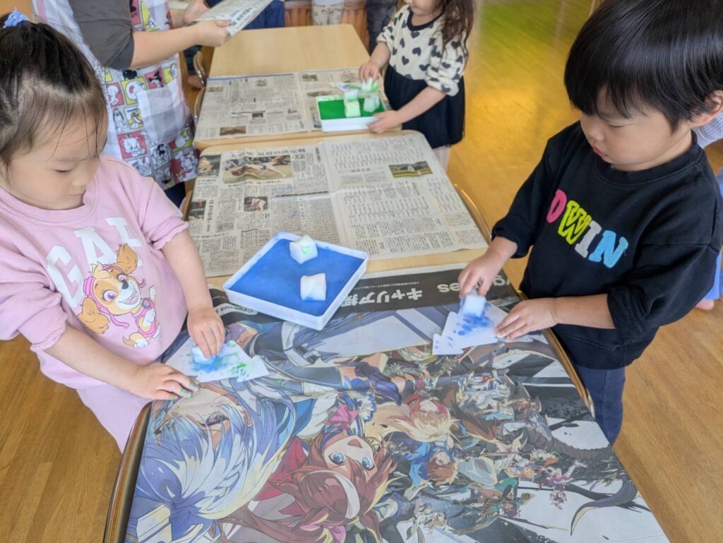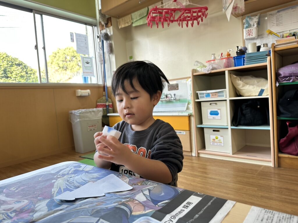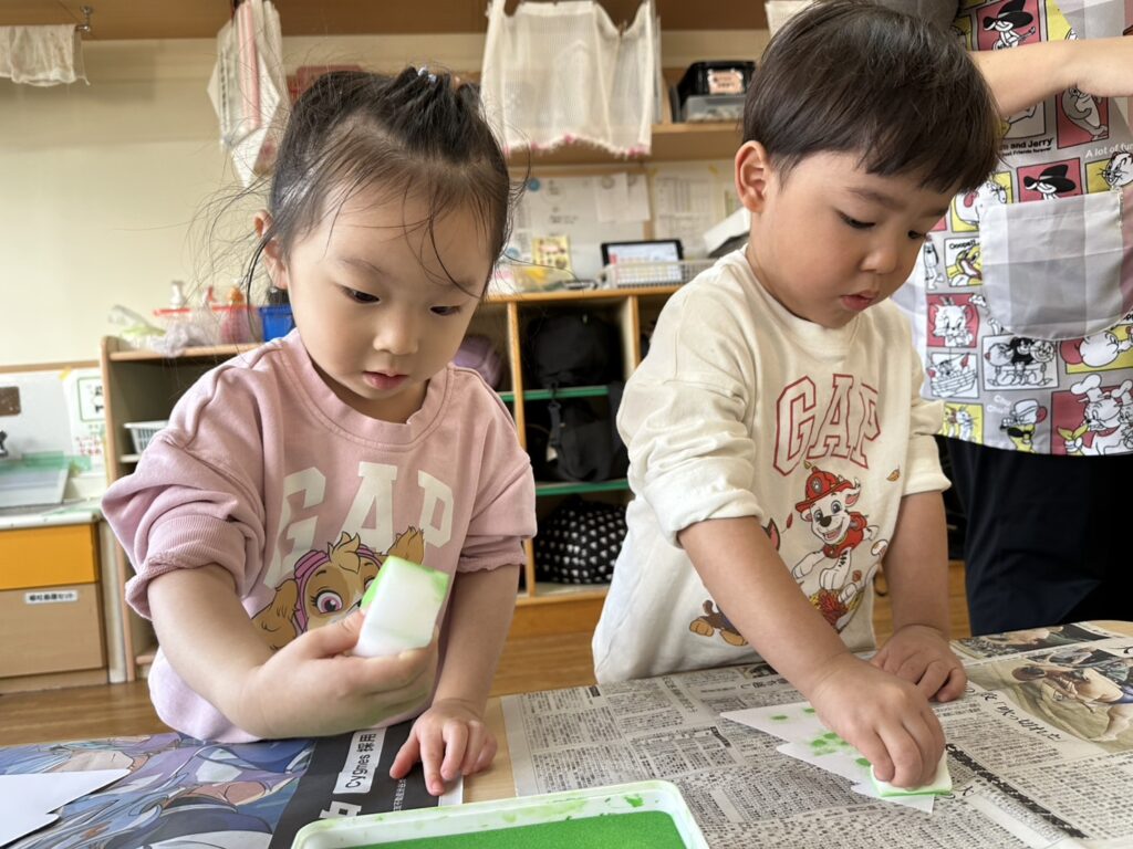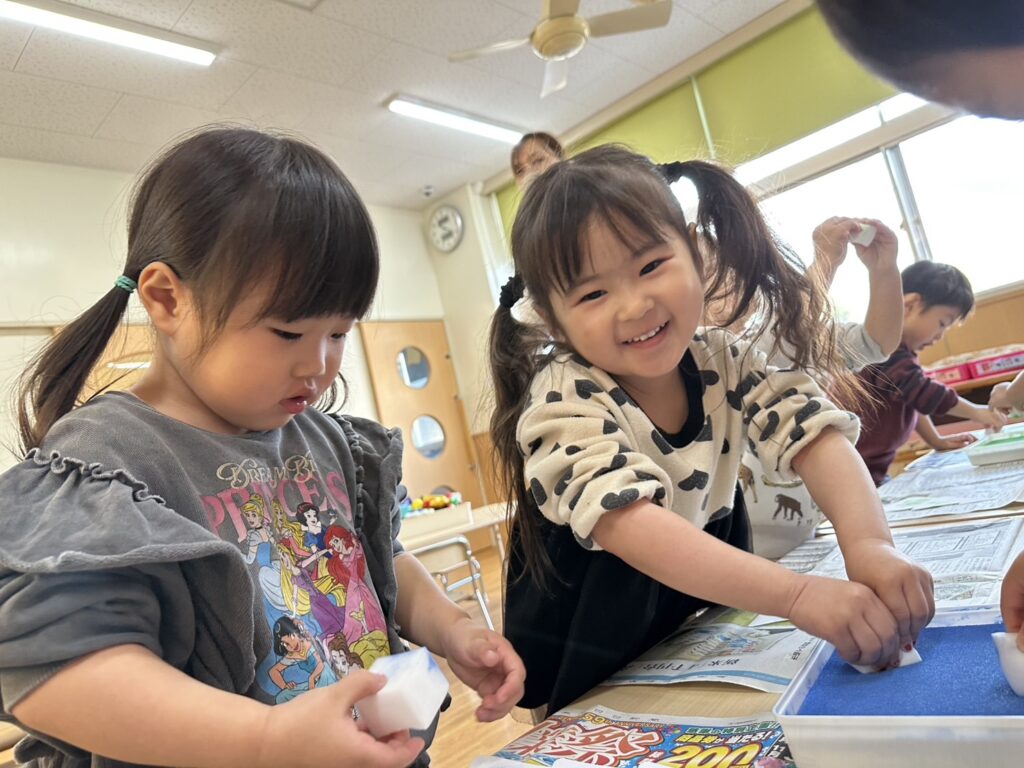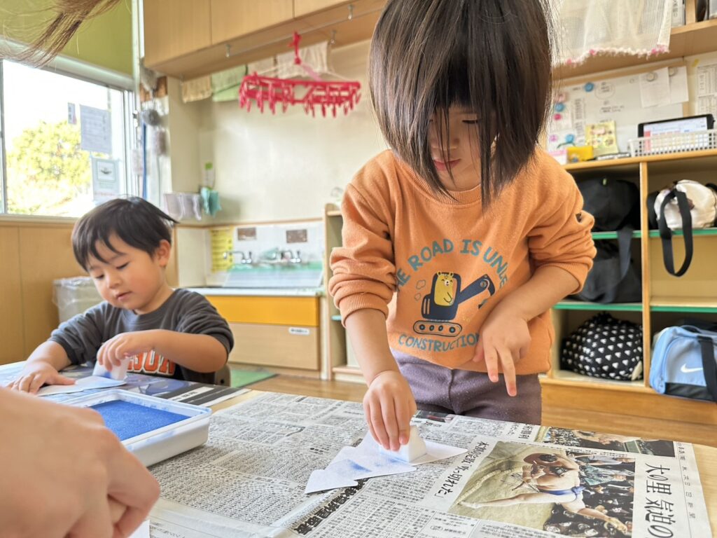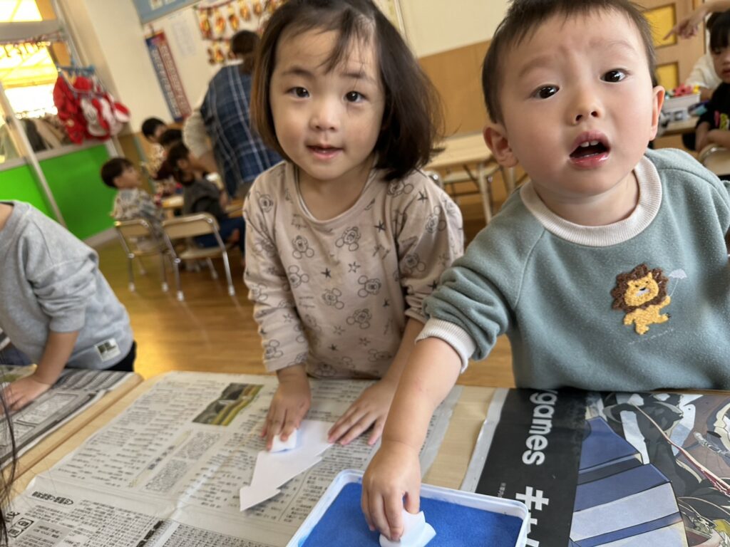 202511.28 すみれ組(クリスマス制作) みんなでクリスマスツリーを作りました!素敵なツリーができましたよ✨ 園でしばらく飾ったら、持ち帰りにしますのでお楽しみに😆 そして、みさき先生が保育園に遊びに来てくれました🎶 久しぶりに会えて嬉しそうな子ども達です💖