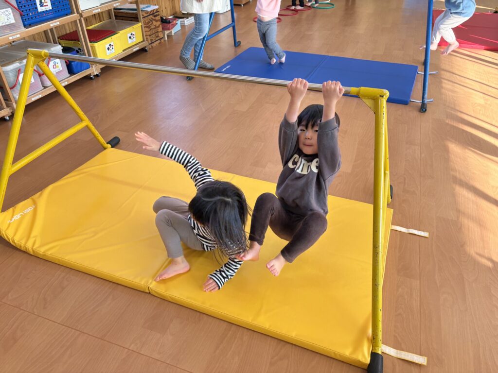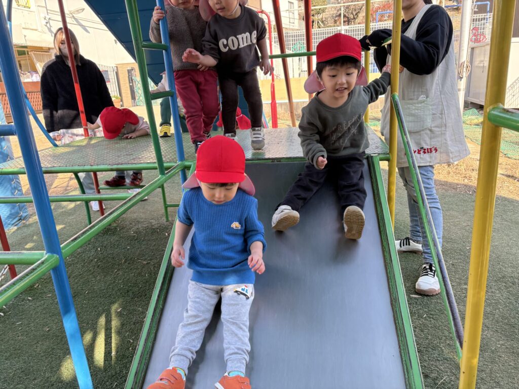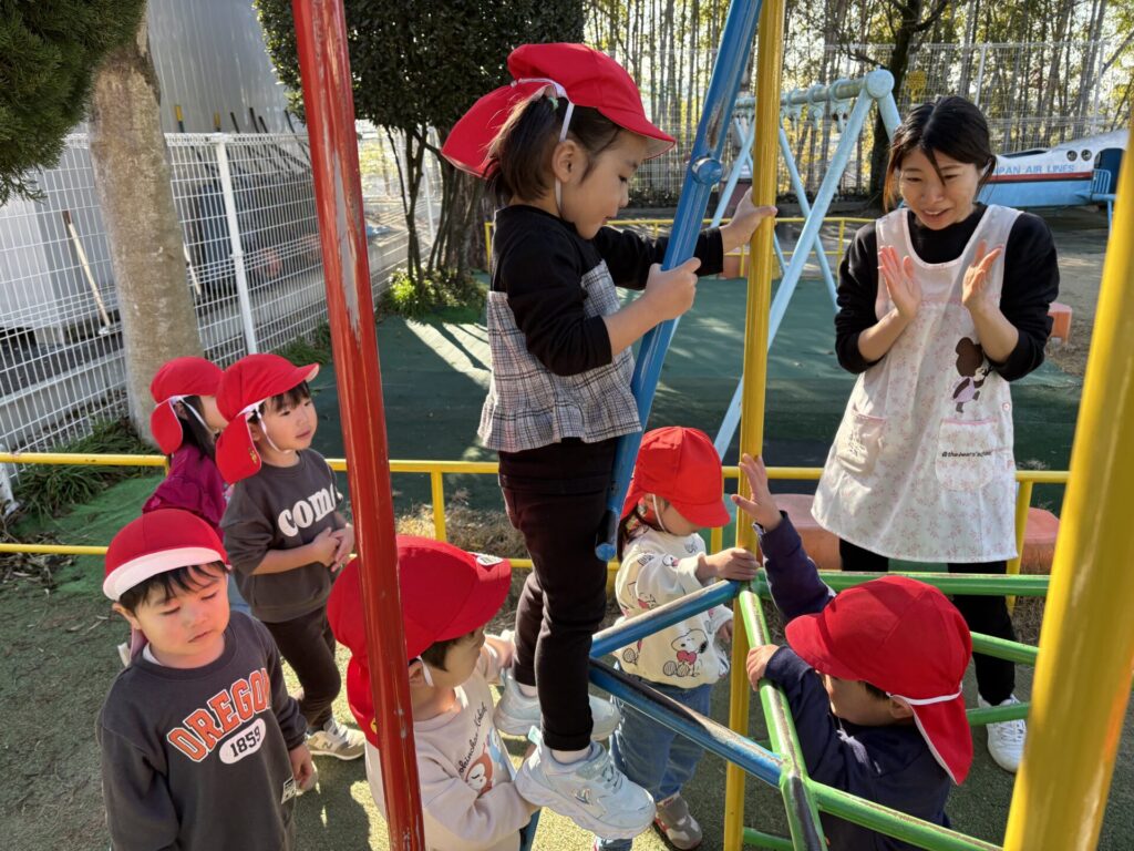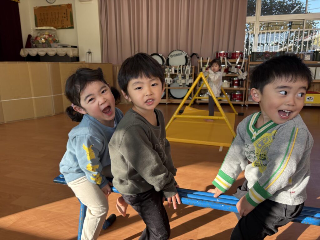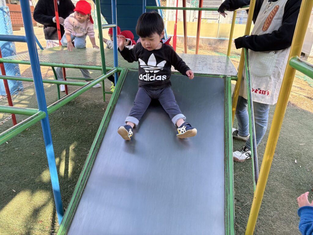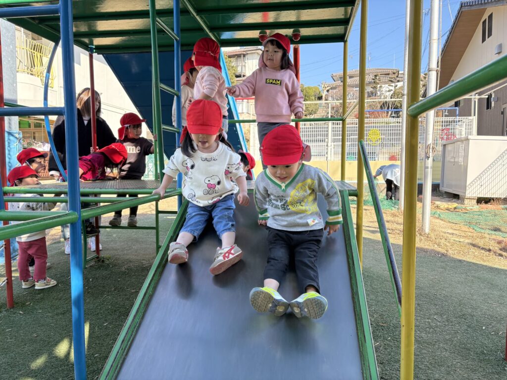 202601.07 すみれ組(サーキット遊び) 朝からホールでサーキット遊びをして、活動では戸外遊びを行い、体をいっぱい動かして遊びました! 戸外遊びでは、初めて「だるまさんが転んだ」をして遊びましたよ✨みんなで笑い合いながら楽しみました😁 ●戸外遊び ●初めてだるまさんが転んだをしました!みんな止まるのが上手です