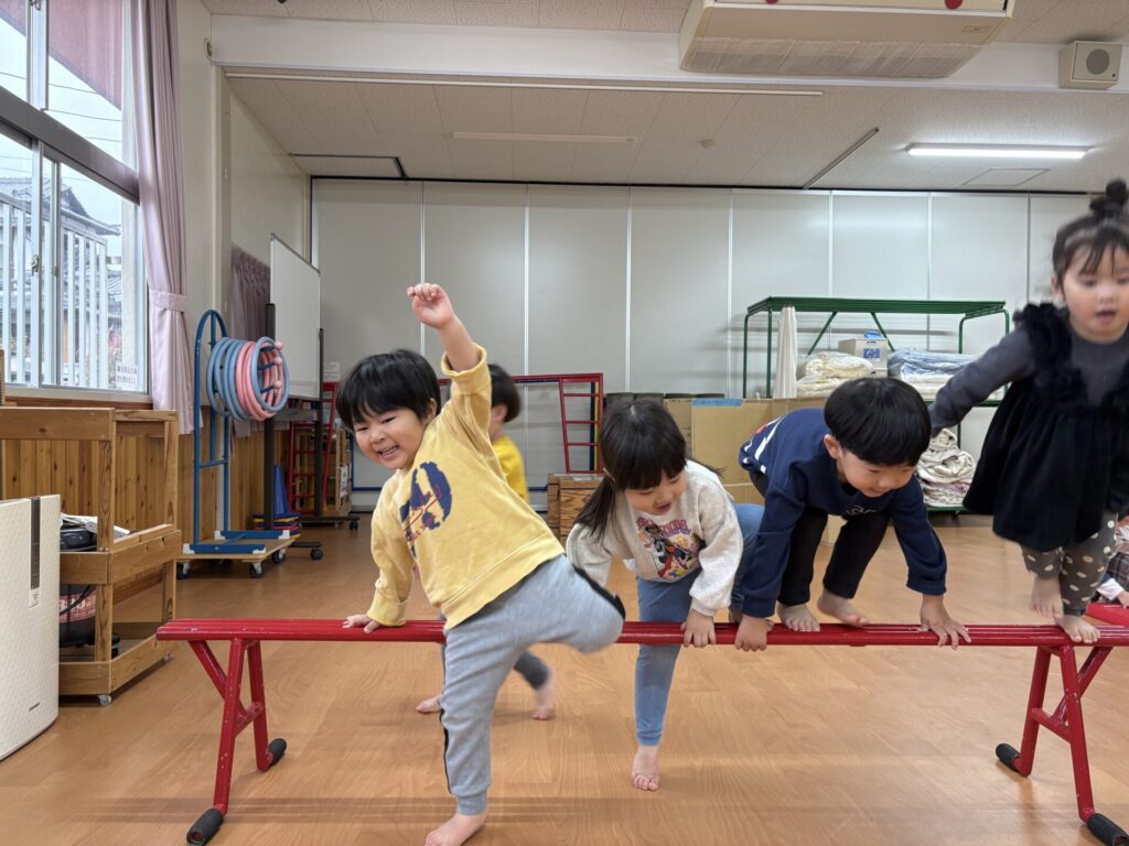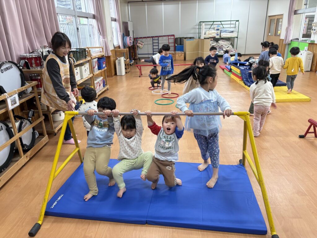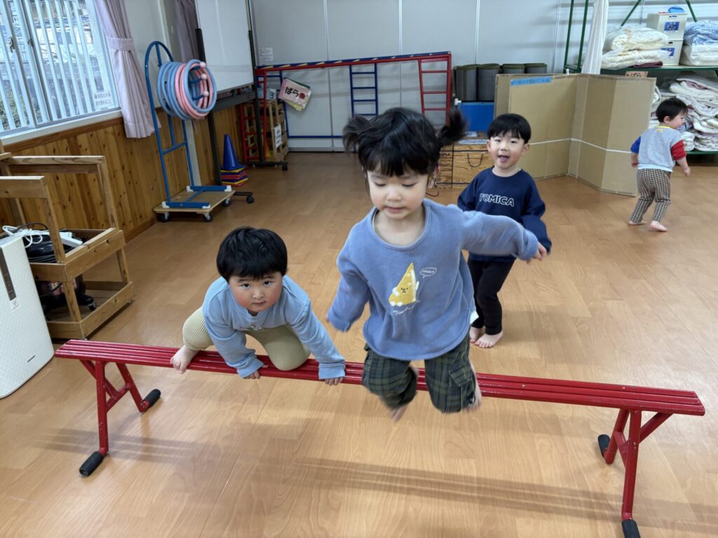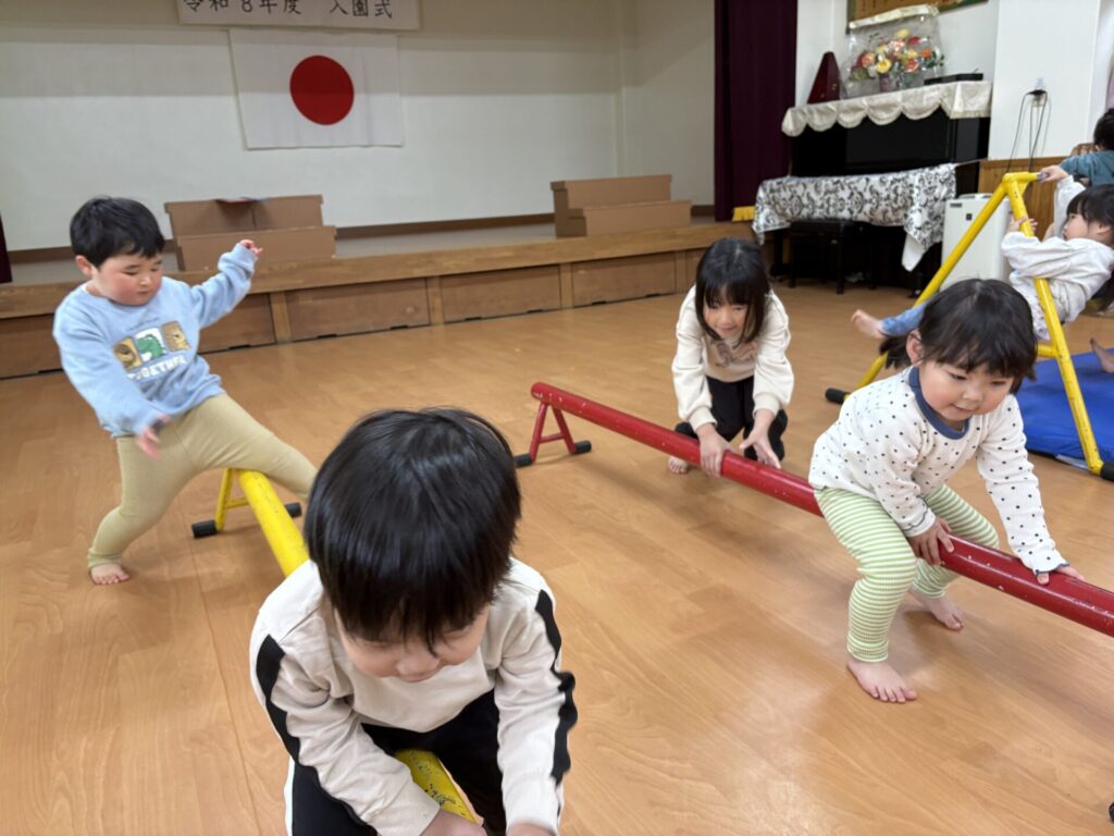 202603.19 すみれ組(サーキット&外遊び) ●3/18(水)ホールで、サーキット遊びをしました! 久しぶりのサーキット遊びに大興奮の子ども達でした✨ ●3/19(木)外遊びをしました!仲の良いお友だちと一緒に楽しく遊ぶ姿が見られました😆