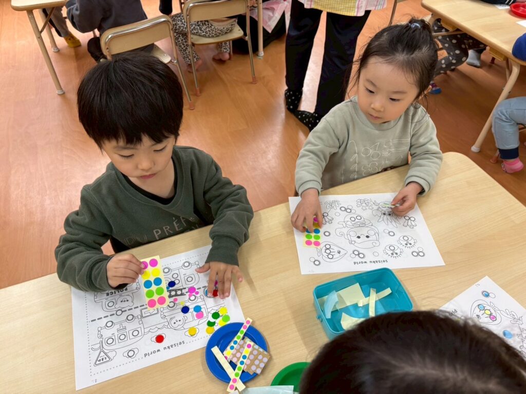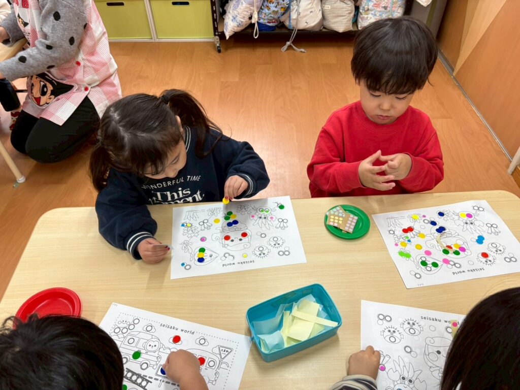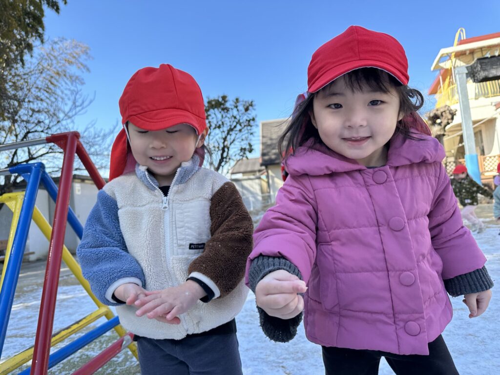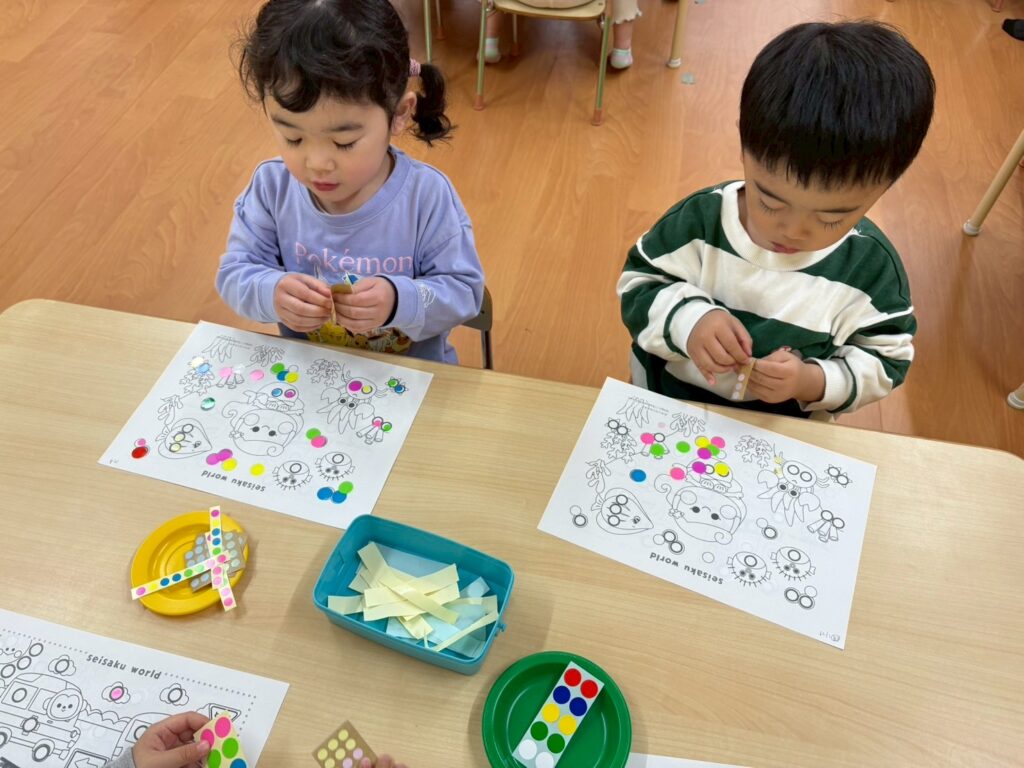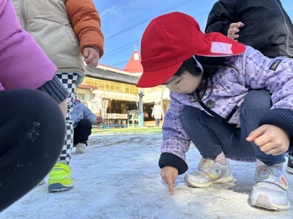 202602.09 すみれ組(シール貼り・雪遊び) ●2/6(金)シール貼りをしました! 自分達で考えながら、工夫してシールを貼っていました! 小さなシールを貼ることもでき、嬉しそうでした✨ ●2/9(月)今日は、雪遊びをしました! 園庭に残っている雪を見つけて、「雪だぁ~」と大喜び✨ みんなで雪合戦をしたり、丸めて、遊びました🎶冬ならではの経験ですね💖
