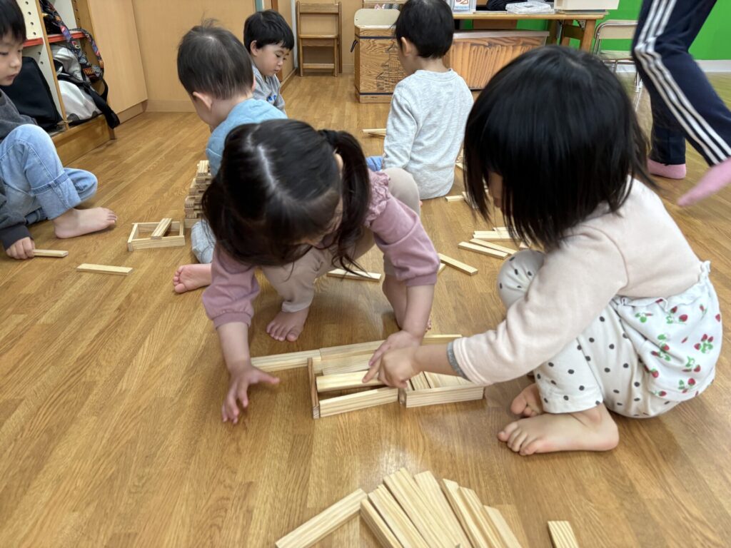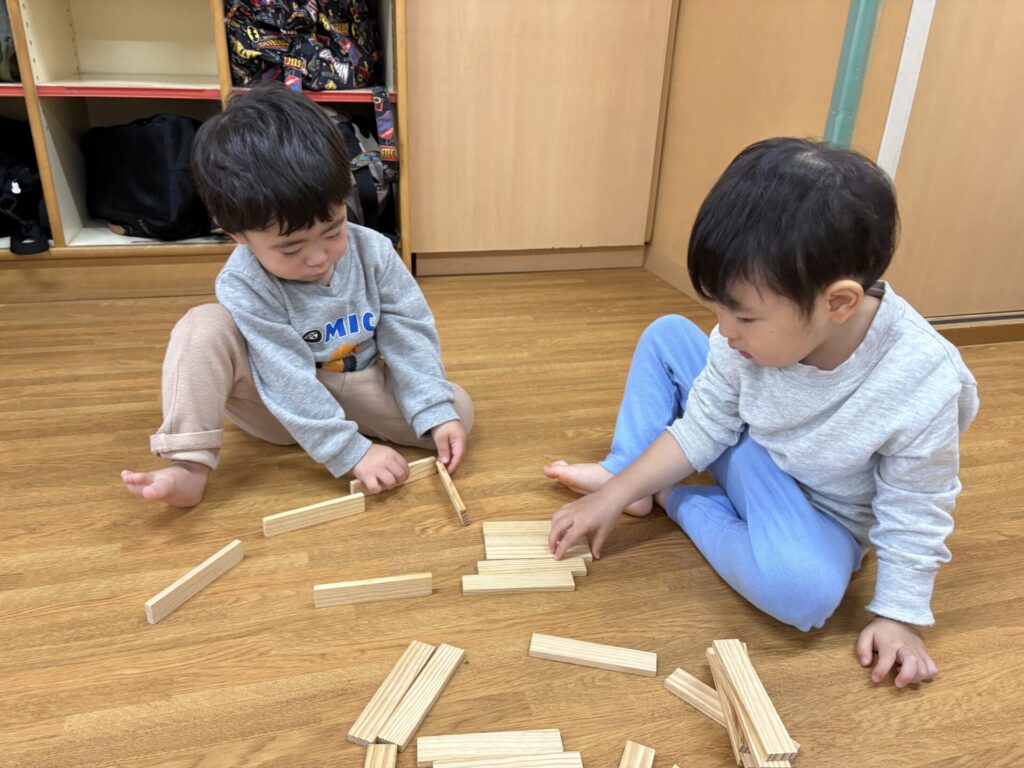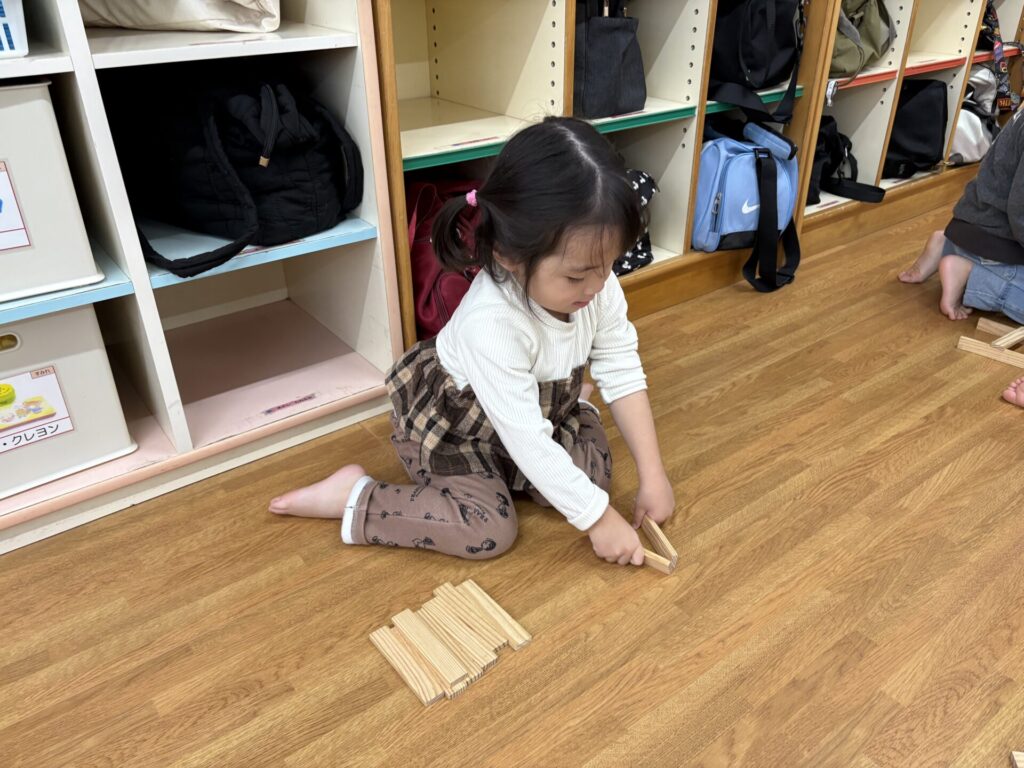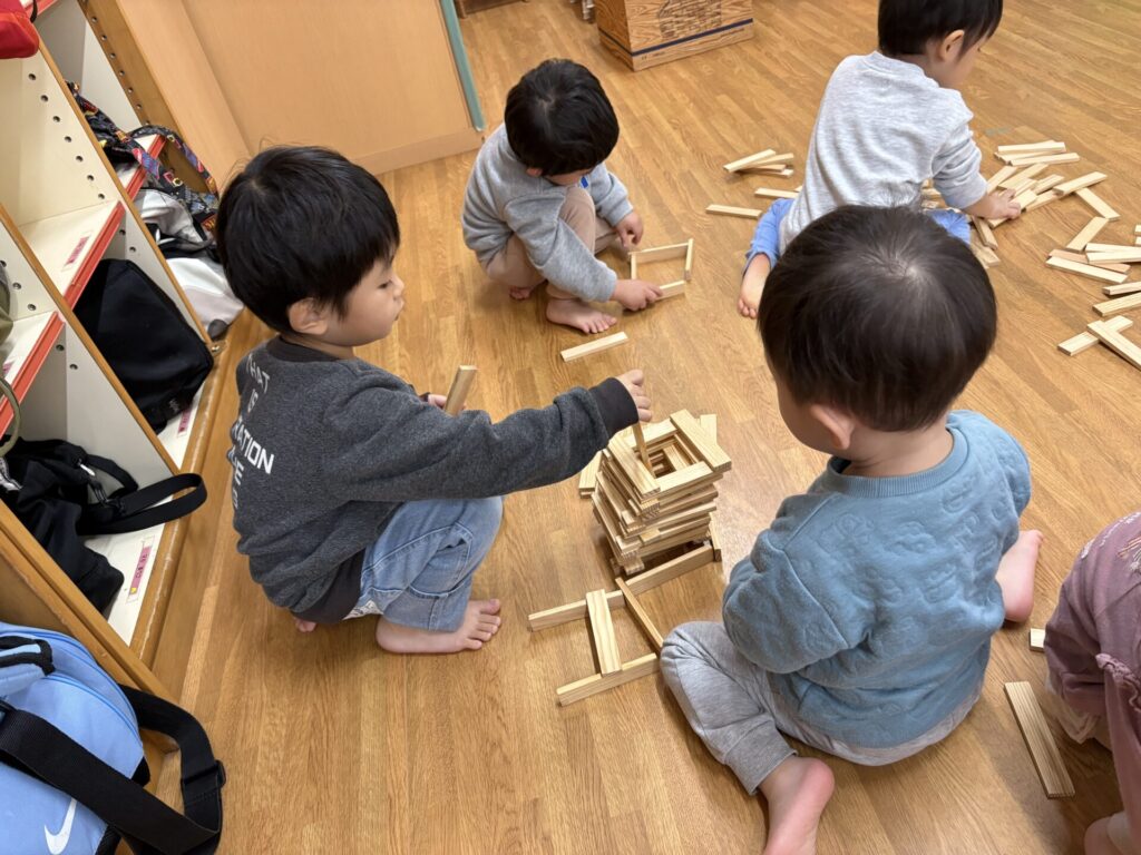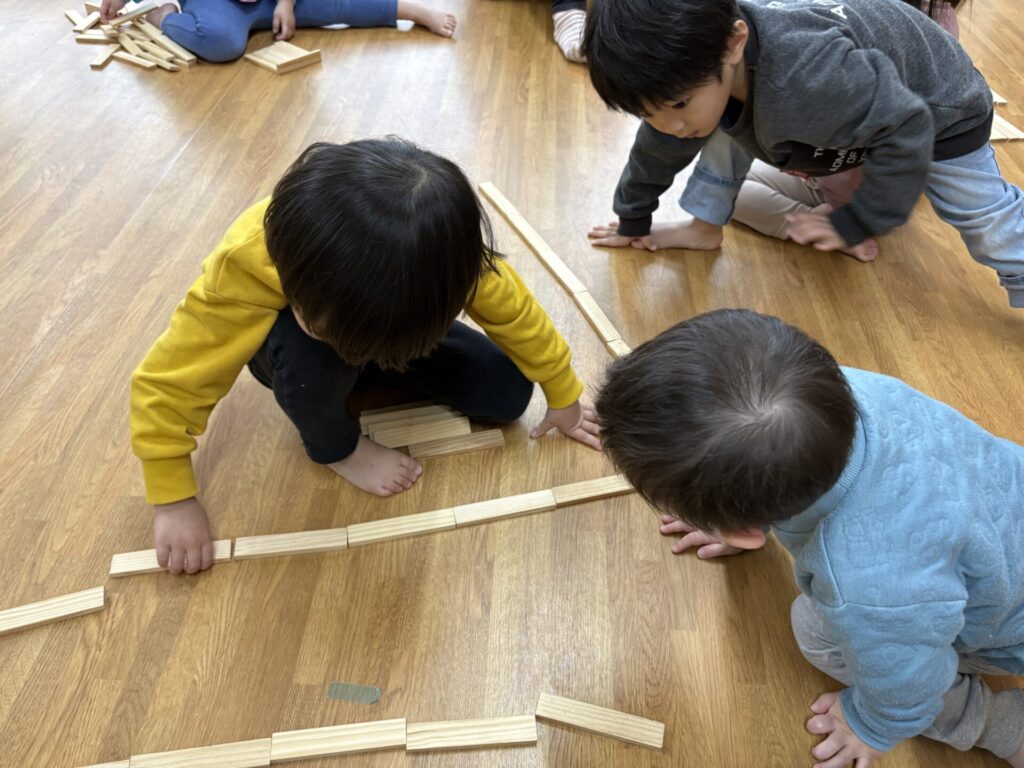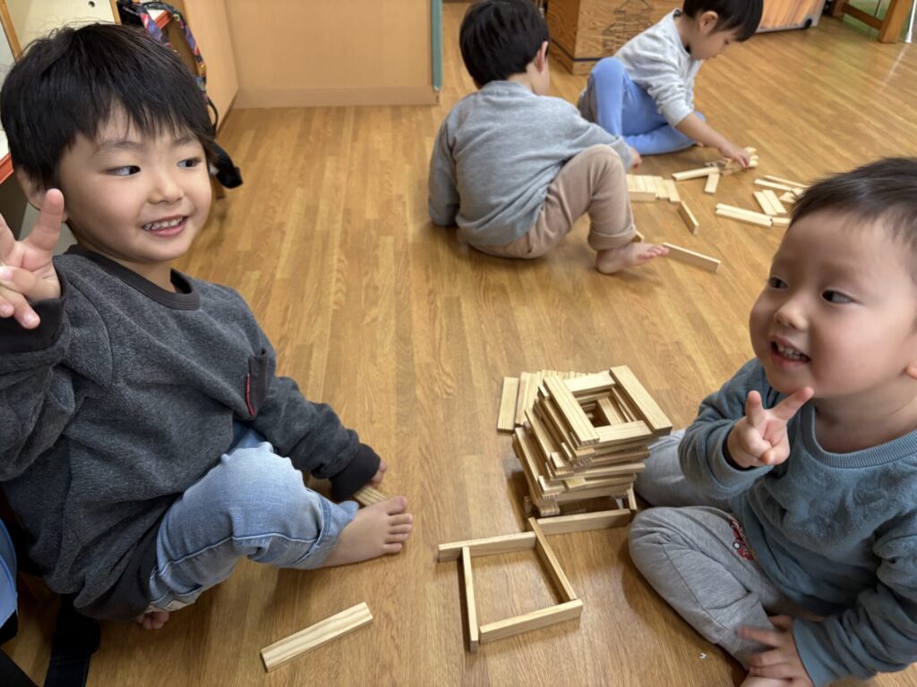 202512.25 すみれ組(室内遊び) カプラとマグフォーマーという以上児クラスの玩具を持ってきて遊びました! まだ少し難しそうでしたが、くっつけたり、つなげたり、重ねたり、 夢中になって遊ぶ子ども達でした✨