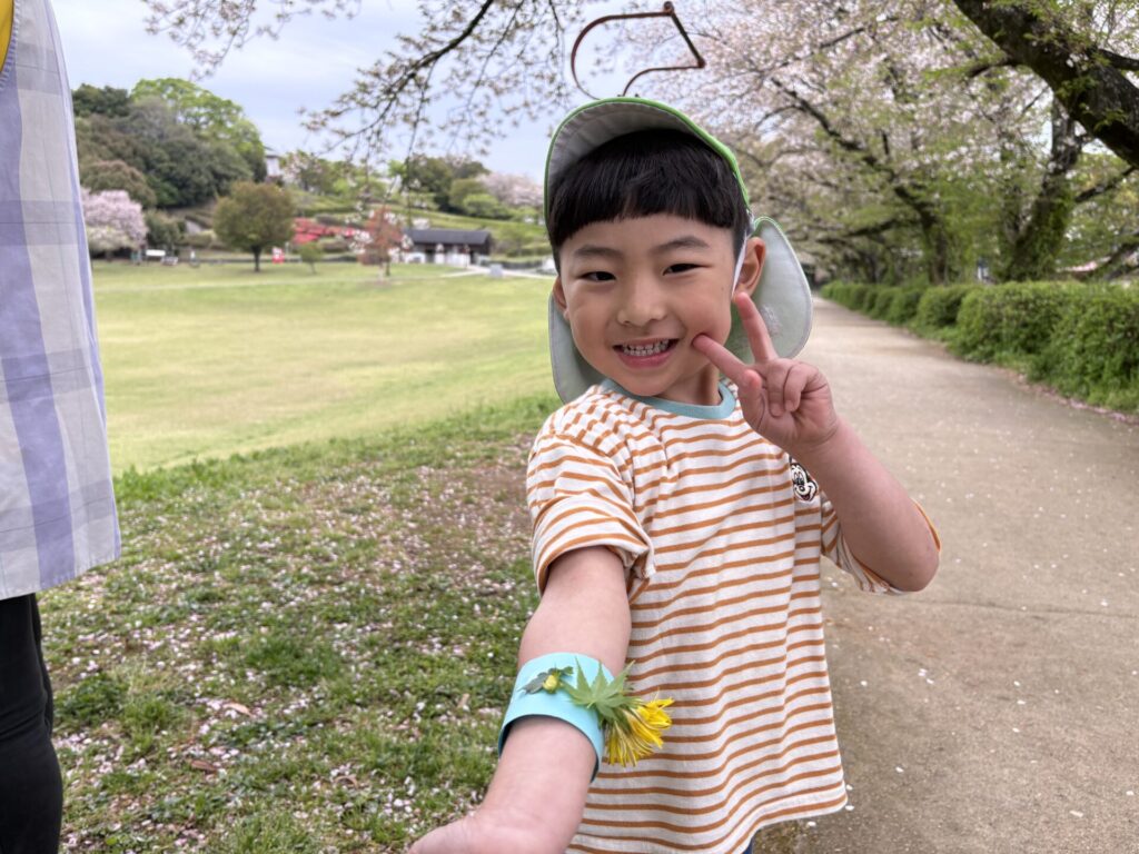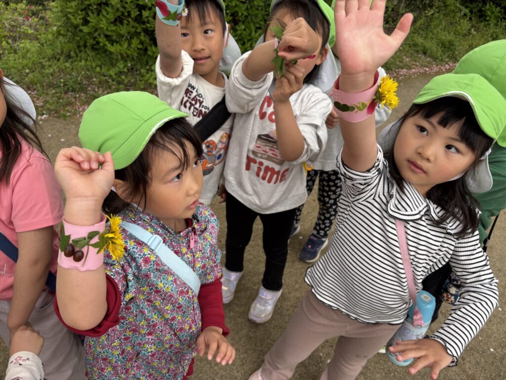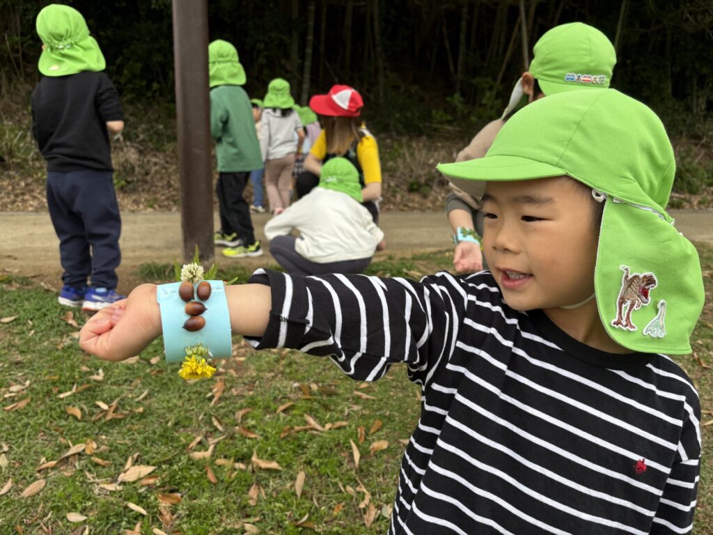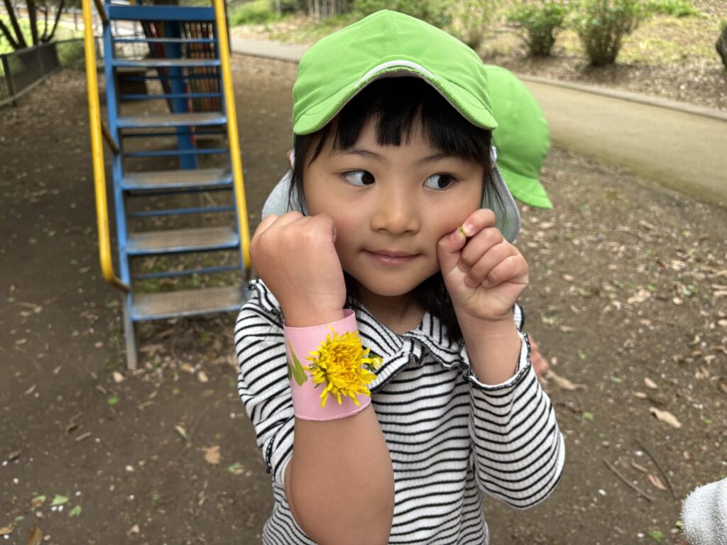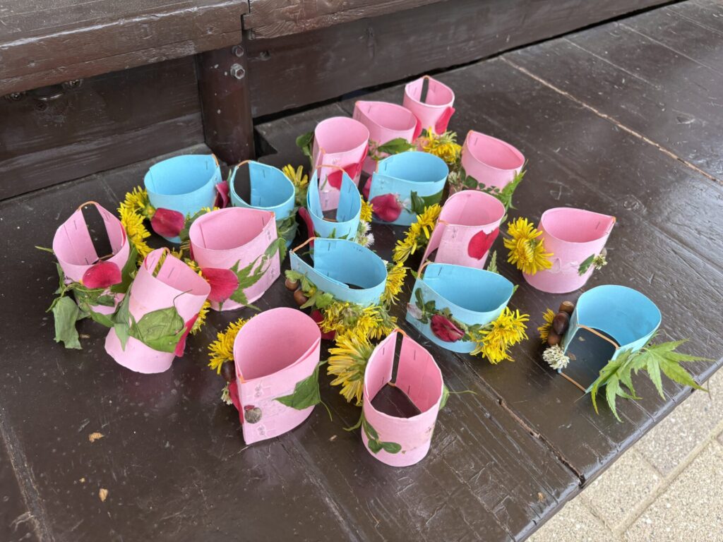 色んな春の花や葉っぱを見つけて、オリジナルブレスレッドを作りましたよ💖