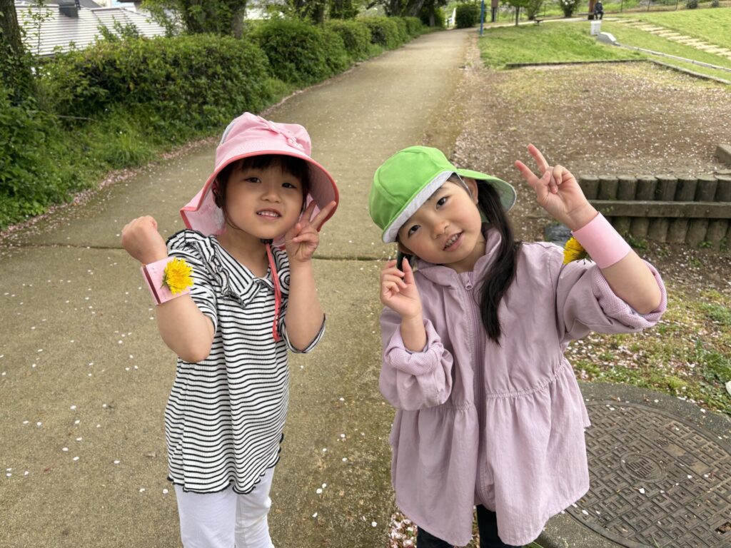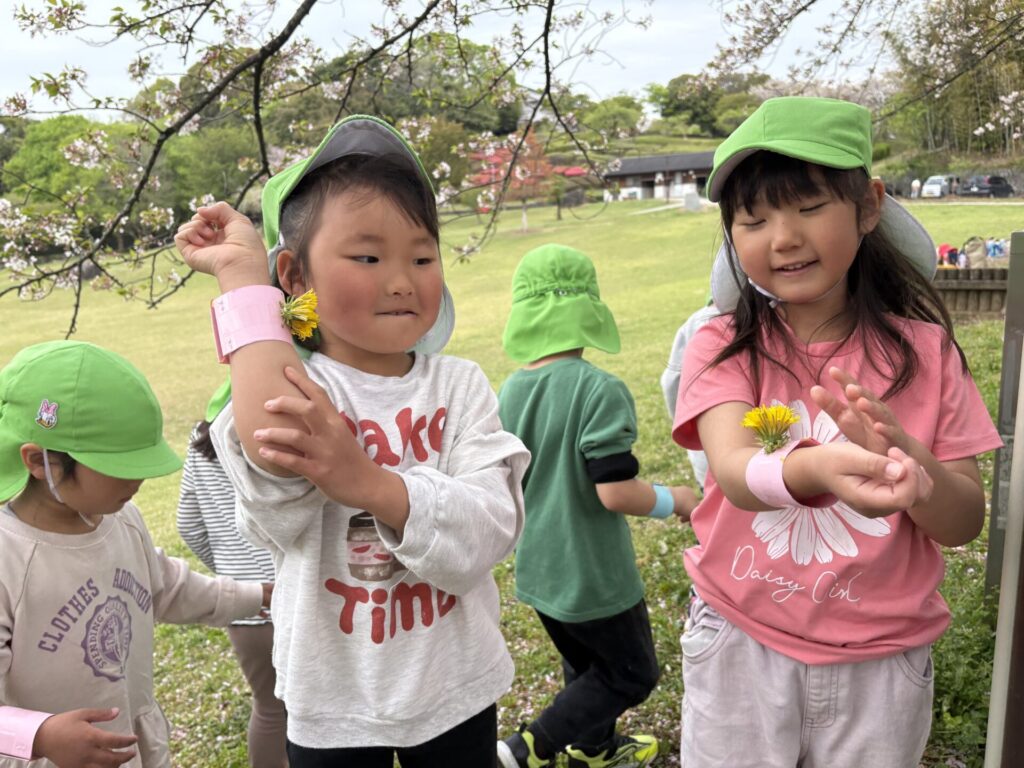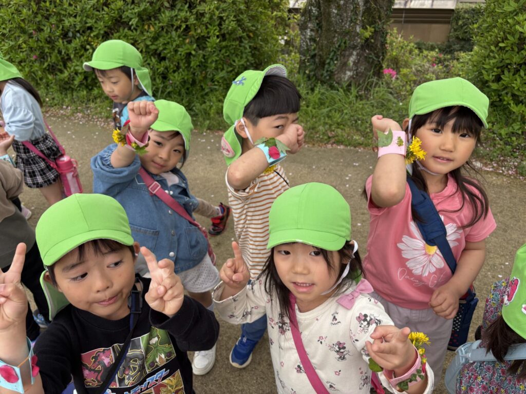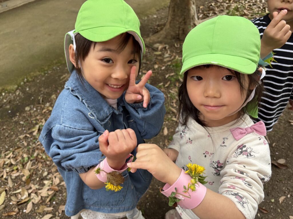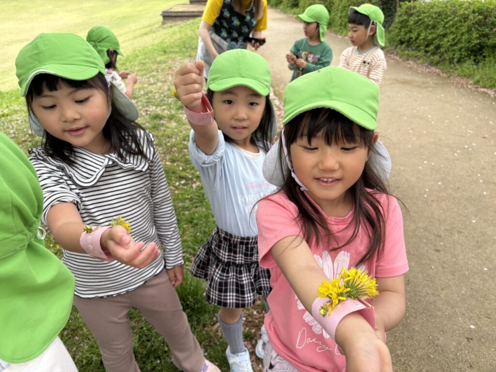 色んな春の花や葉っぱを見つけて、オリジナルブレスレッドを作りましたよ💖