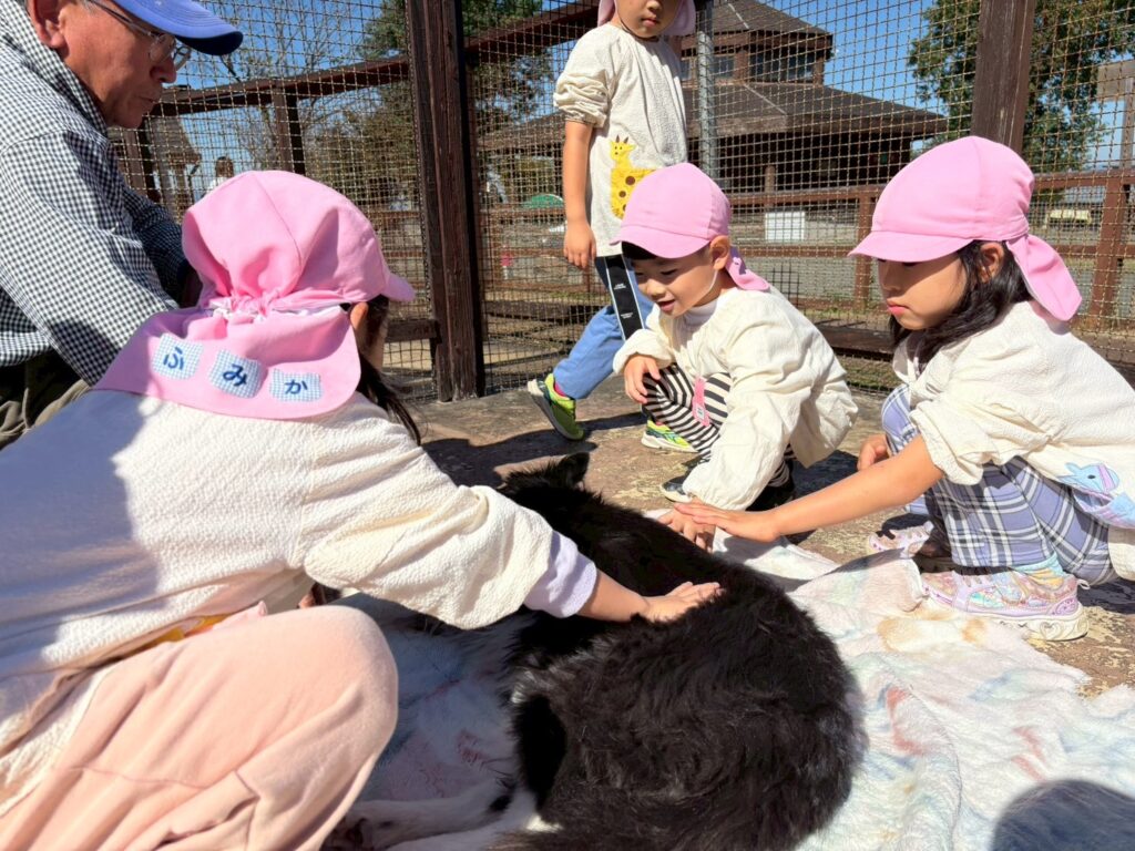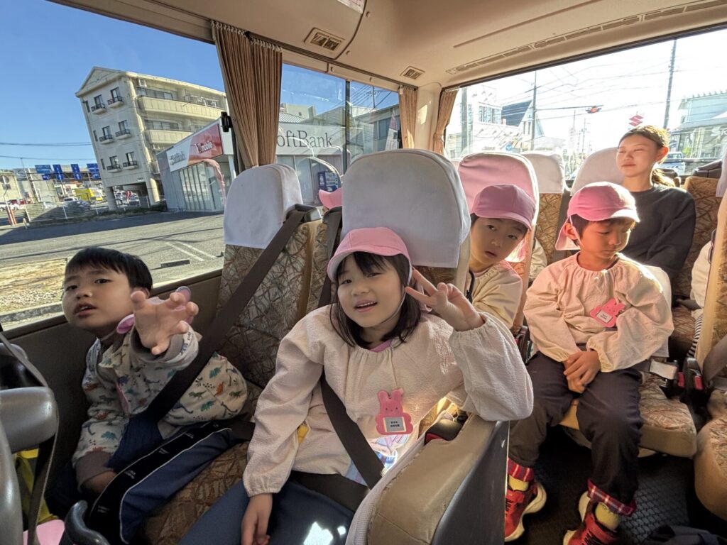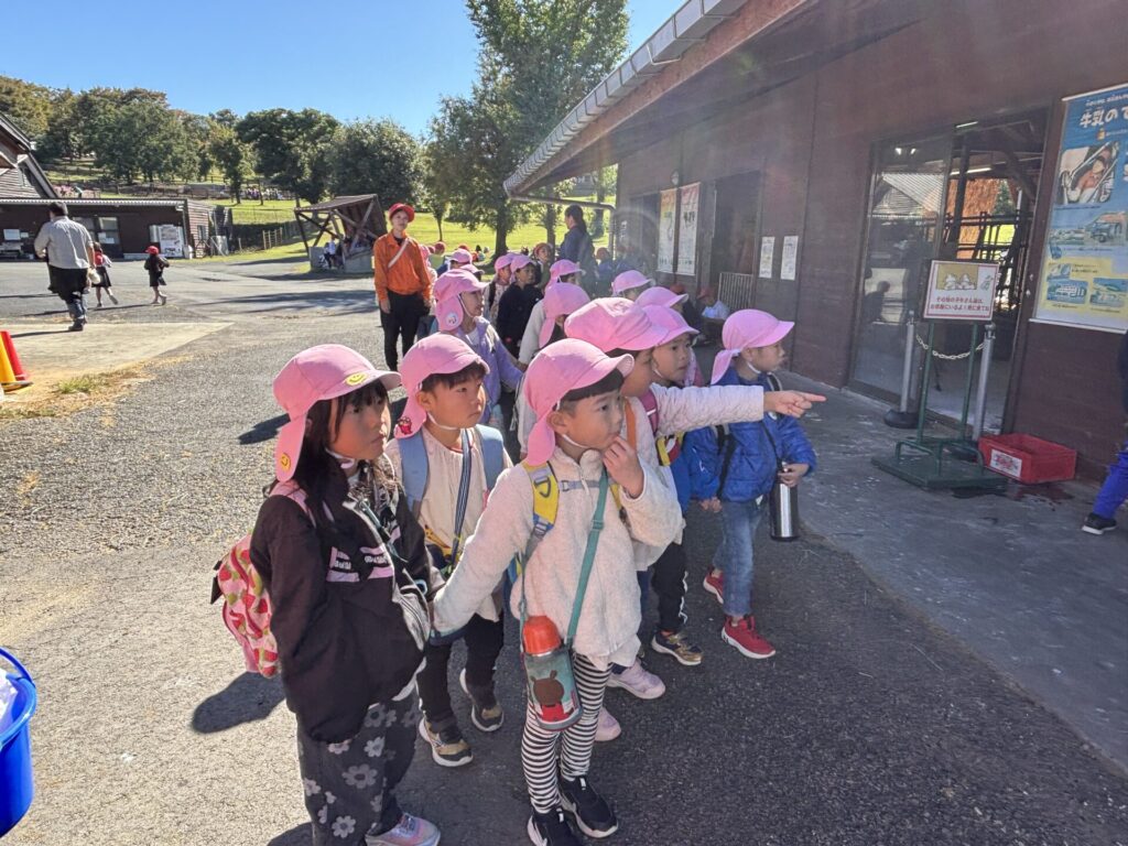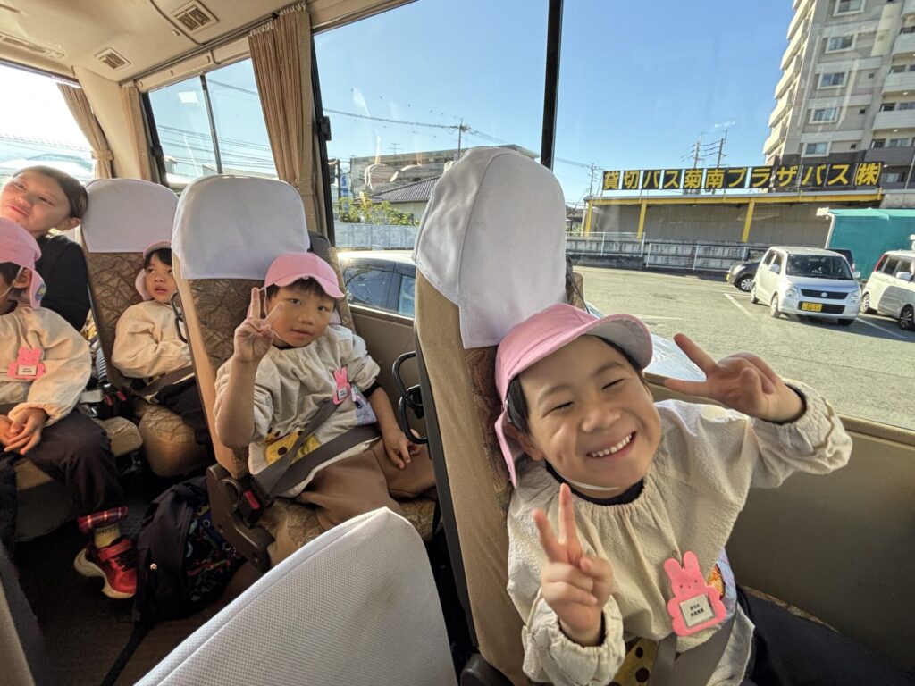 202510.29 ばら組(社会見学)① ばら組さんは、社会見学で阿蘇ミルク牧場に行きました! たくさんの動物と触れあったり、秋の自然の中でお弁当を食べたりして楽しんでいます✨ ●バスに乗って出発進行! ●ミルク牧場に到着!早速見学へGO!! ●ふれあい広場に行って、ヤギや羊に餌をやったり、犬さんと触れ合ったりしました✨ ②に続く