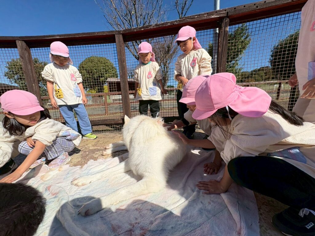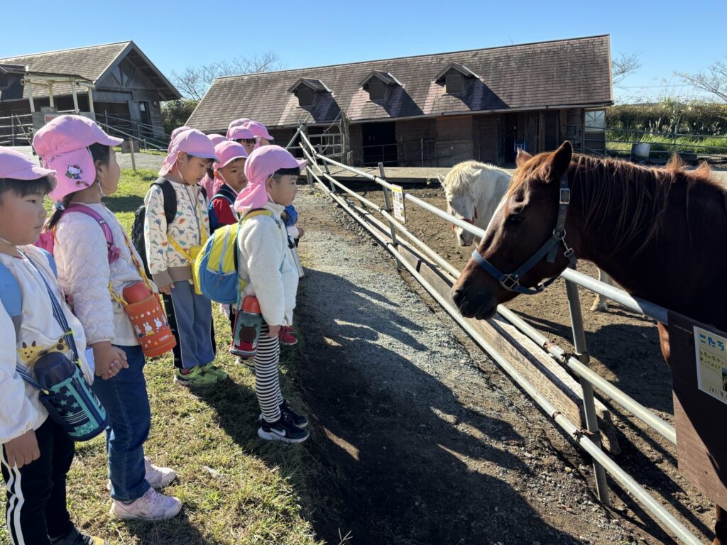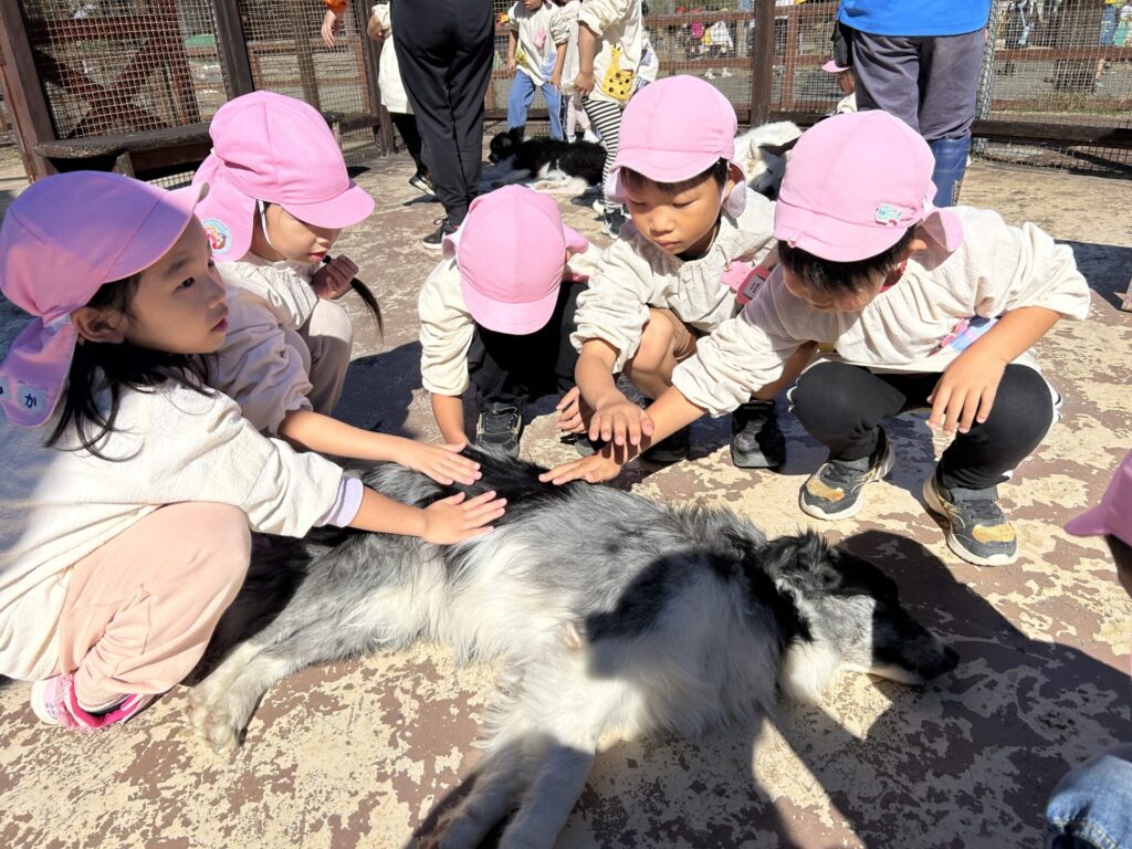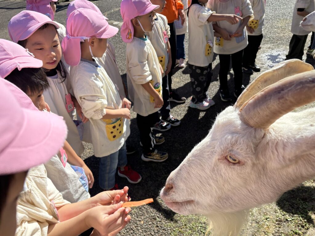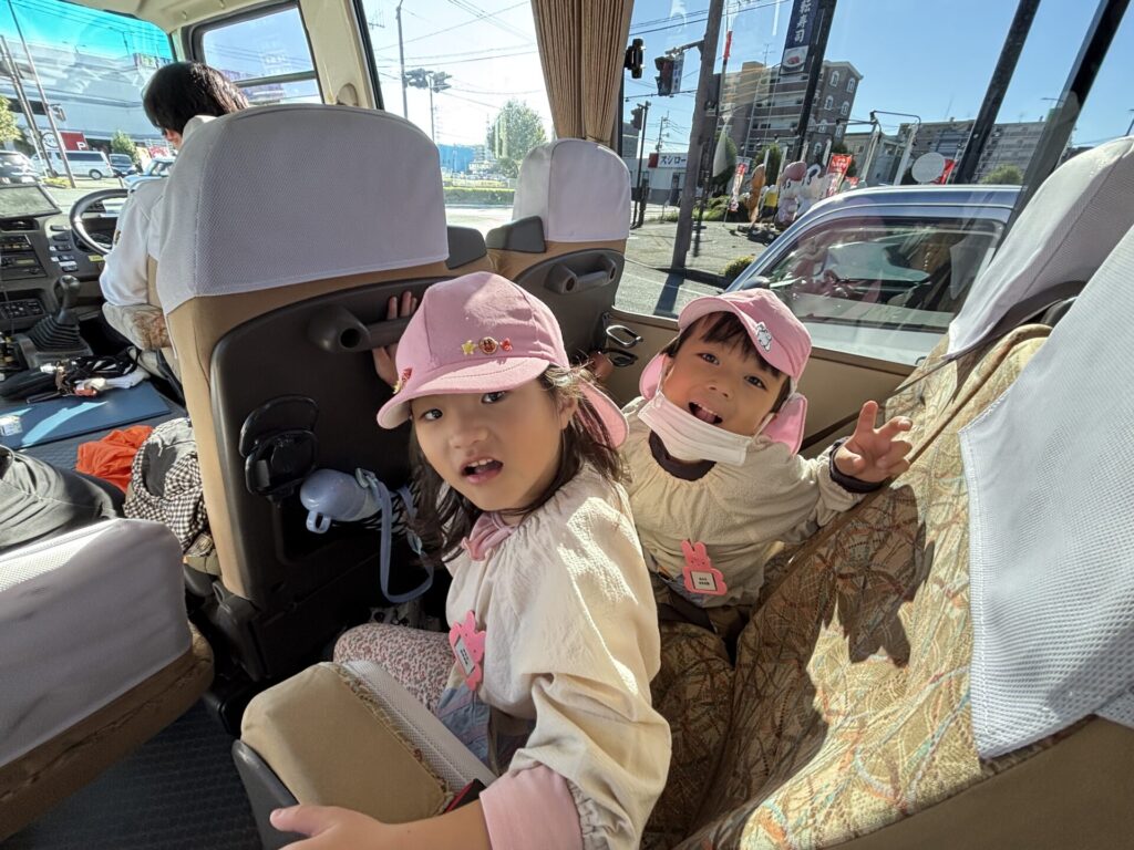 202510.29 ばら組(社会見学)① ばら組さんは、社会見学で阿蘇ミルク牧場に行きました! たくさんの動物と触れあったり、秋の自然の中でお弁当を食べたりして楽しんでいます✨ ●バスに乗って出発進行! ●ミルク牧場に到着!早速見学へGO!! ●ふれあい広場に行って、ヤギや羊に餌をやったり、犬さんと触れ合ったりしました✨ ②に続く