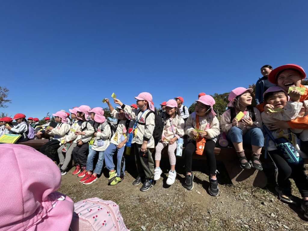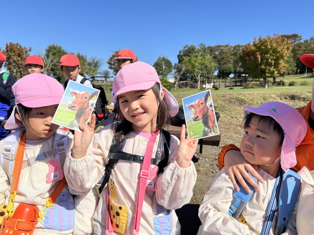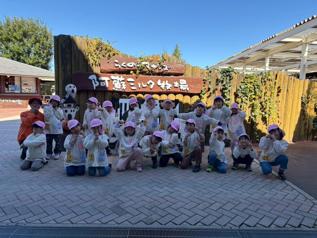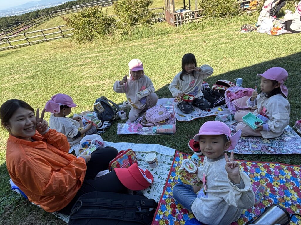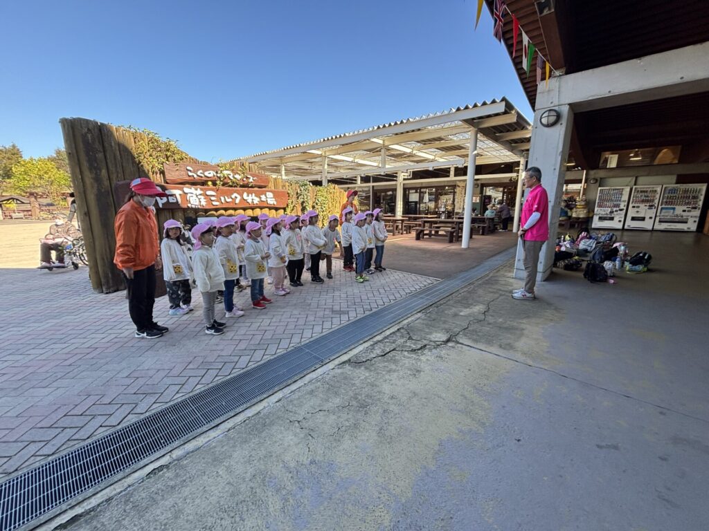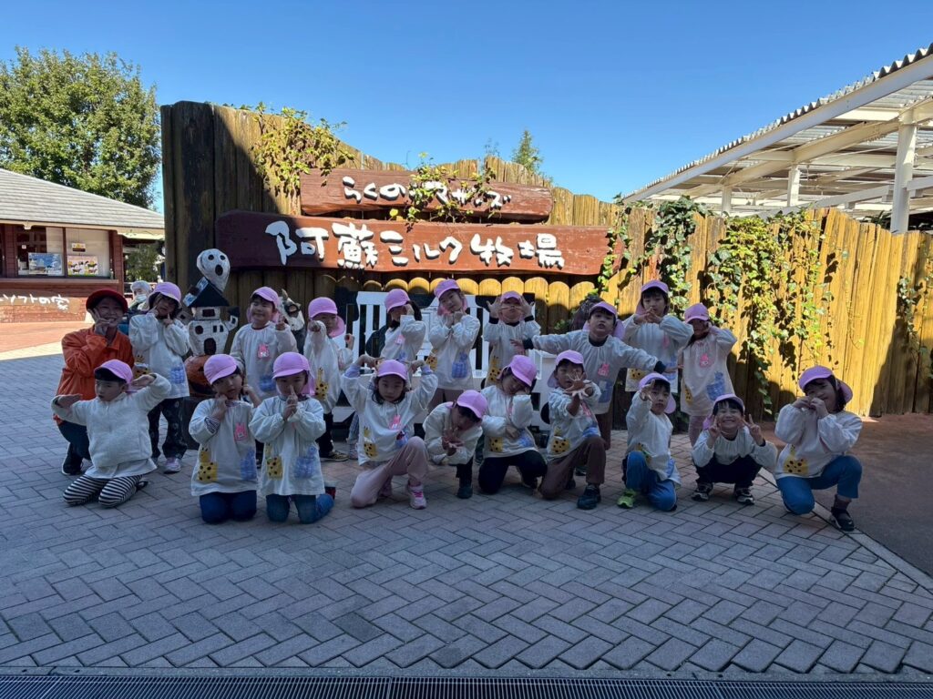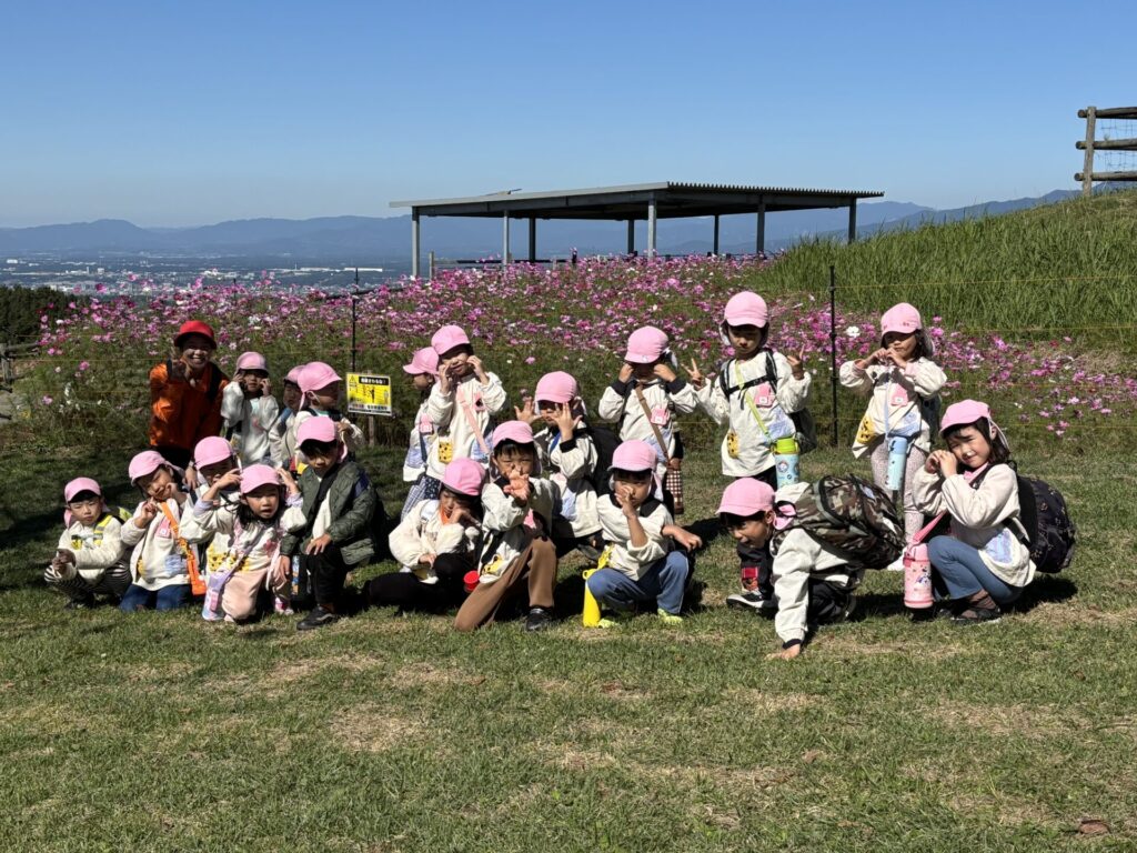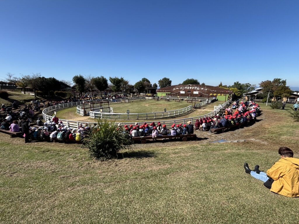 202510.29 ばら組(社会見学)② ●羊のワクワクレースを見学しました! みんなで予想して、なんと一人的中しましたよ✨ ●待ちに待ったお弁当の時間になりました! ●コスモスを背にパシャリ📸 ●最後に集合写真を撮って、ご挨拶をして帰りました😆 帰りのバスはぐっすりでした😌
