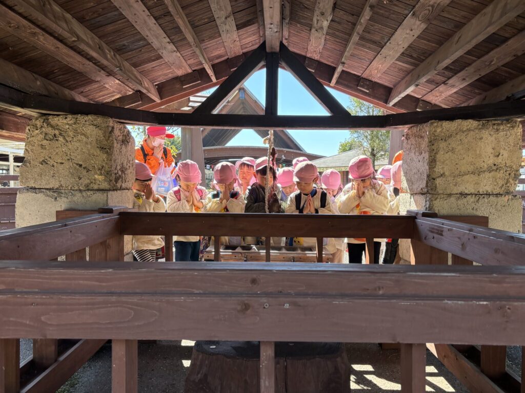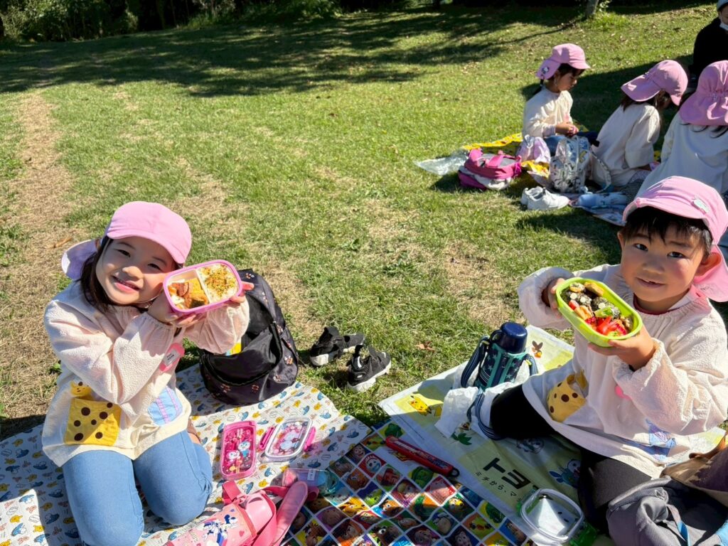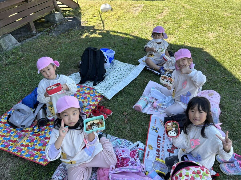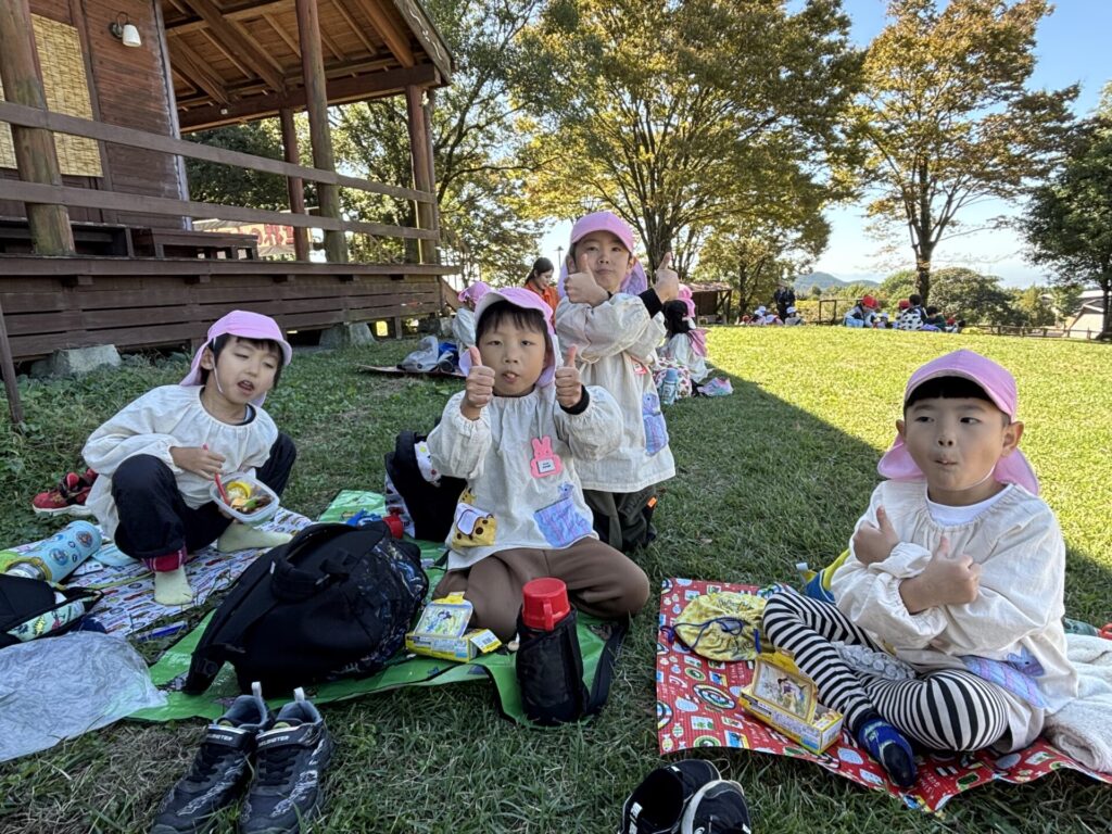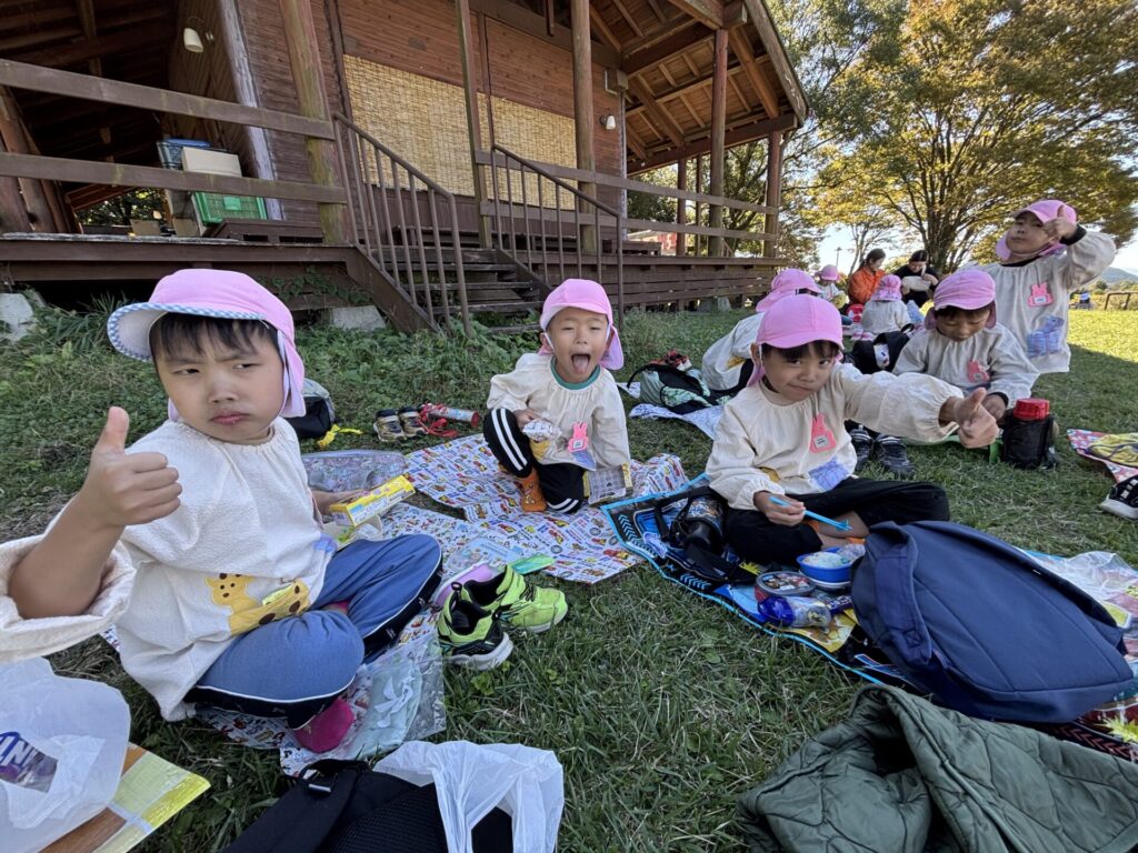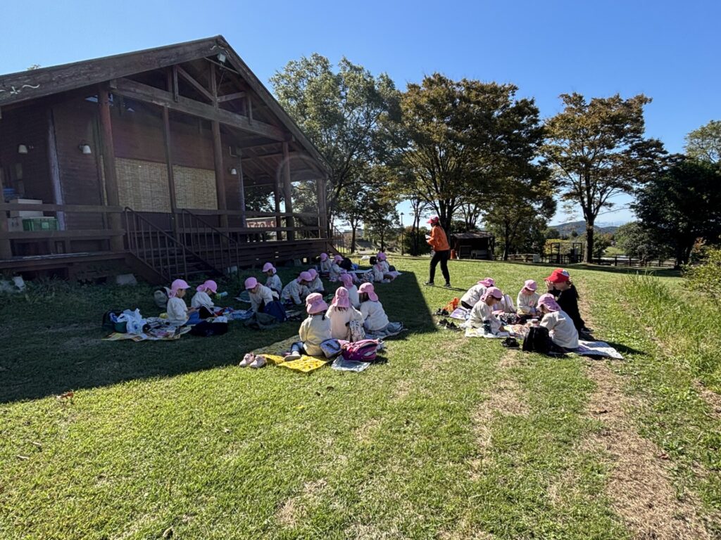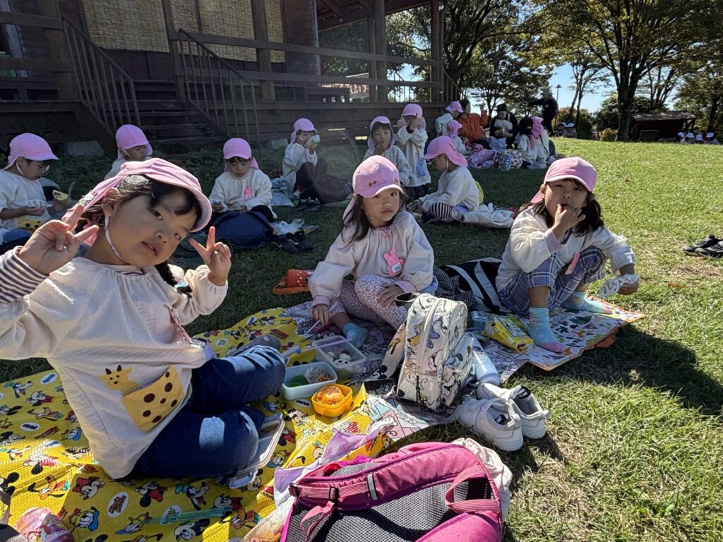 202510.29 ばら組(社会見学)② ●羊のワクワクレースを見学しました! みんなで予想して、なんと一人的中しましたよ✨ ●待ちに待ったお弁当の時間になりました! ●コスモスを背にパシャリ📸 ●最後に集合写真を撮って、ご挨拶をして帰りました😆 帰りのバスはぐっすりでした😌