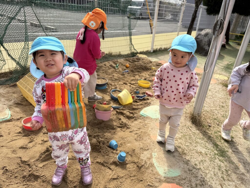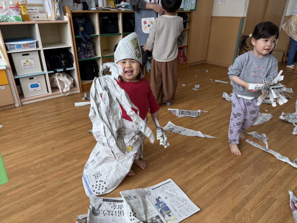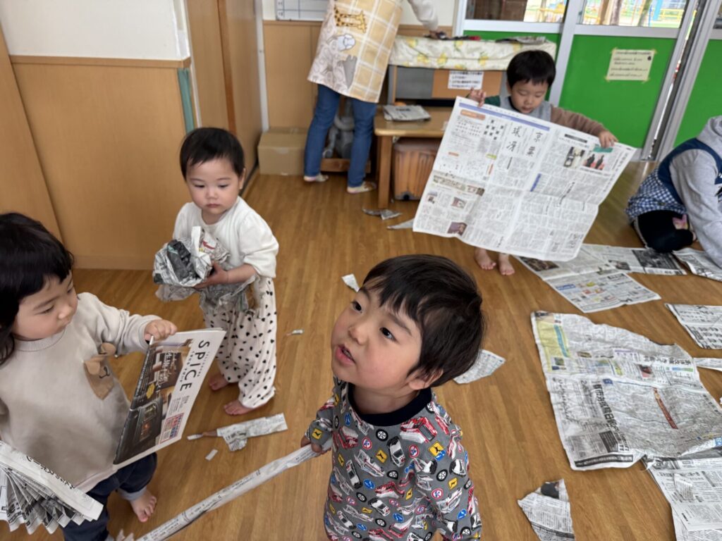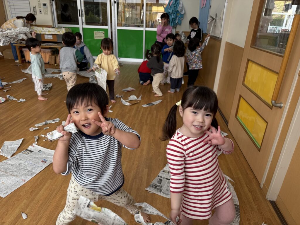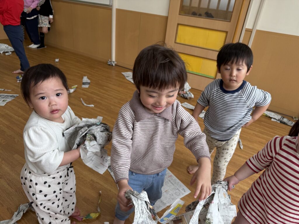 202603.25 もも組1歳児(園庭遊び&新聞紙遊び) ●3/24(火)園庭遊び お外で遊びました!元気いっぱいのお友だちでした💖 ●3/25(水)新聞紙遊び お部屋を広くして新聞紙遊びをしました!ばら組のお兄ちゃん、お姉ちゃんと過ごすのも残りわずか・・・🥲 一緒に遊べて嬉しそうなもも愚にさんです💖