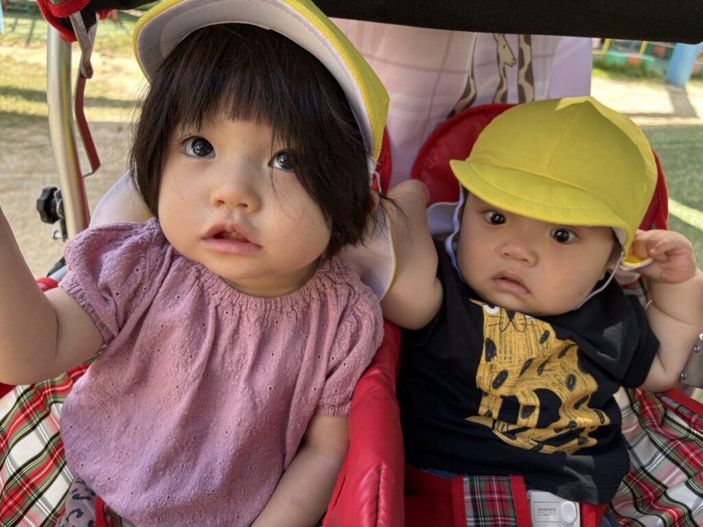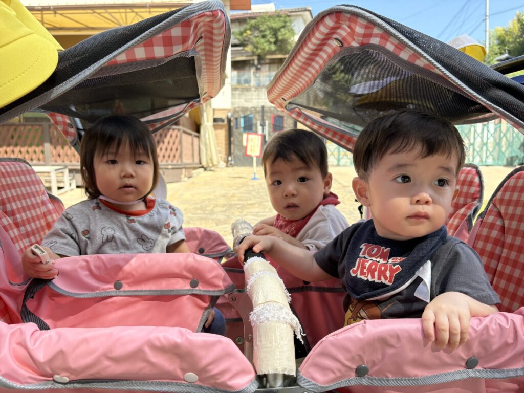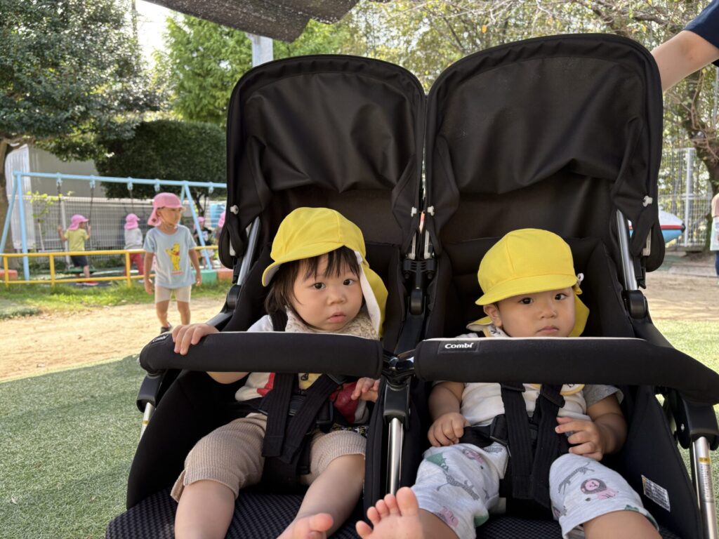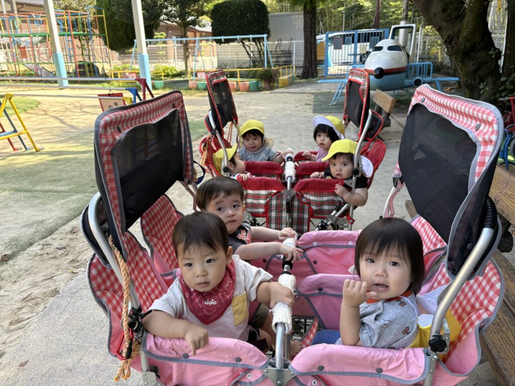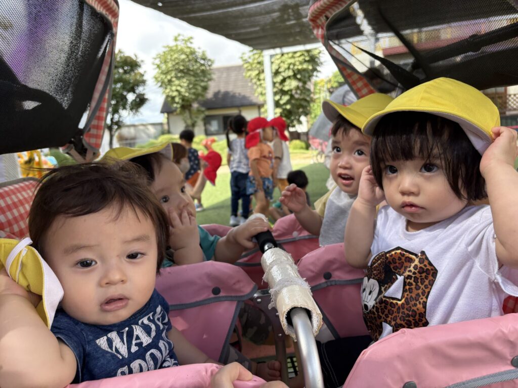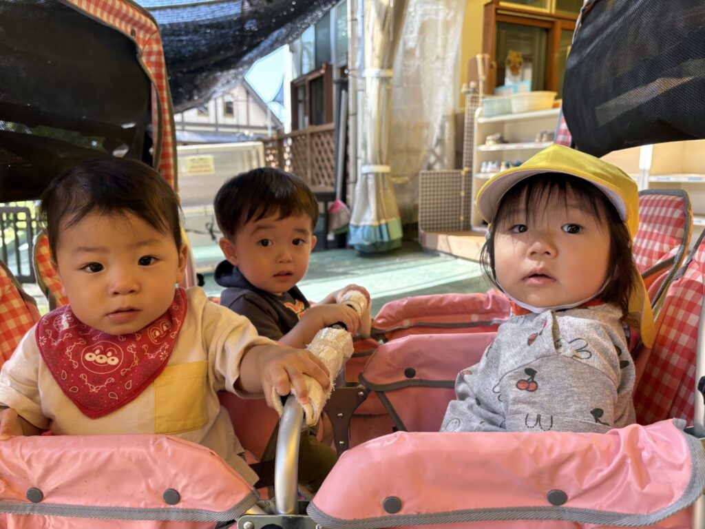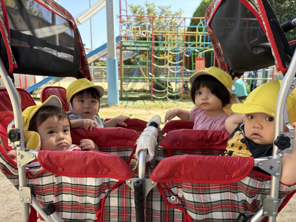 今日は、ベビーカーに乗ってお散歩をしました!