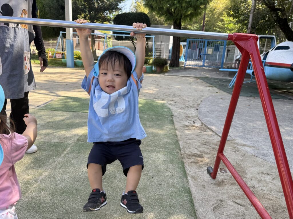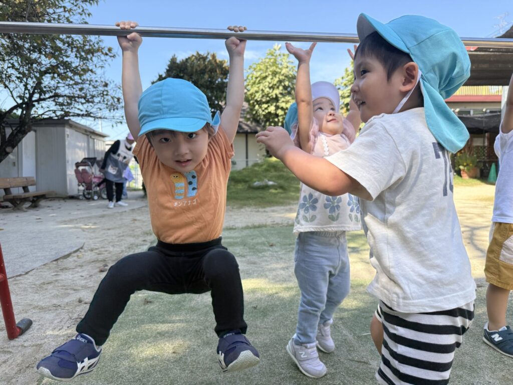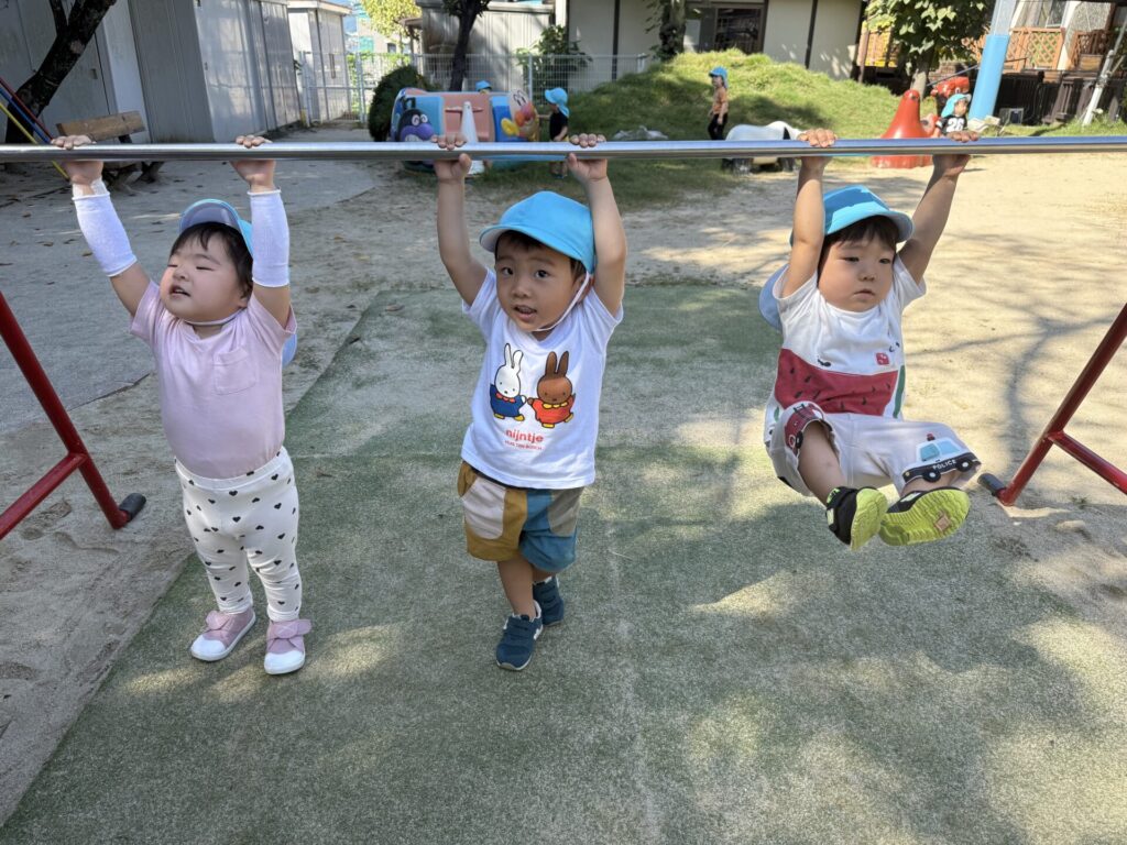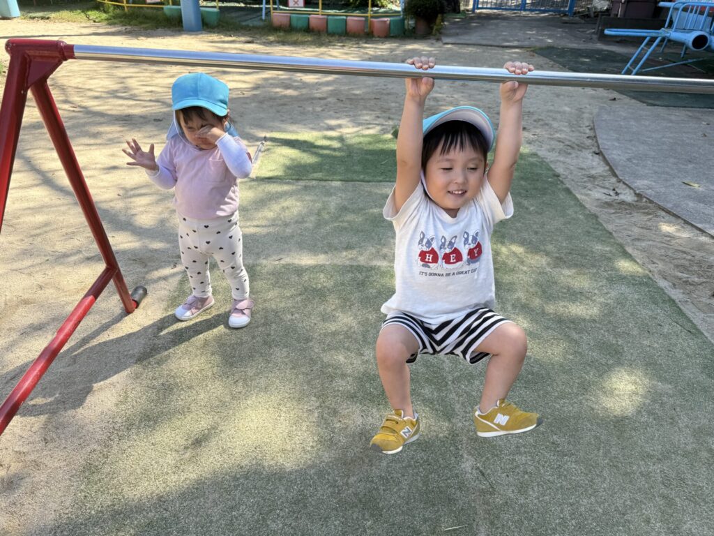 皆で鉄棒にぶら下がってみたり、ベンチに座ってみたり、