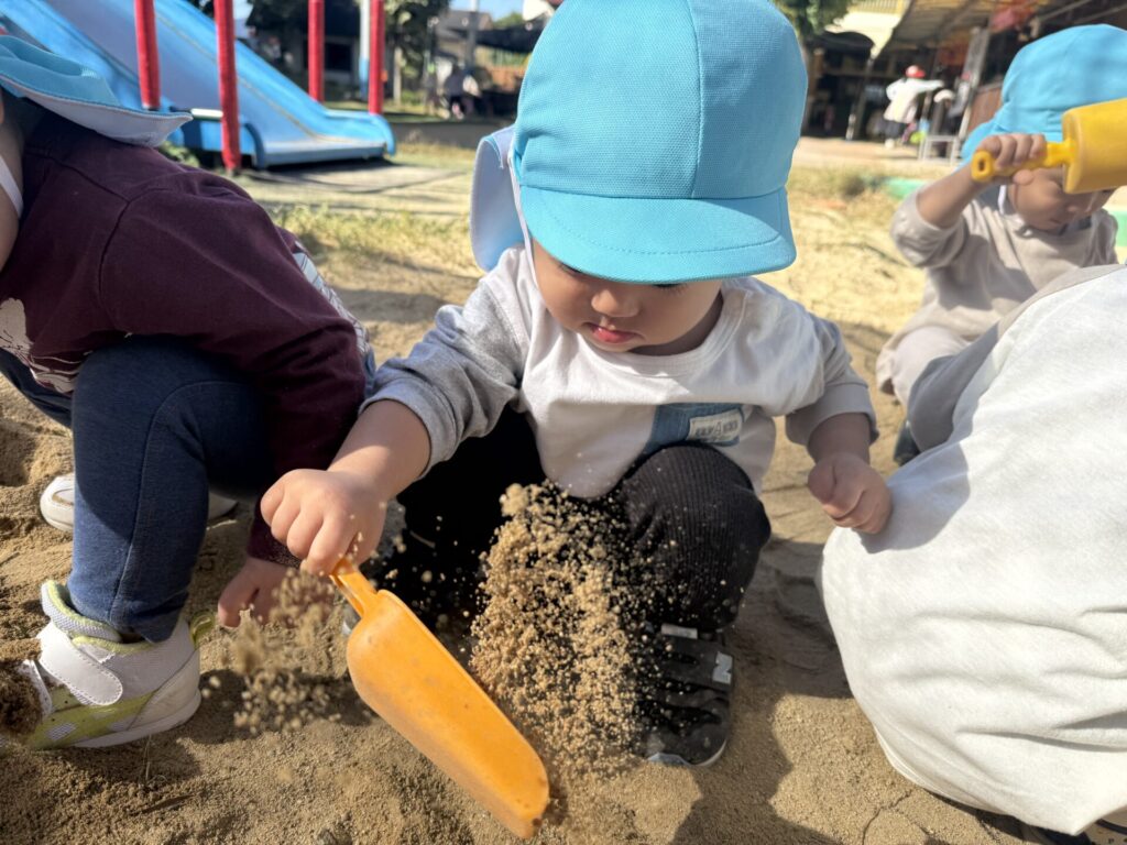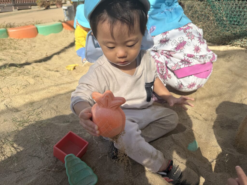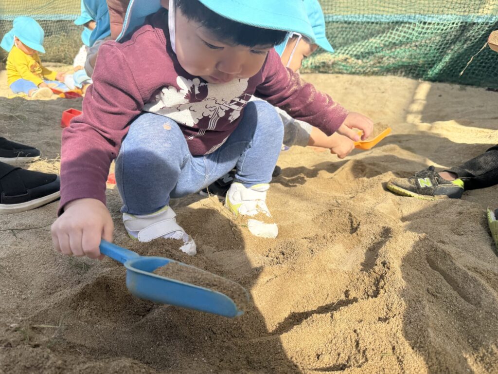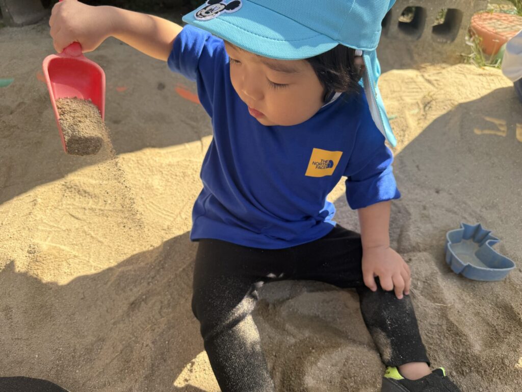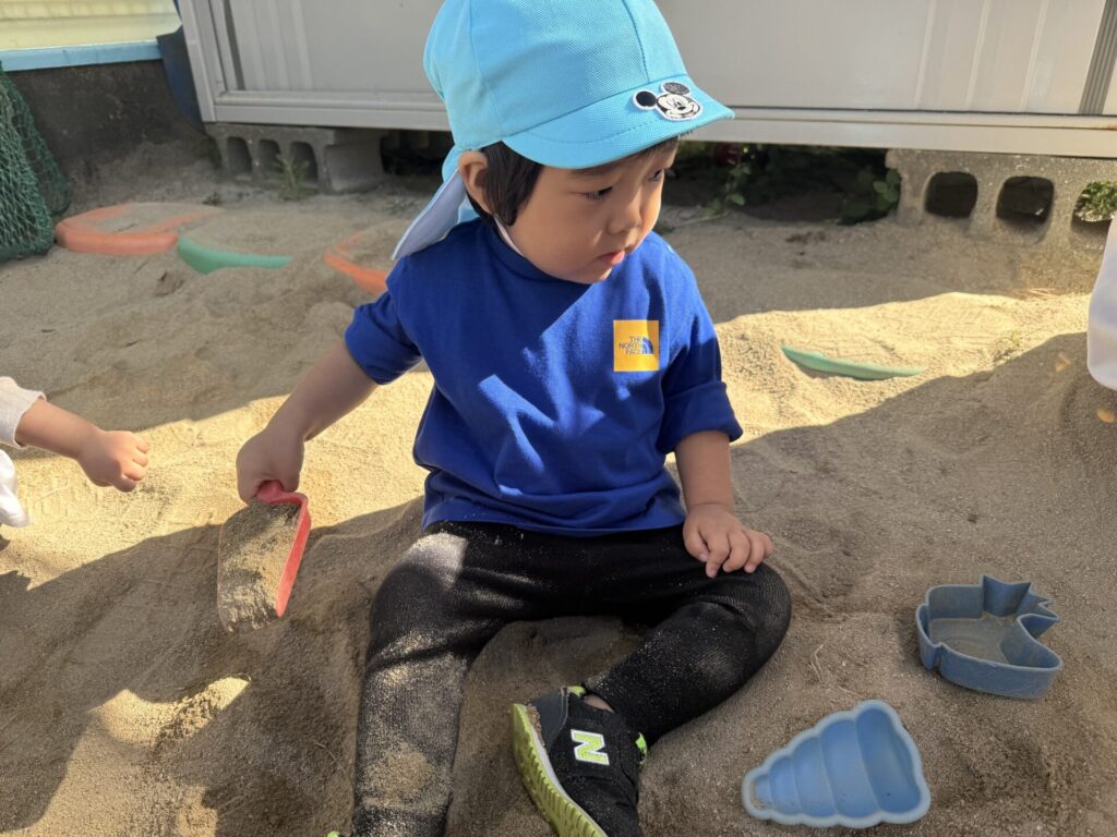スコップで穴を掘ったり、型に砂を入れたりして、上手に遊んでいたお友だちでした✨