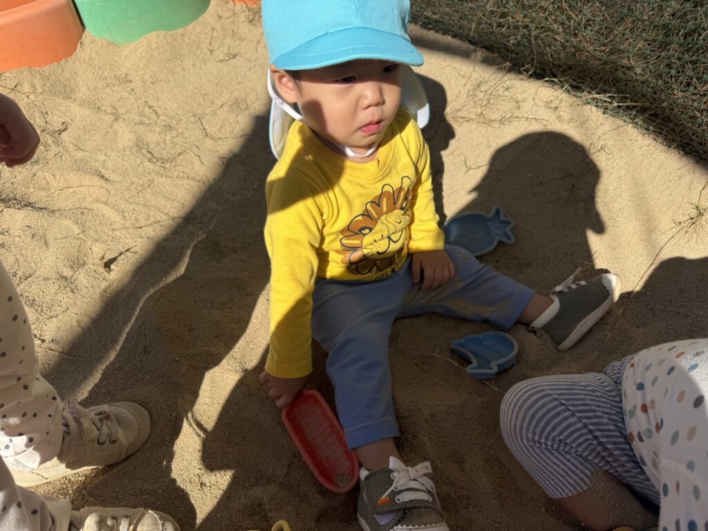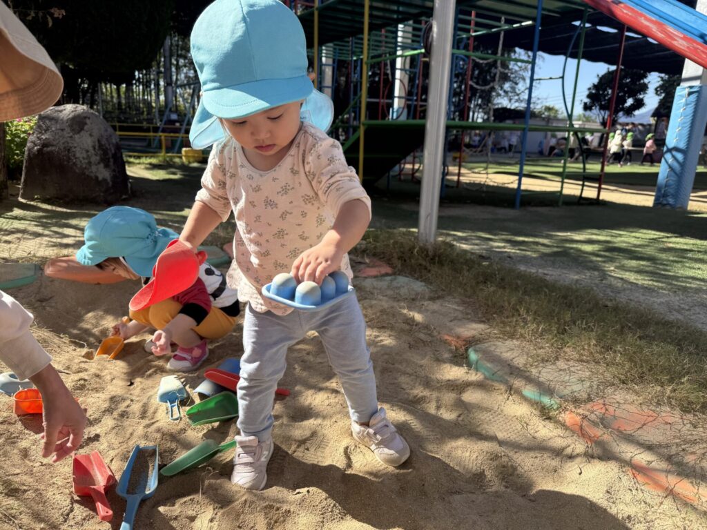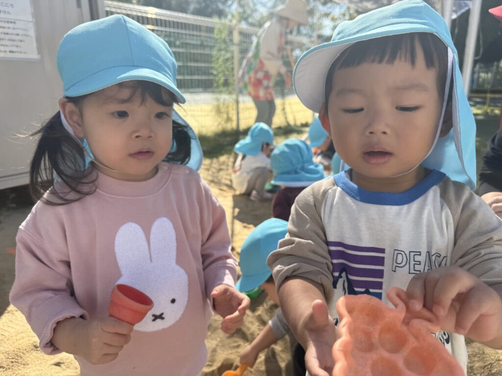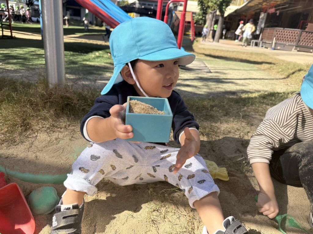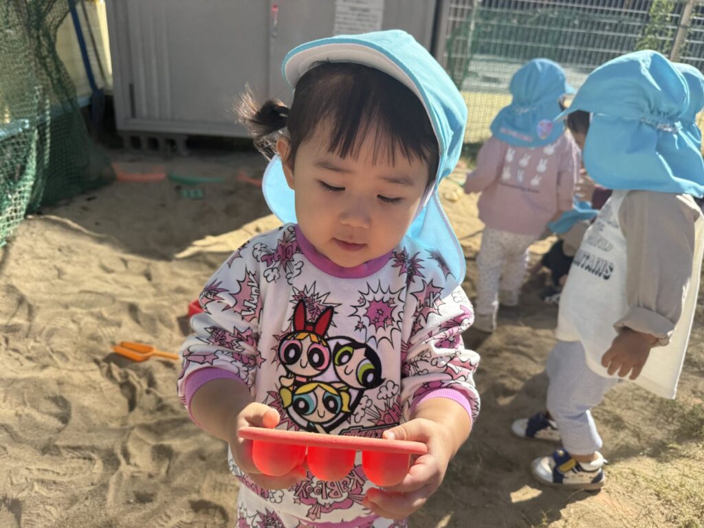 スコップで穴を掘ったり、型に砂を入れたりして、上手に遊んでいたお友だちでした✨