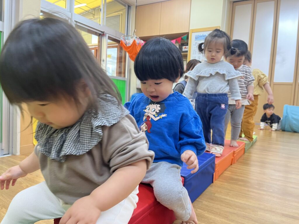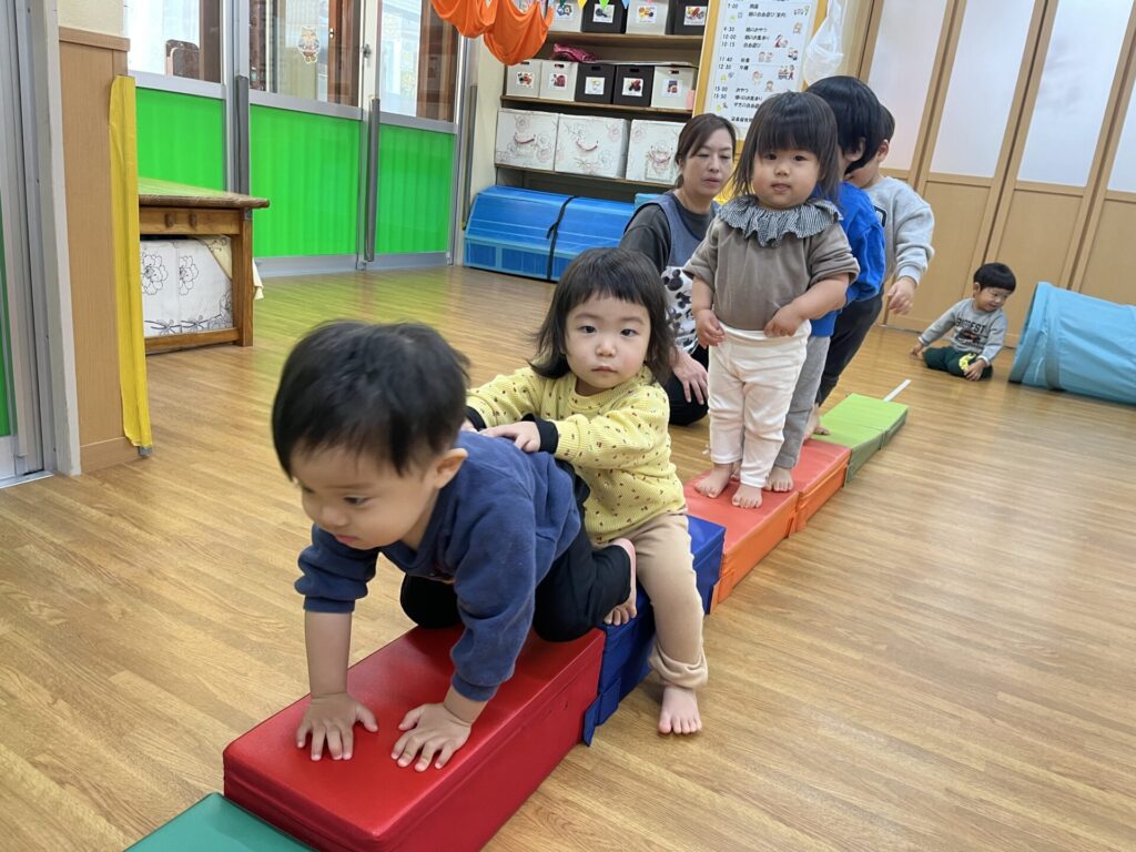 202601.06 もも1歳児(運動遊び) あけましておめでとうございます🎉 今年もよろしくお願いいたします✨ ●1/5(月)室内で運動遊びをしました✨ 順番を守ったり、お友だちを待ってあげたりと、約束を守って楽しく身体を動かしました💪