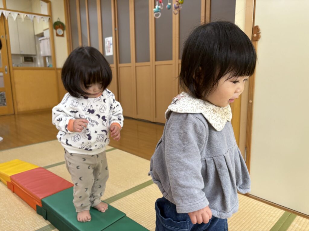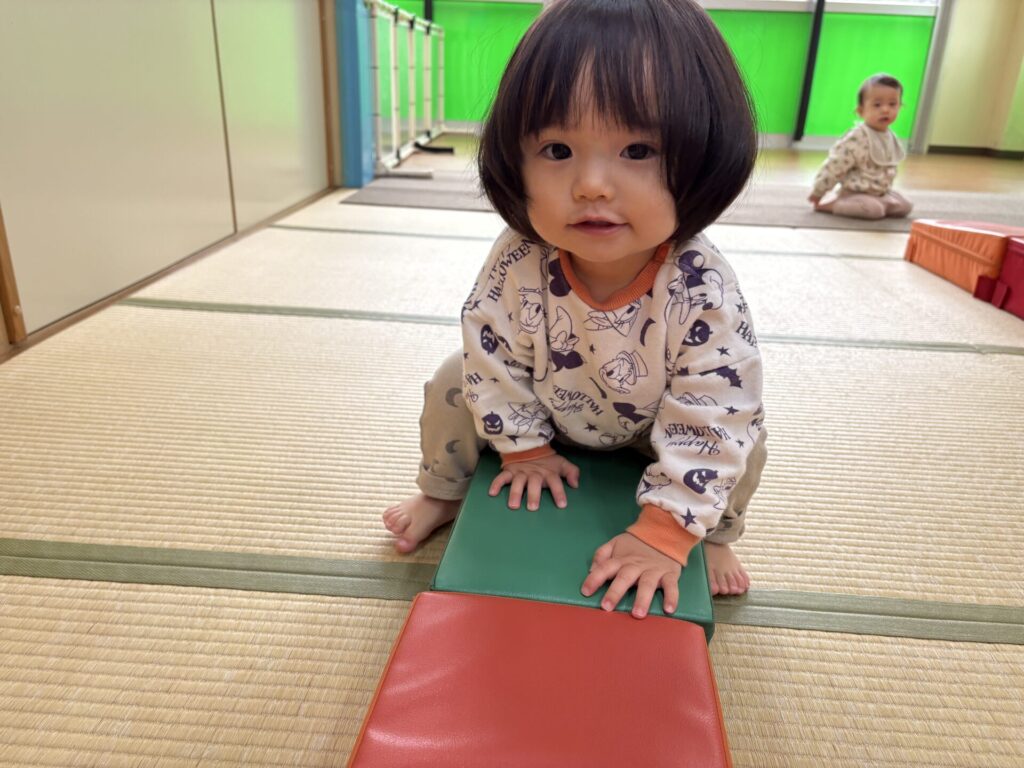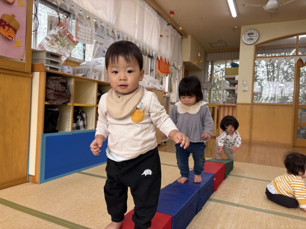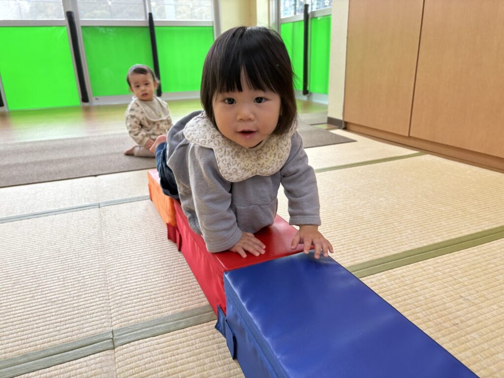アスレチックの上でハイハイをしたり、歩いたりバランスを取りながら