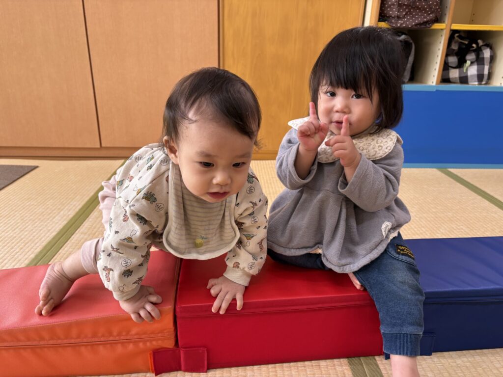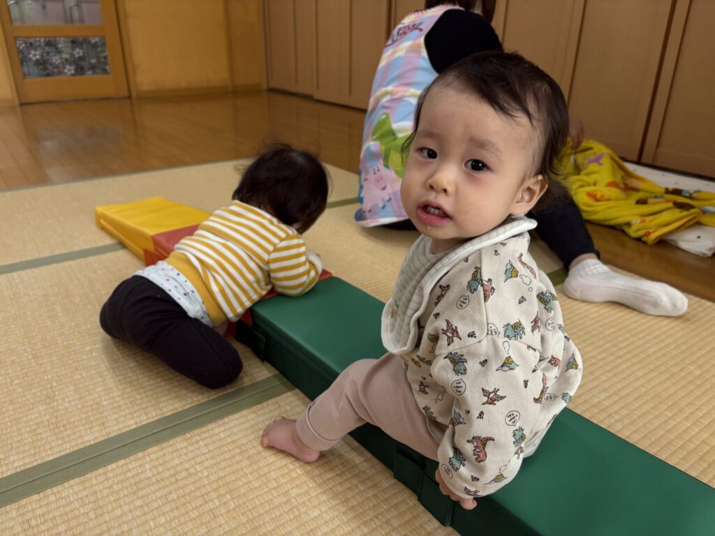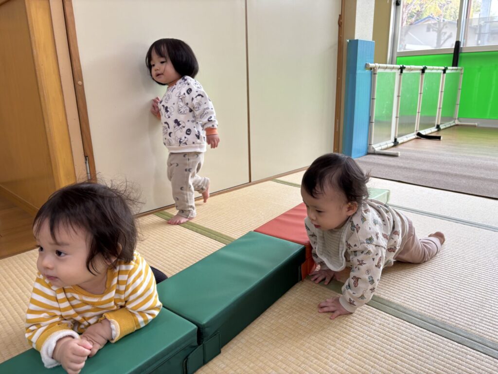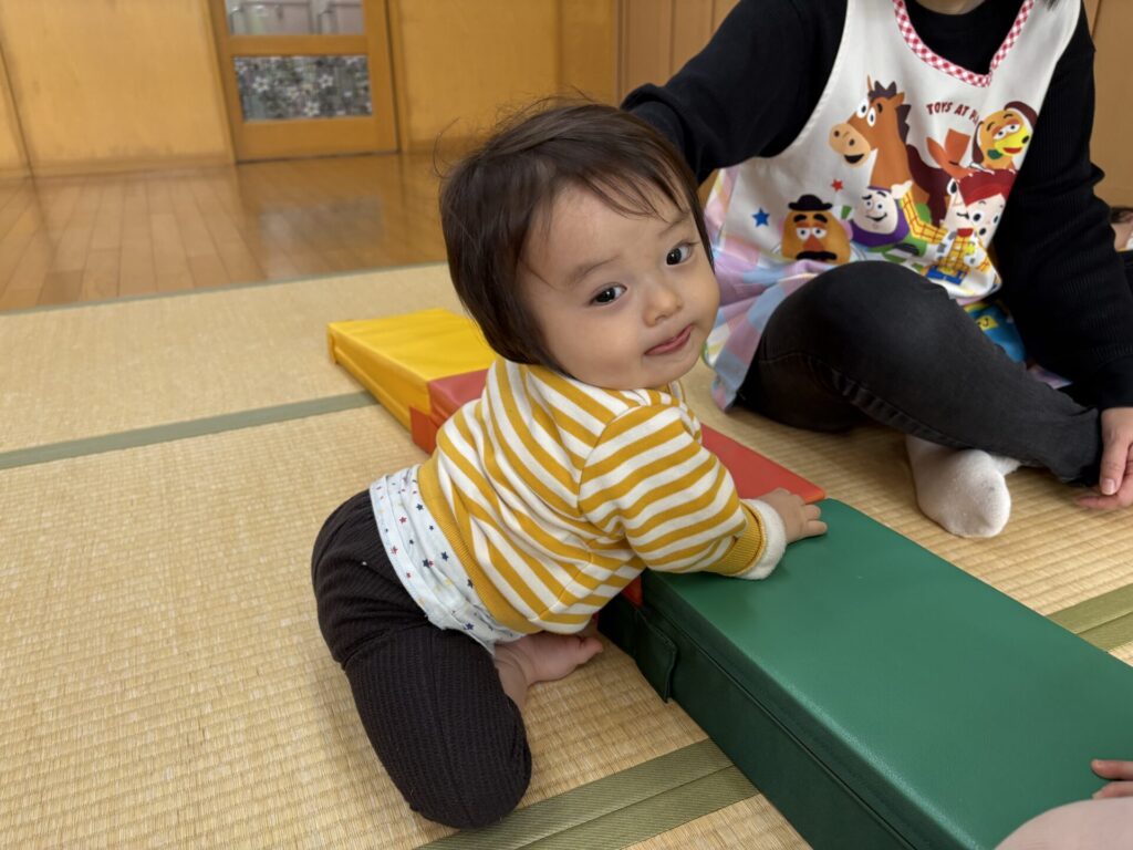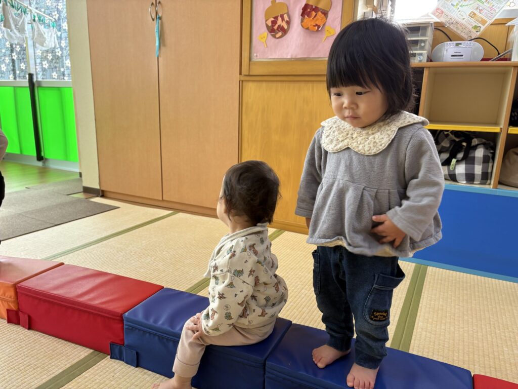 アスレチックの上でハイハイをしたり、歩いたりバランスを取りながら