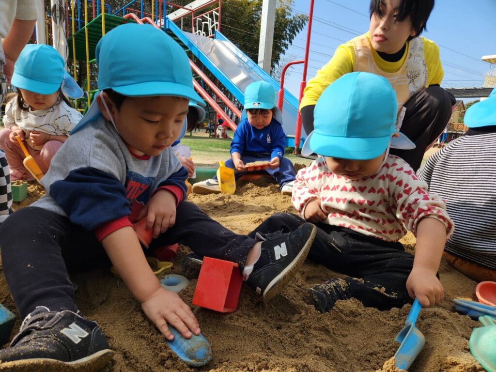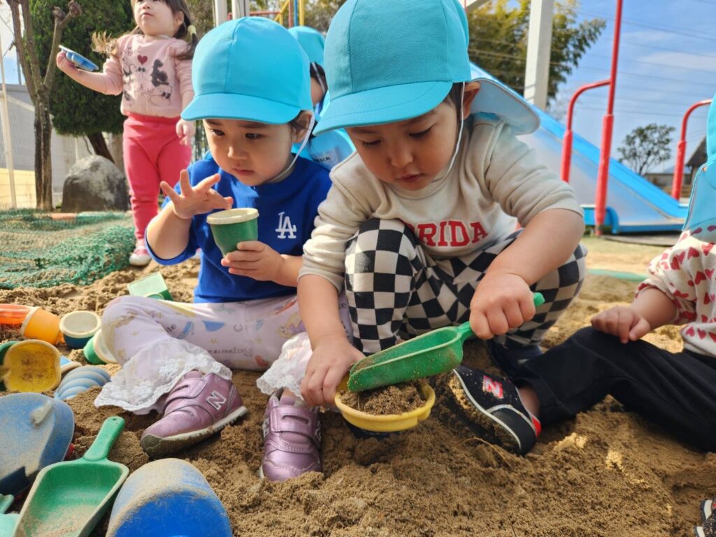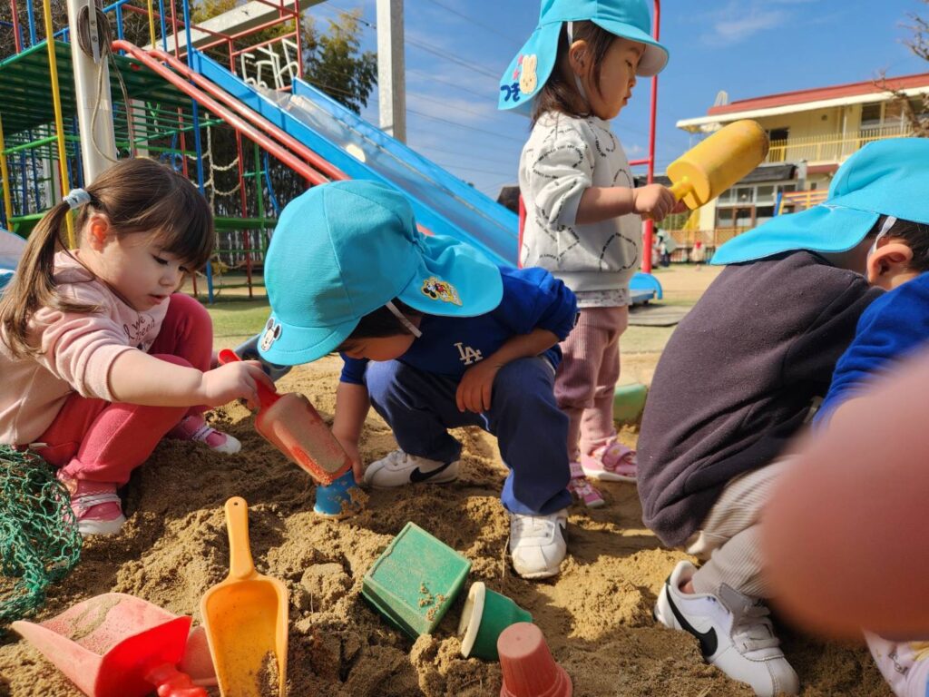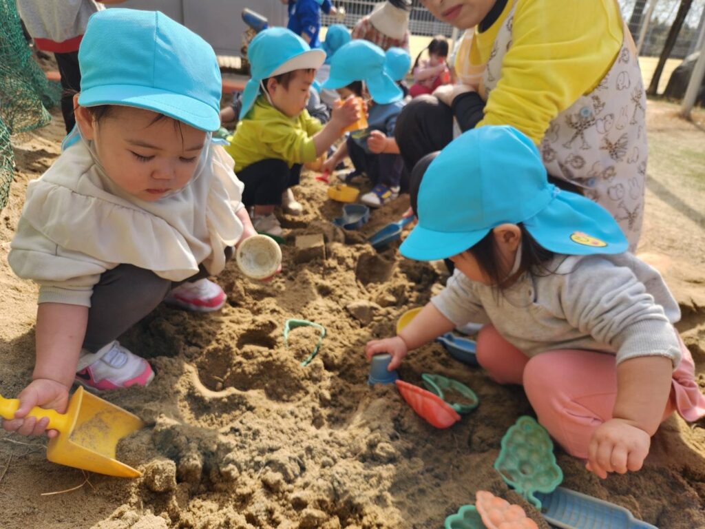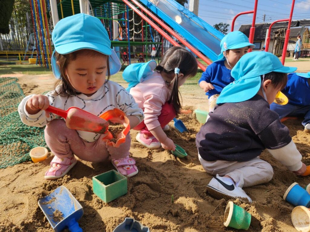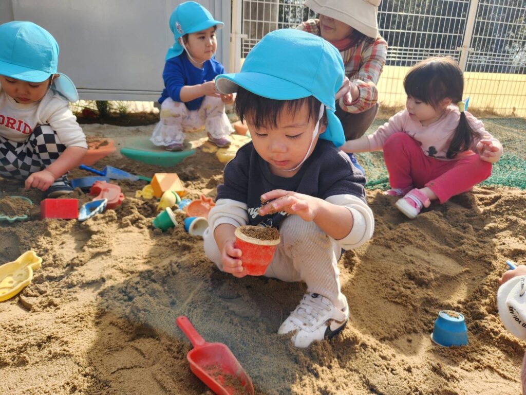 型抜きに砂を入れるのも上手になったもも組のお友だちです💖