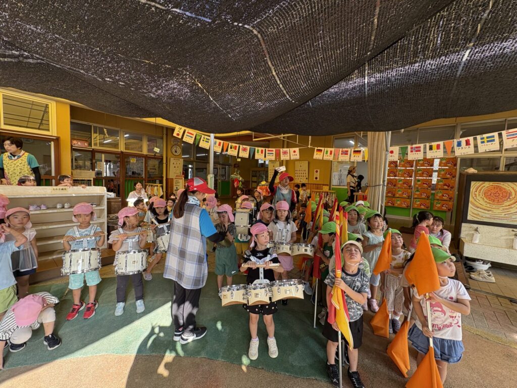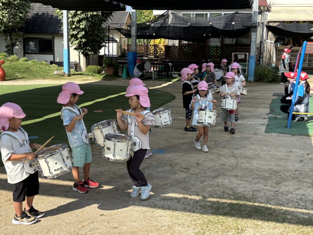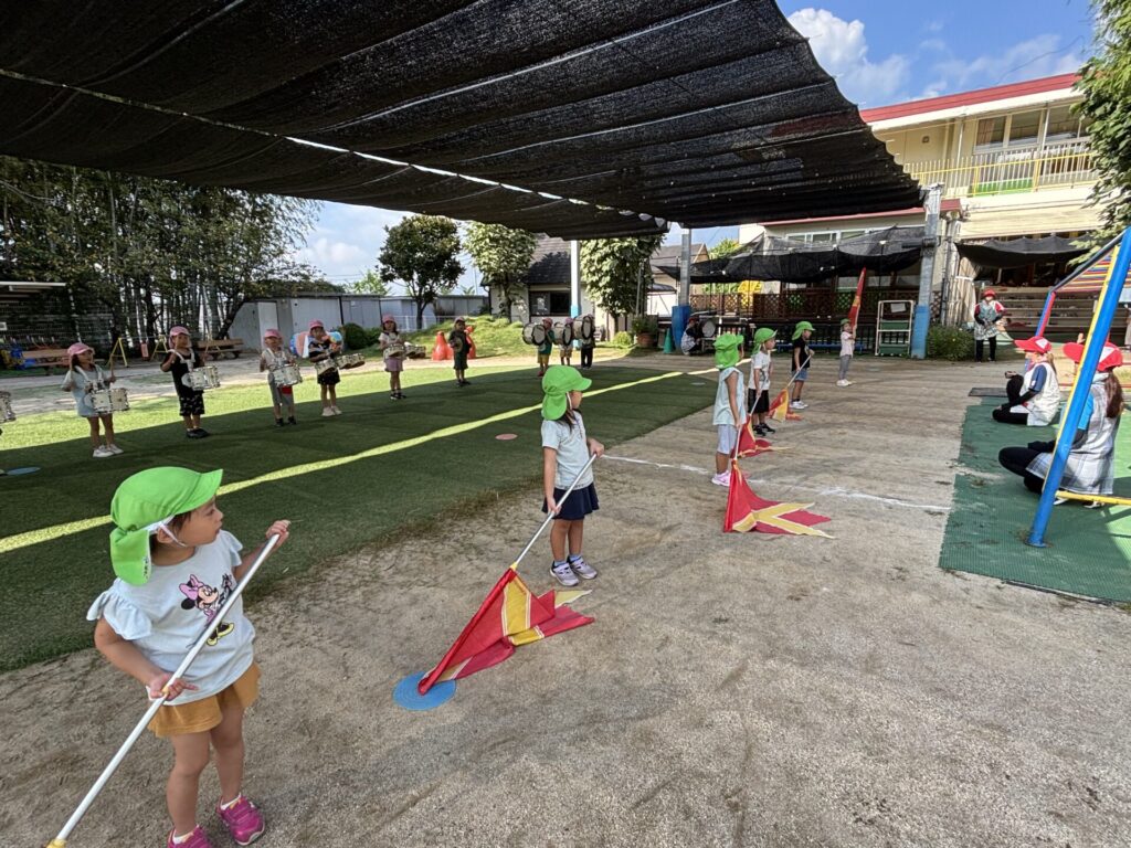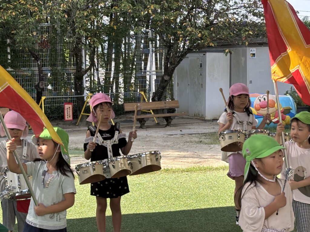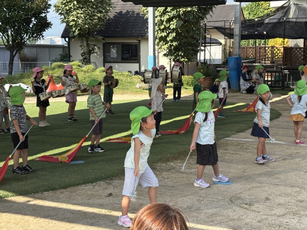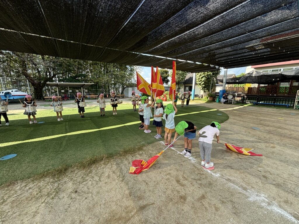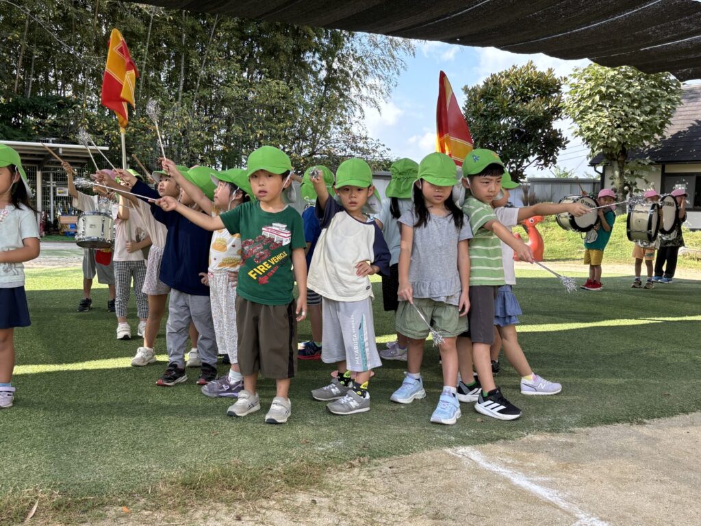 202509.26 ゆり・ばら組(マーチング練習) 今日は、運動会に向けての最後のマーチング練習がありました✨ 4月から、ゆり組とばら組で少しずつ練習を重ねてきました😌猛暑で思うように練習できない日もありましたが、子どもたちは力を合わせて一生懸命頑張ってきました。 運動会本番に向けて、みんな気合い十分です!当日は、子どもたち一人ひとりが楽しみながら力を発揮できるといいなと思います😊