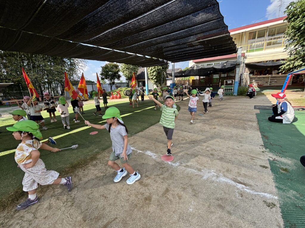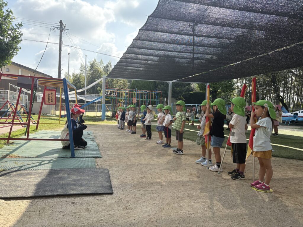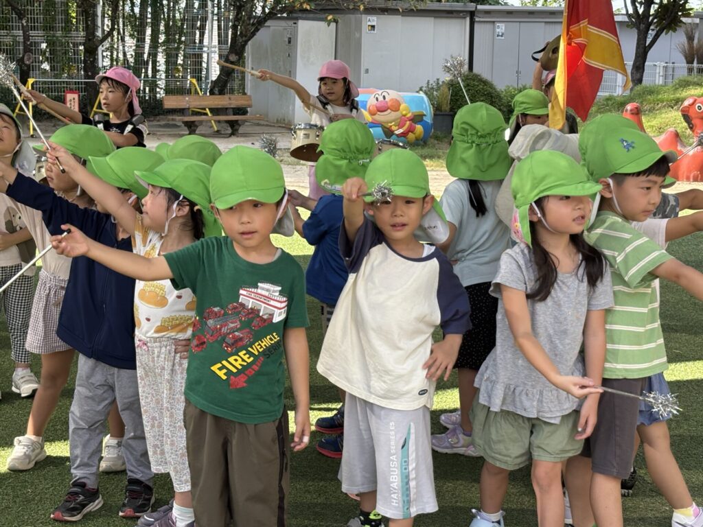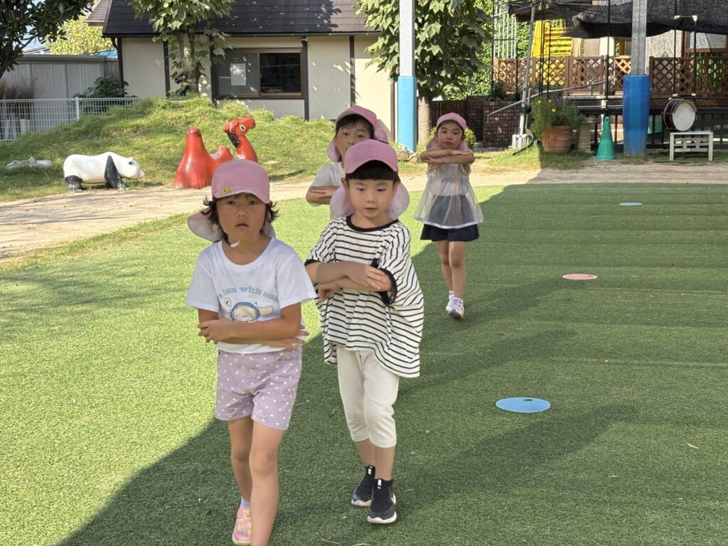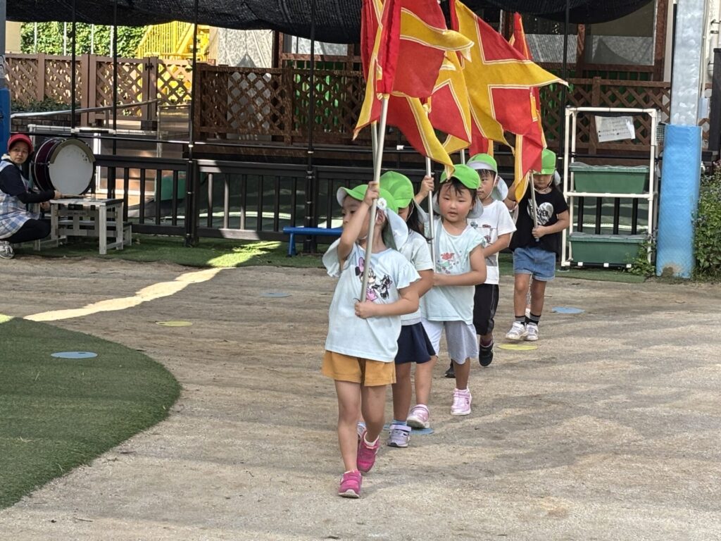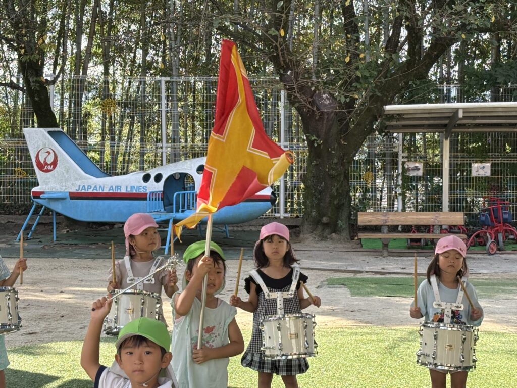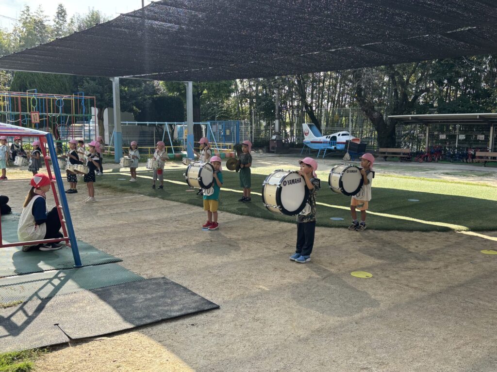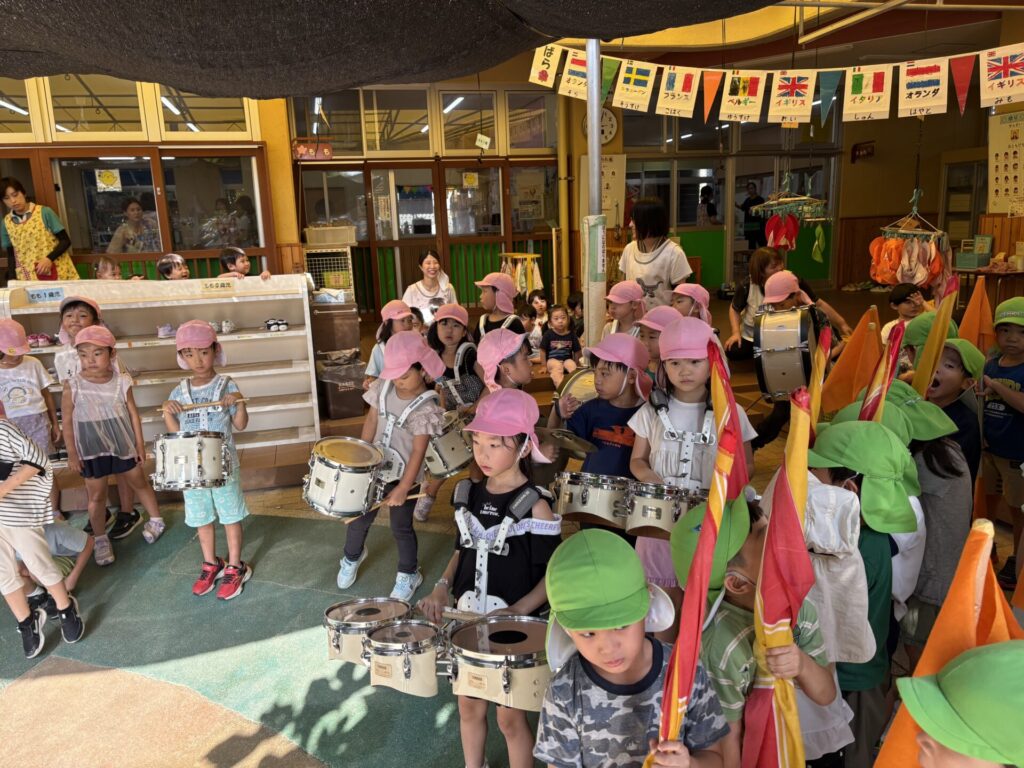 202509.26 ゆり・ばら組(マーチング練習) 今日は、運動会に向けての最後のマーチング練習がありました✨ 4月から、ゆり組とばら組で少しずつ練習を重ねてきました😌猛暑で思うように練習できない日もありましたが、子どもたちは力を合わせて一生懸命頑張ってきました。 運動会本番に向けて、みんな気合い十分です!当日は、子どもたち一人ひとりが楽しみながら力を発揮できるといいなと思います😊