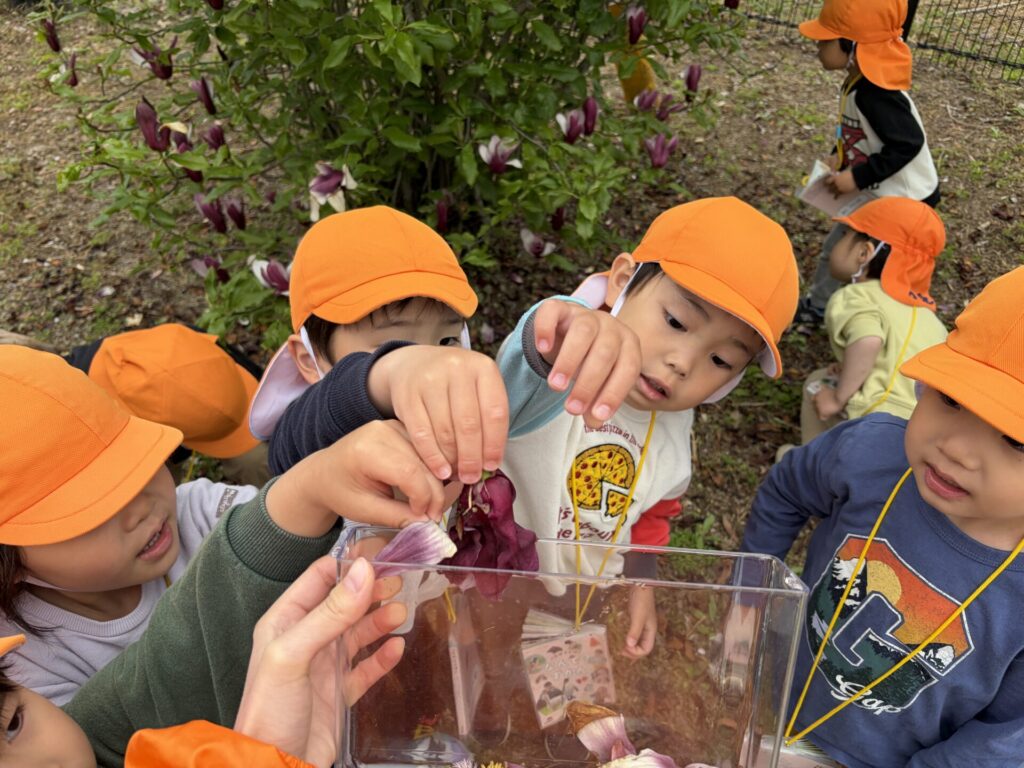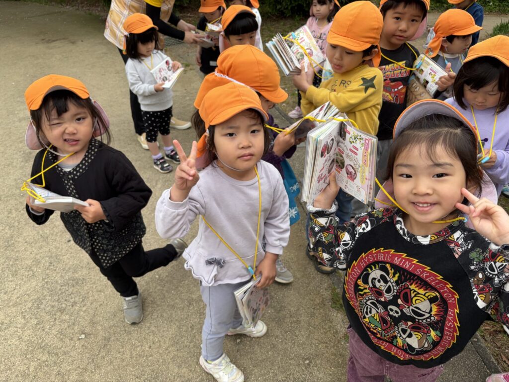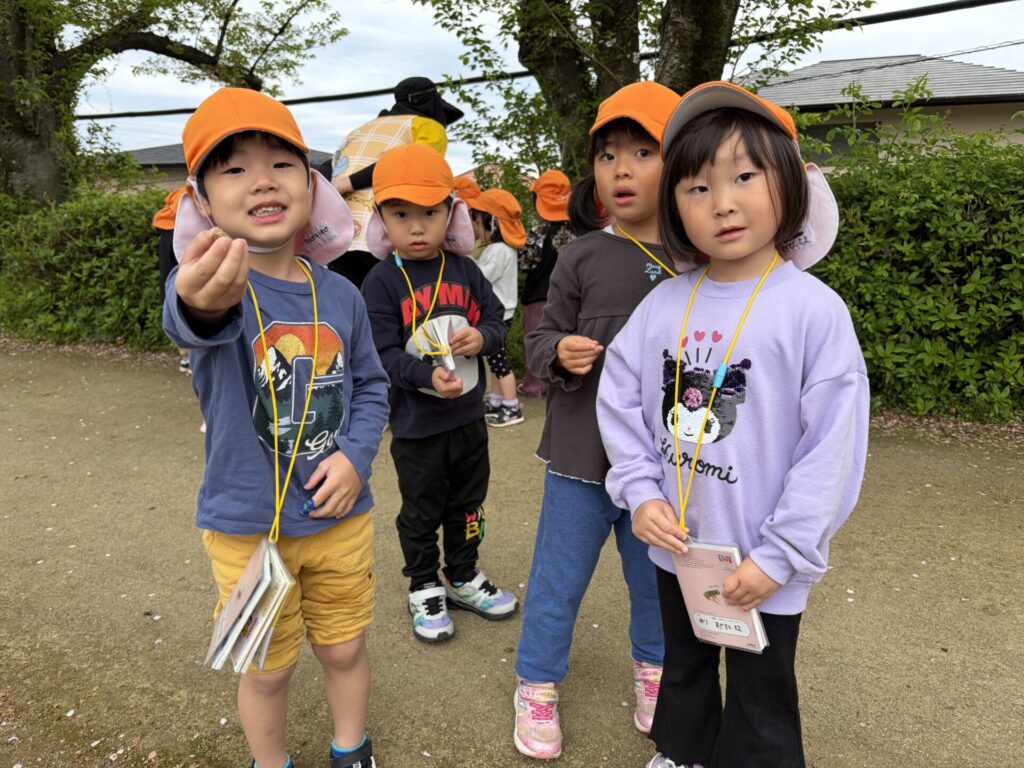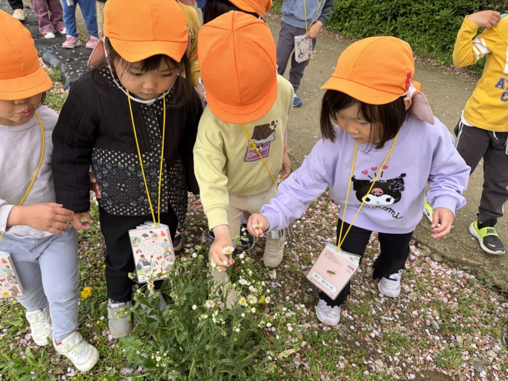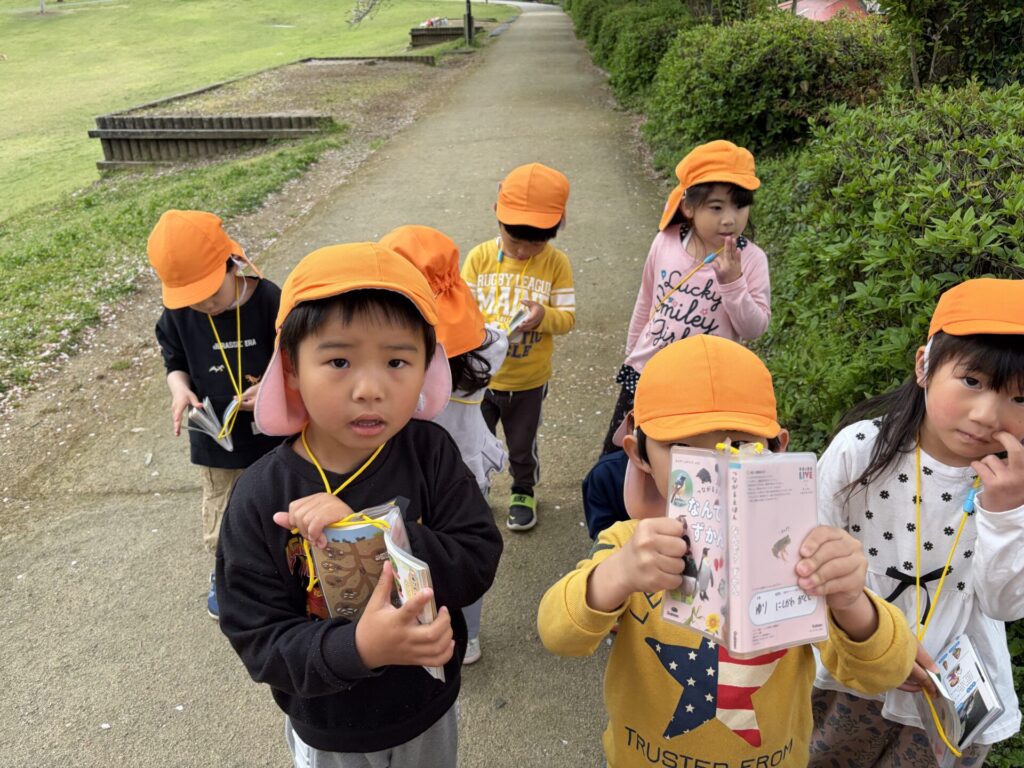 202604.09 ゆり組(お散歩に行ったよ!) 今日は、ゆり組さんに進級して、初のお散歩に行きました! 春のお花などを探しに図鑑を持って行きました!! 皆、夢中になって探して、博士に成りきってましたよ~💖