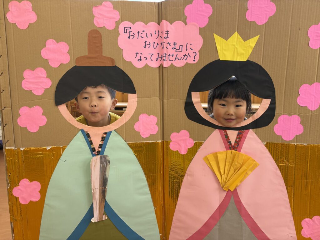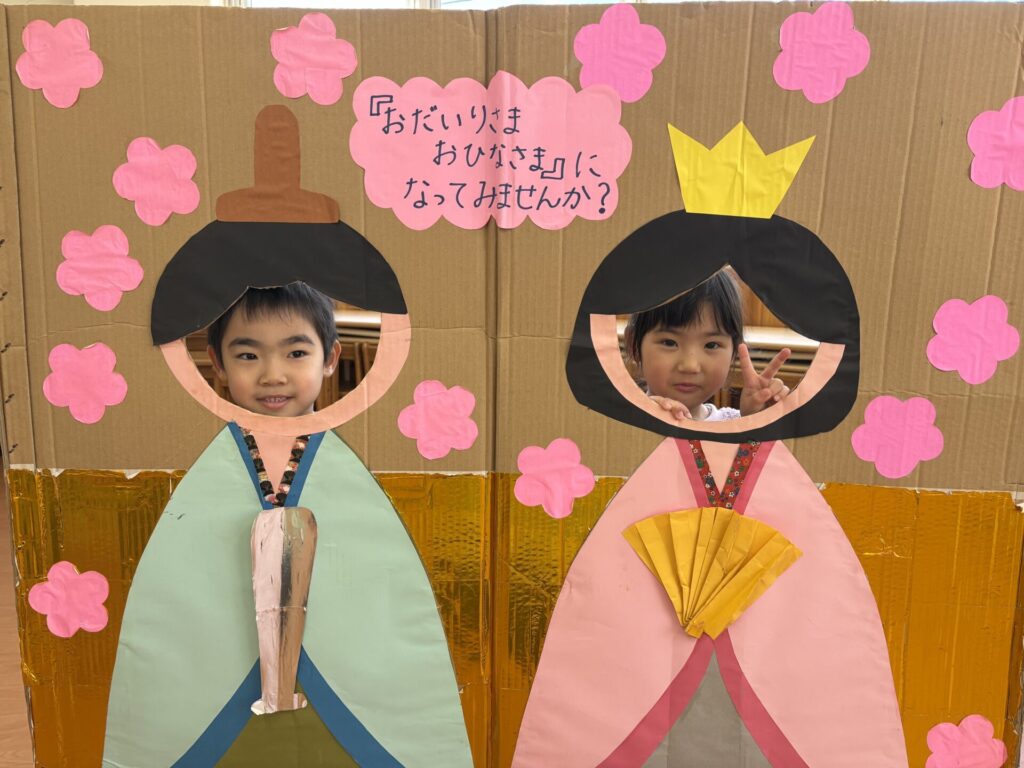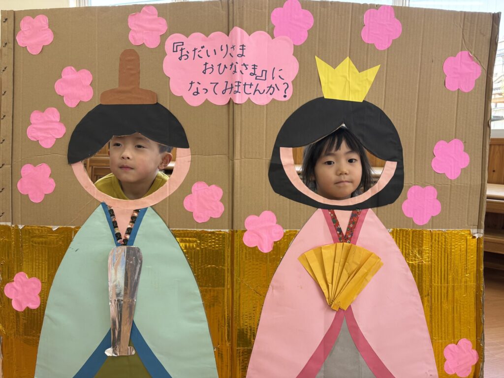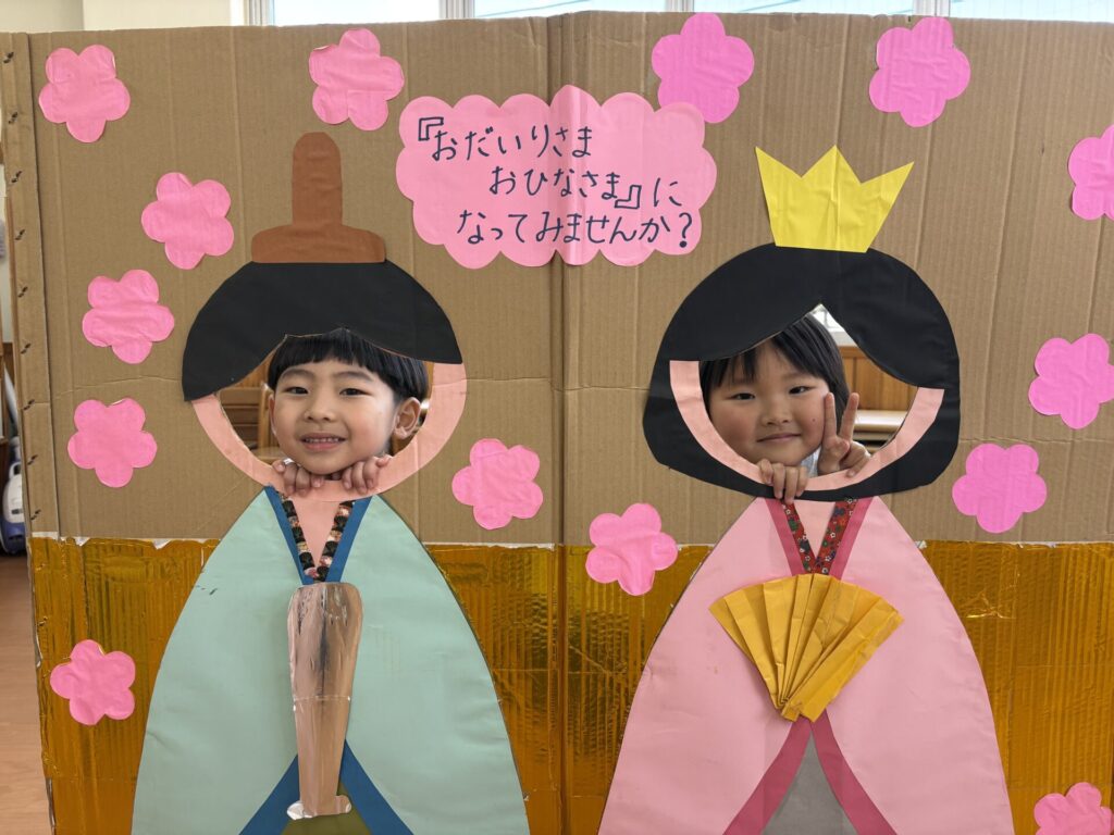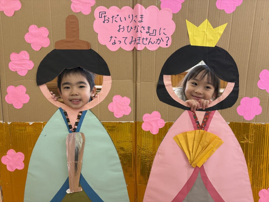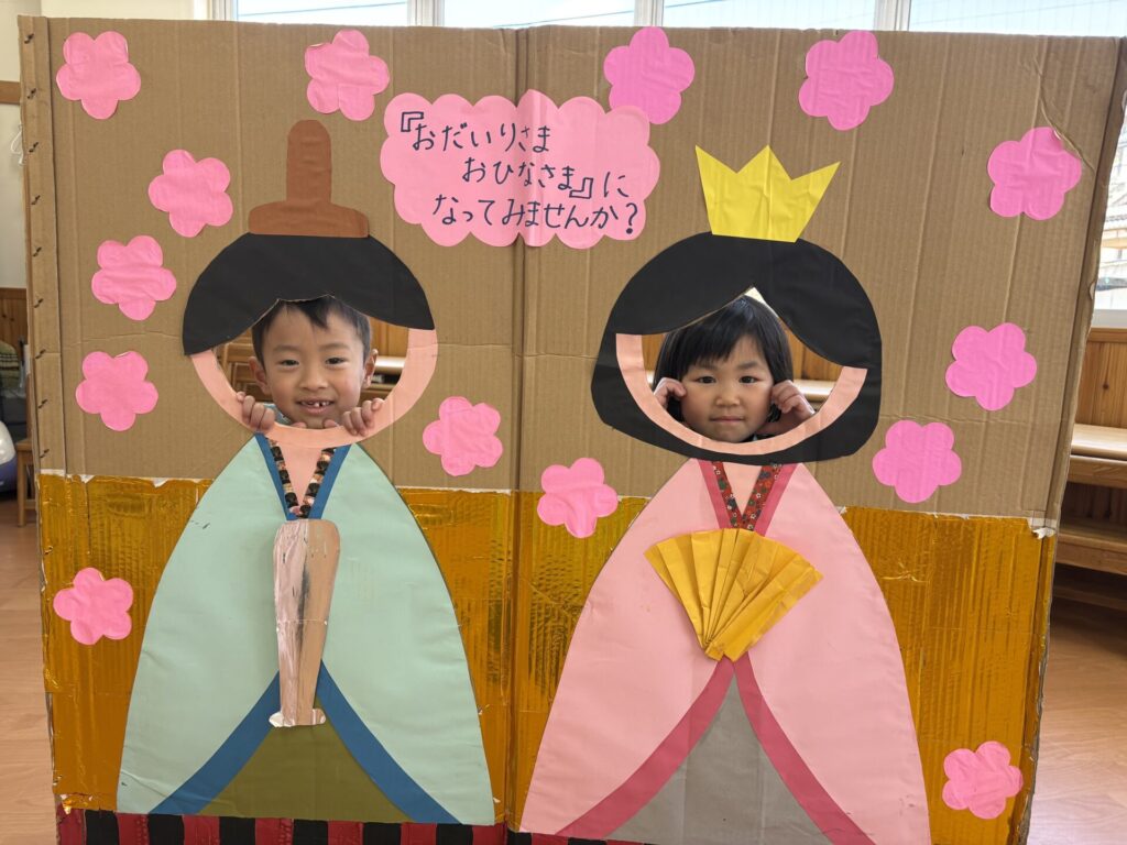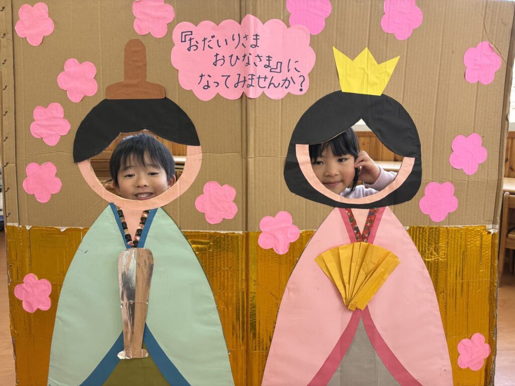 戸外でもたくさん遊び、ひな祭りの顔パネルも楽しんでいますよ✨