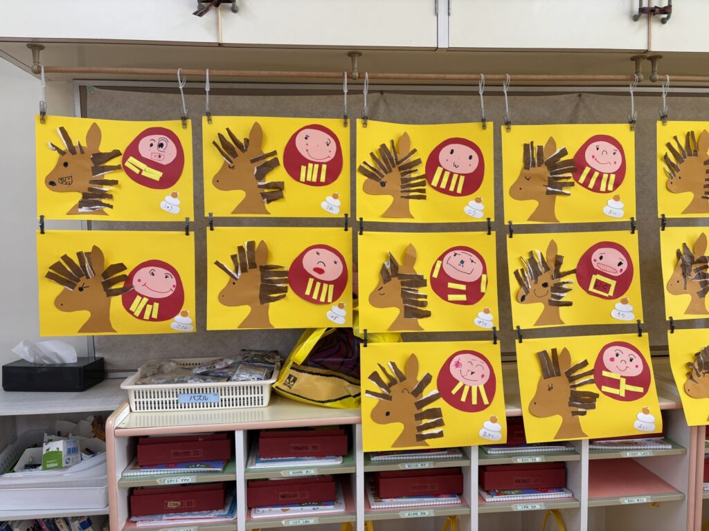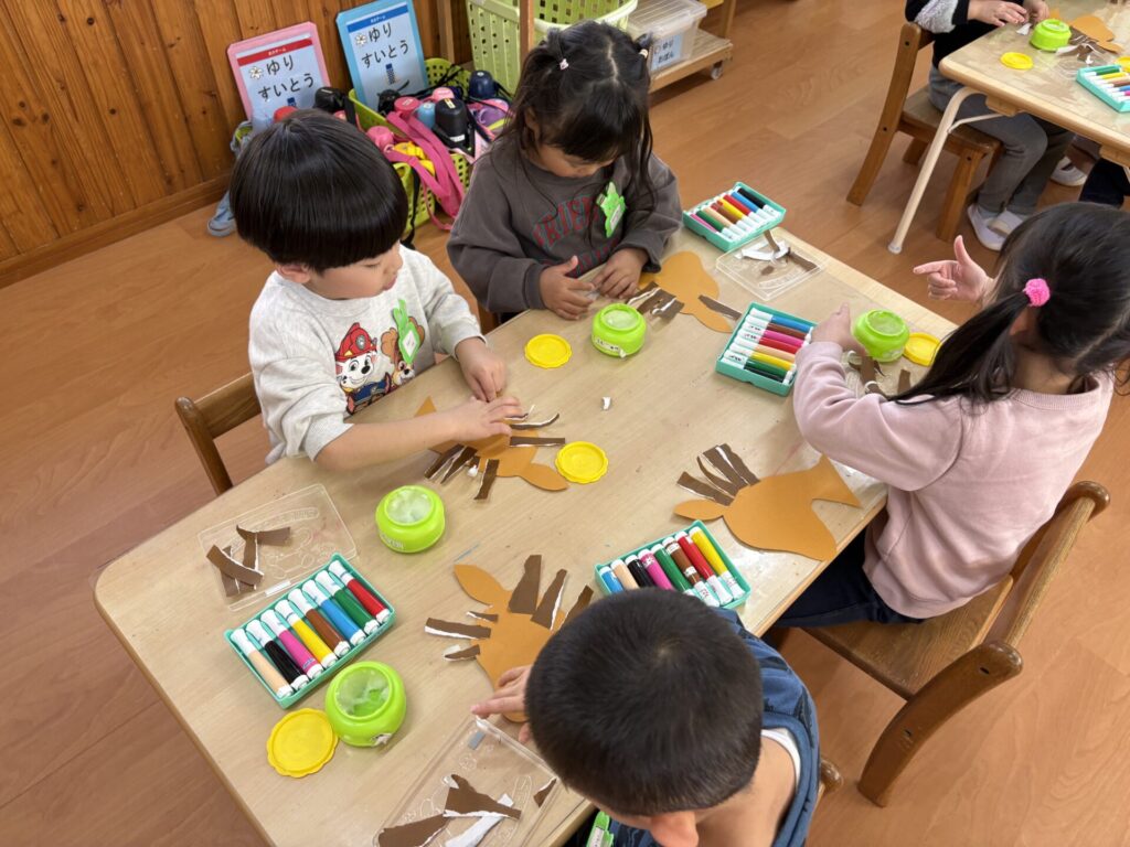 折り紙を破って、鳥のたて髪に見立てましたよ✨