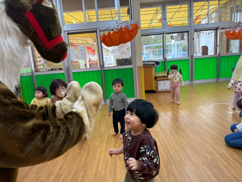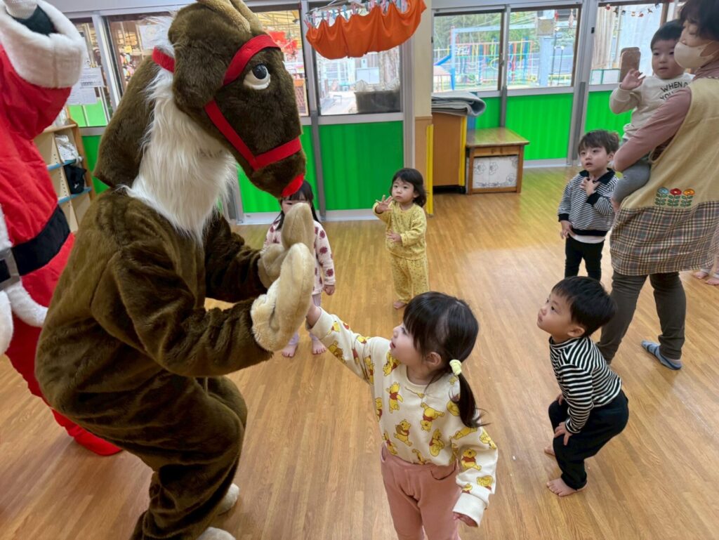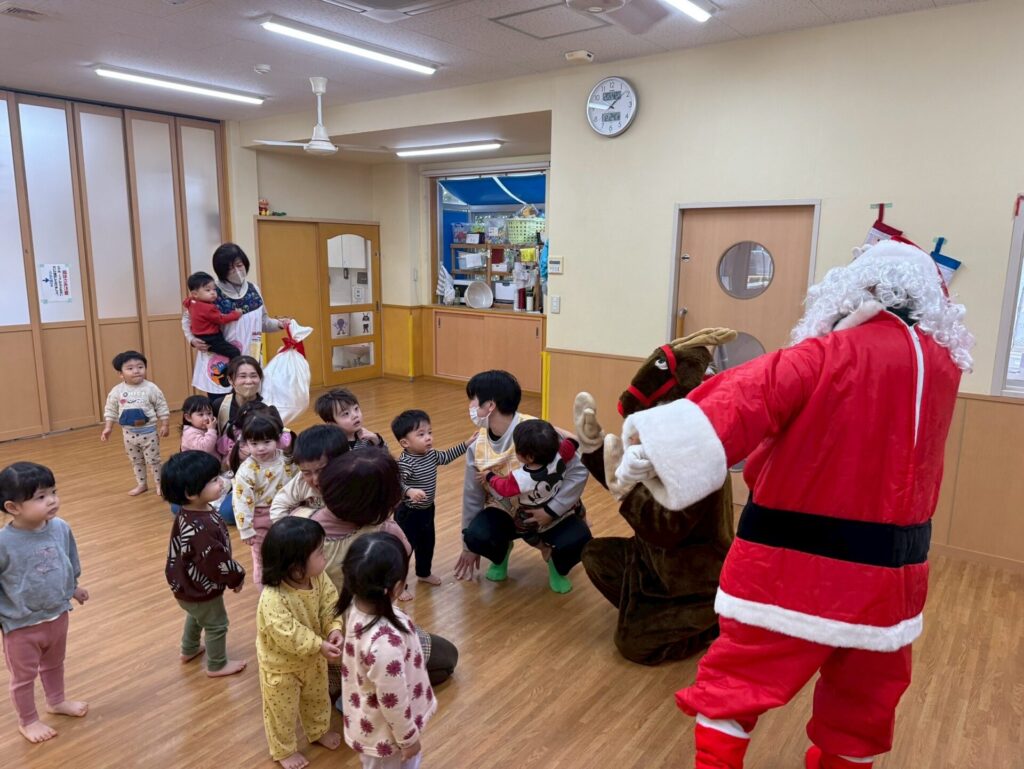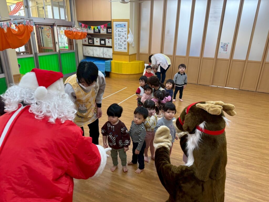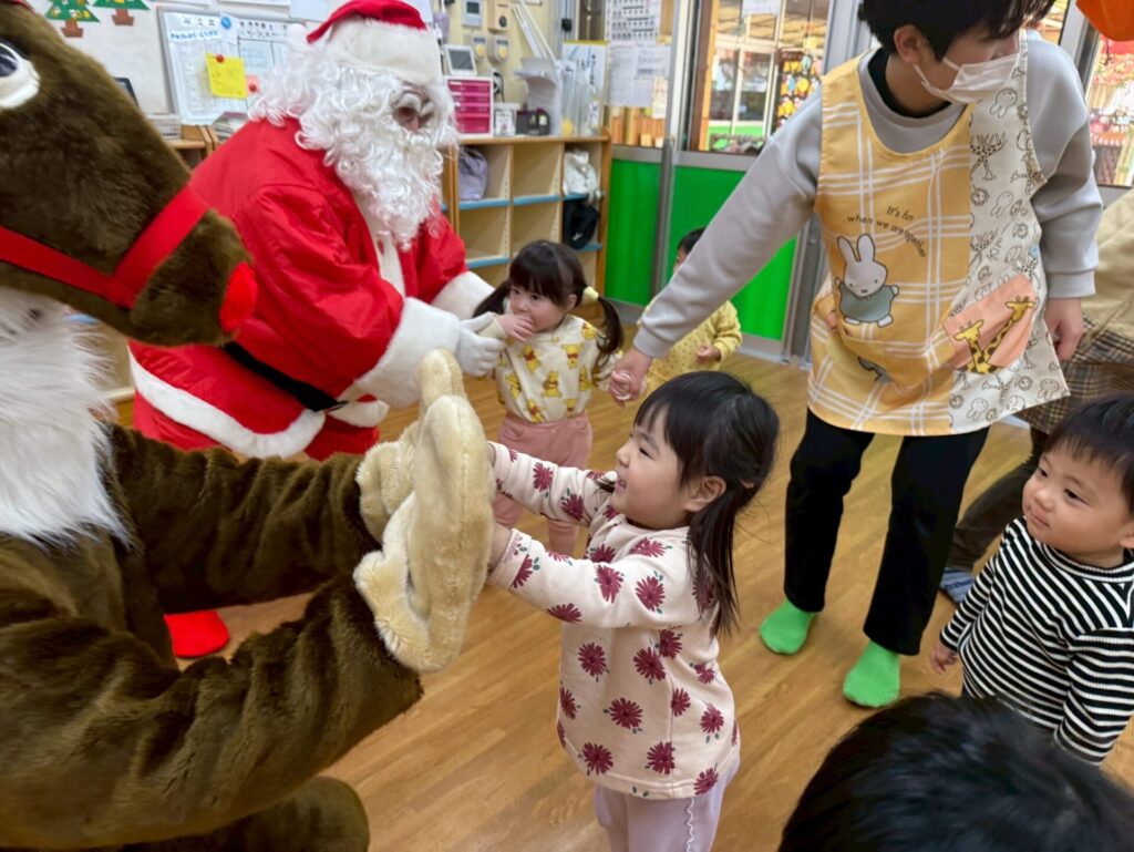 未満児さんクラスにもサンタさんとトナカイさんが来てくれました!✨