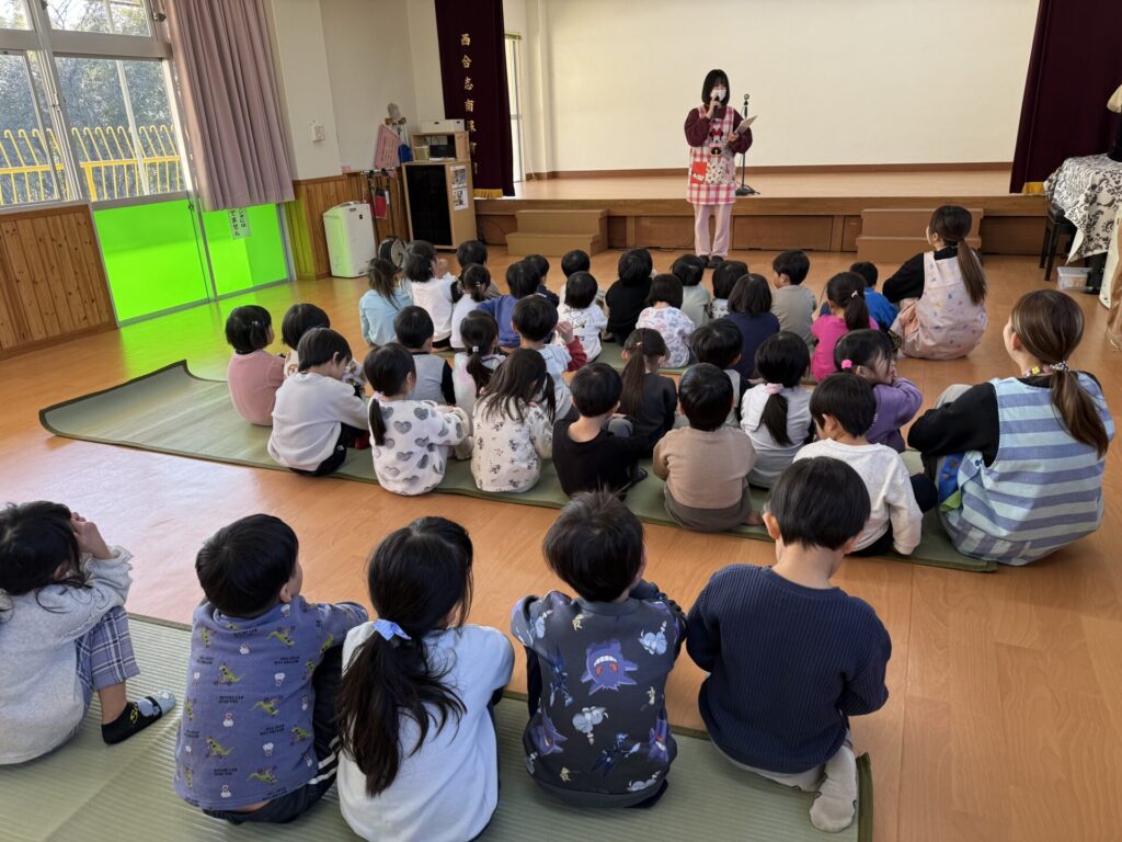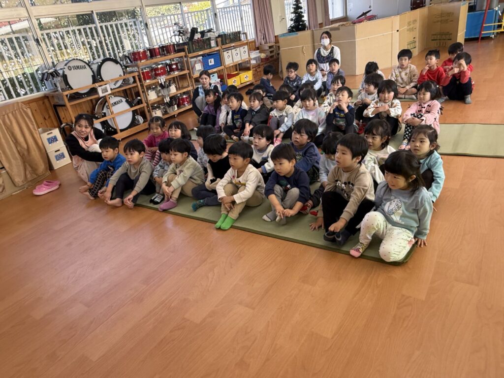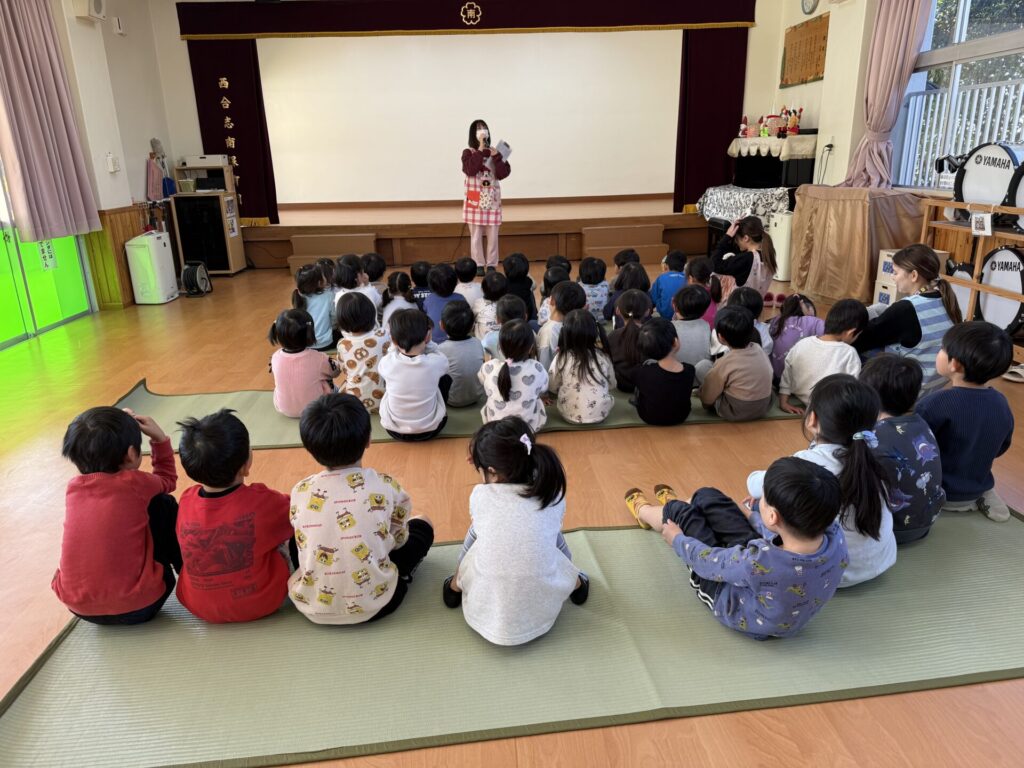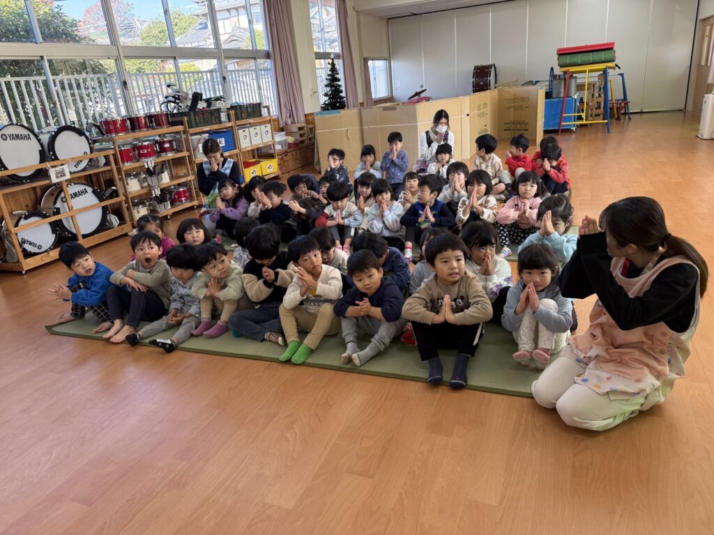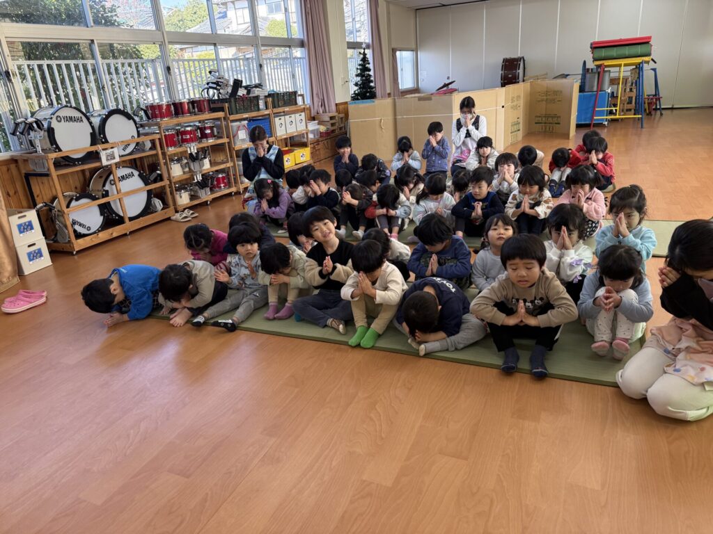 202512.15 ステージの神様よろしくねの会 今日は、ステージの神様よろしくねの会がありました! 以上児クラスの発表会に向けて、これから劇や合奏の練習をたくさんしていきます。 みんながステージでのお約束を守ってケガ無く、楽しく練習できるようにステージの神様にお祈りしましたよ✨