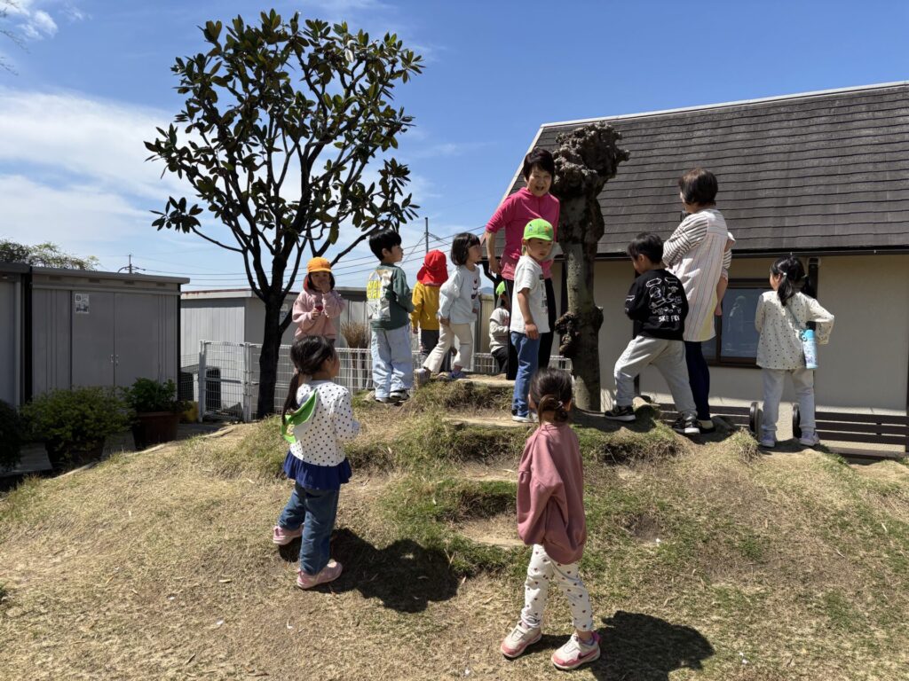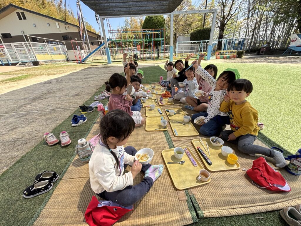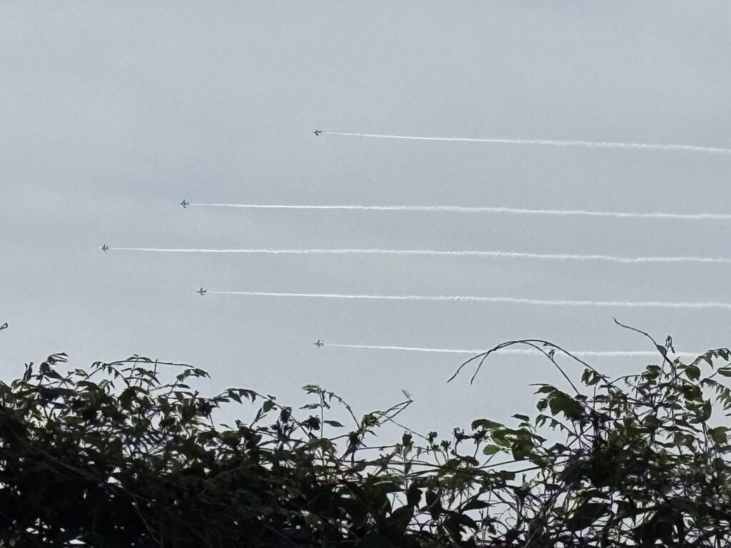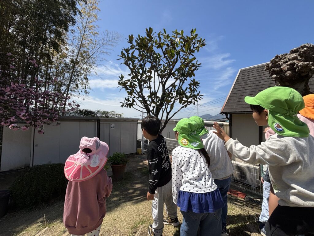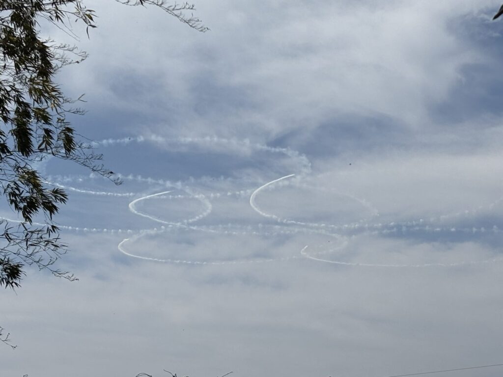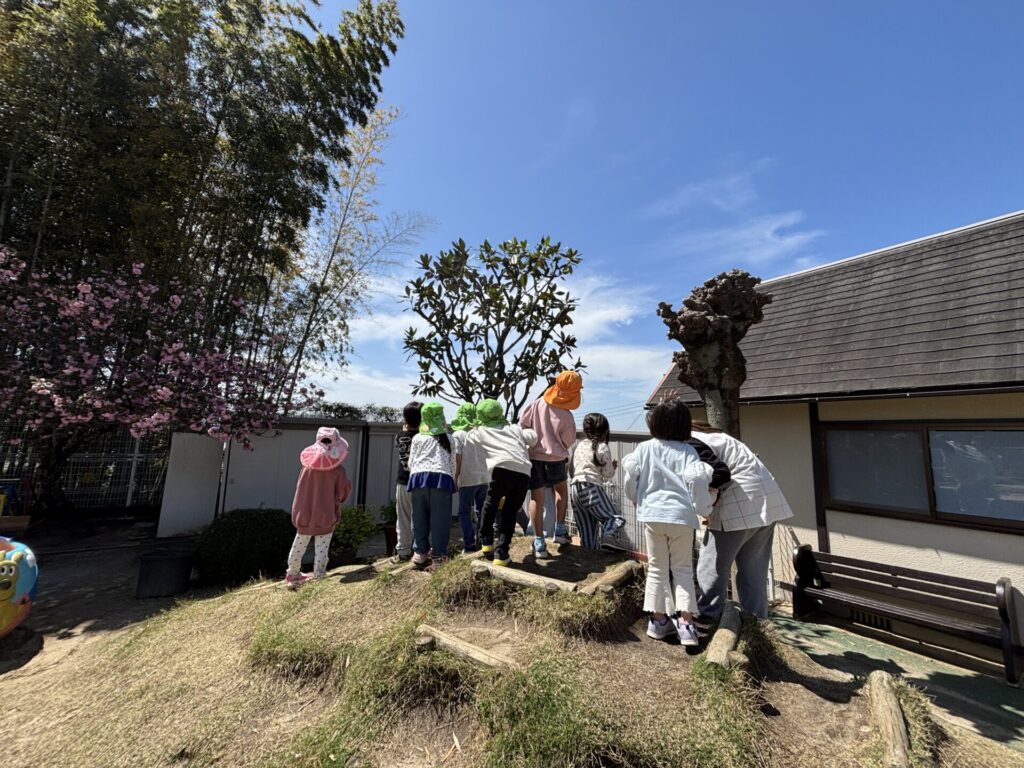 202604.11 ブルーインパルスが見えました! 今日は、ブルーインパルスが熊本に来るということで、11時頃園庭で待っていました。 遠くから音が聞こえてきて、園からもブルーインパルスが見えましたよ✨ 大興奮の子ども達でした😆