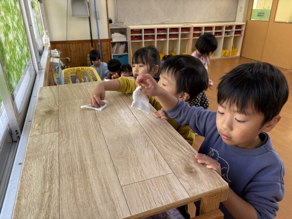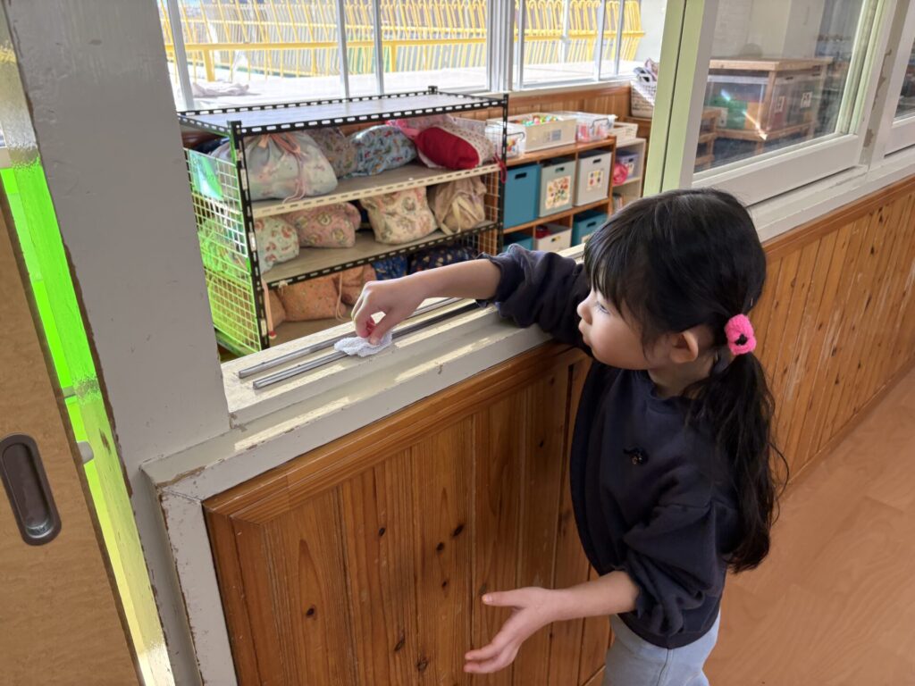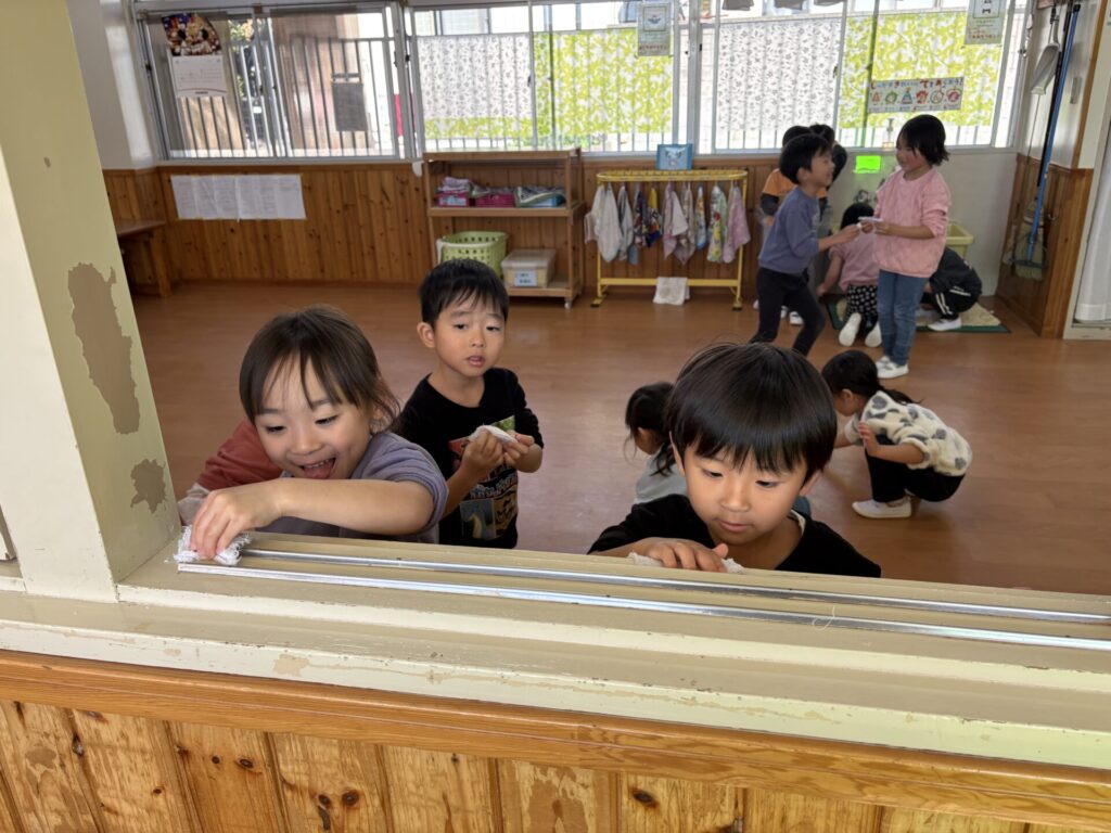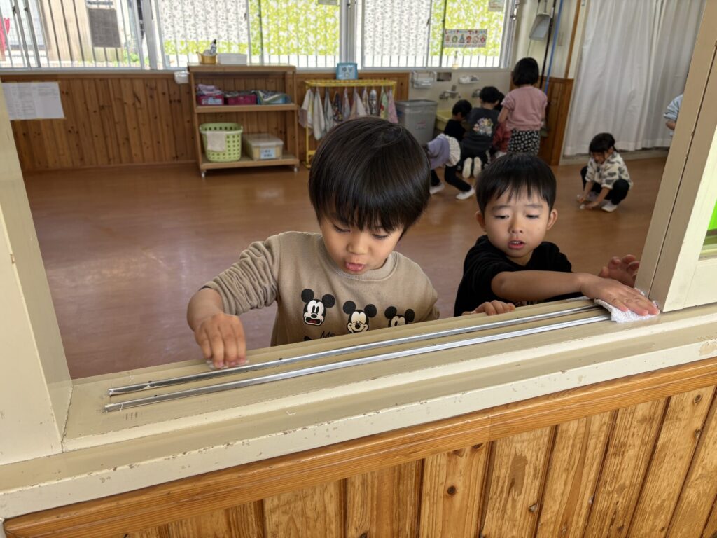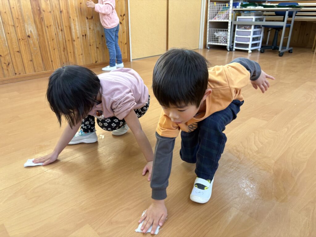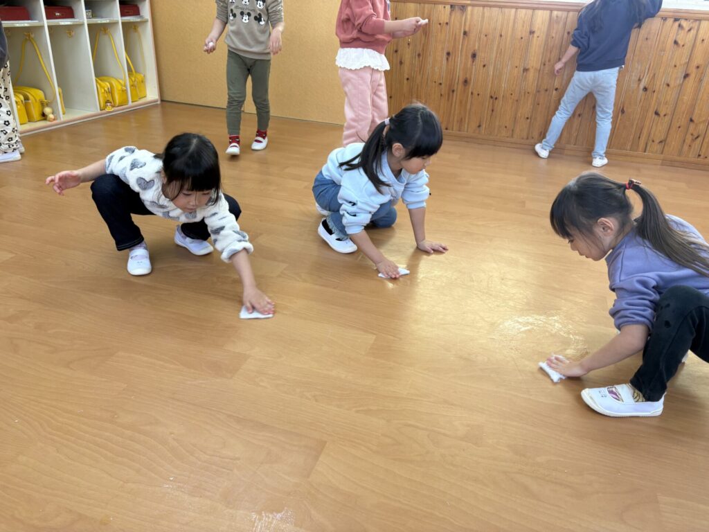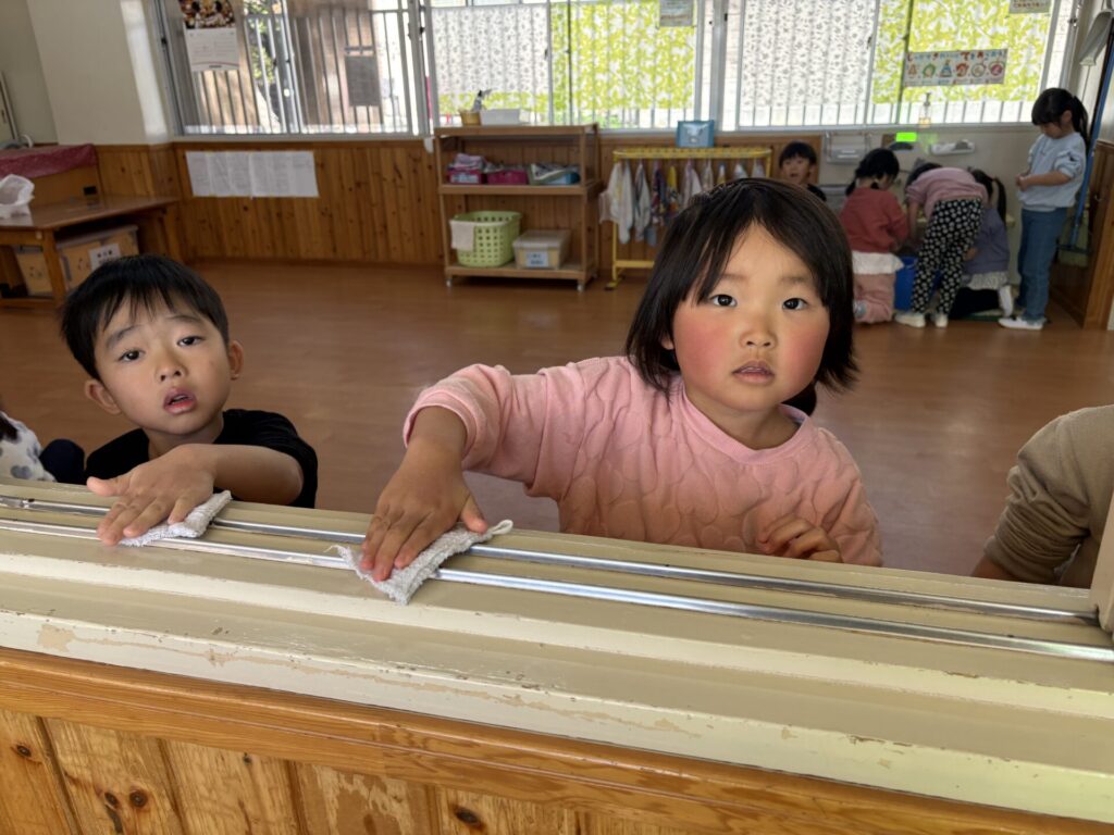 今日は、1年間お世話になった保育室の大掃除を行いました!!