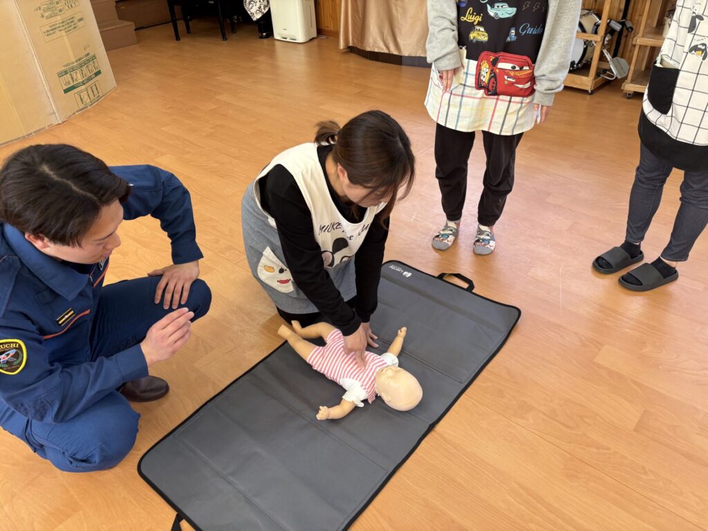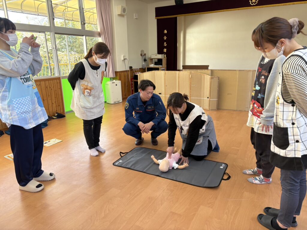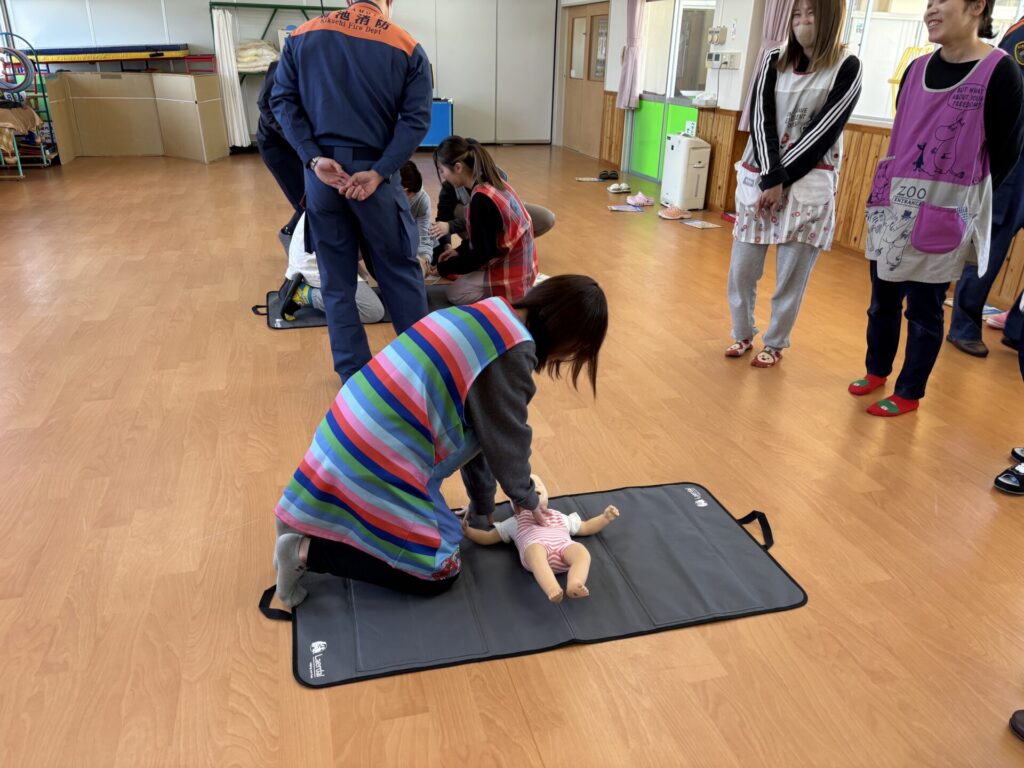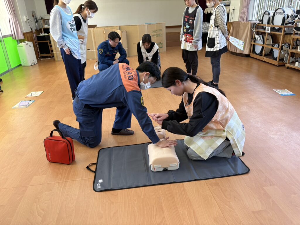 今日は、消防士の方に来ていただき、救急法の講習と訓練を行いました!