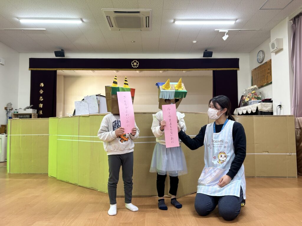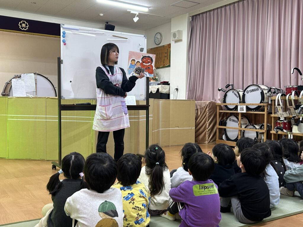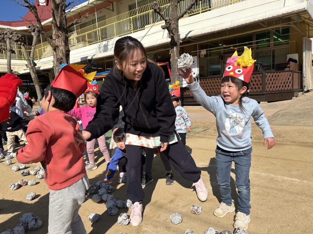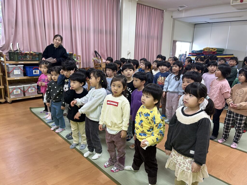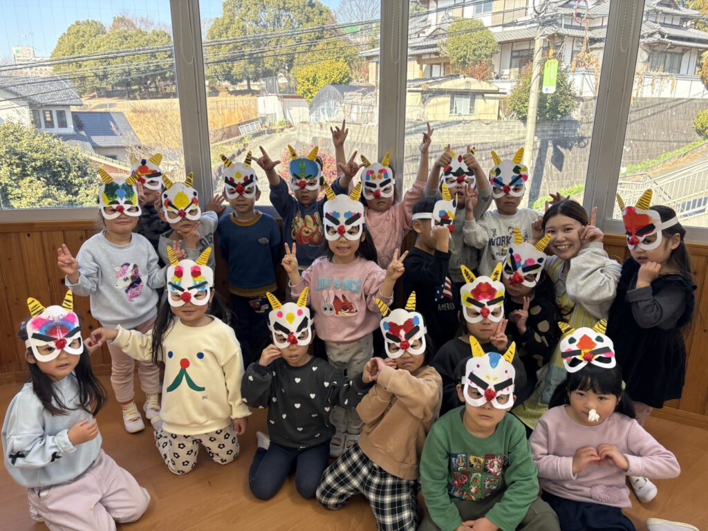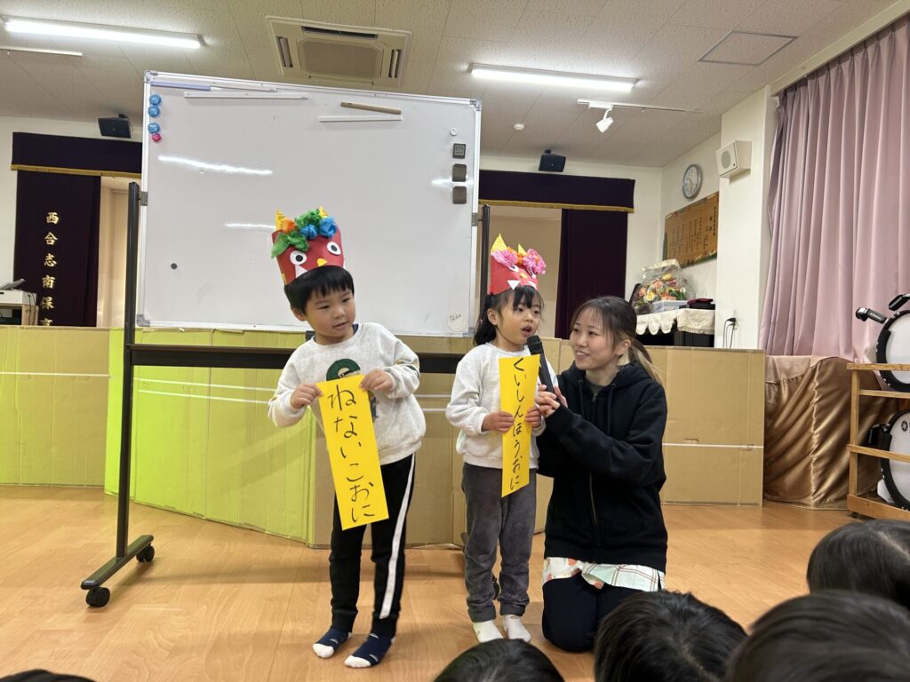 202602.03 豆まき会(以上児)① 今日は、豆まき会でした!ホールで豆まきの由来のお話を聞き、 豆まきの歌を歌ったり、『心の中の鬼』を発表し、どんな鬼をやっつけたいか考えました✨ その後、園庭に鬼が登場!「鬼は外、福は内!」とみんなで力を合わせて鬼をやっつけましたよ😁 ●ホールでのお話 ●園庭の豆まき(さくら組) ●ゆり組