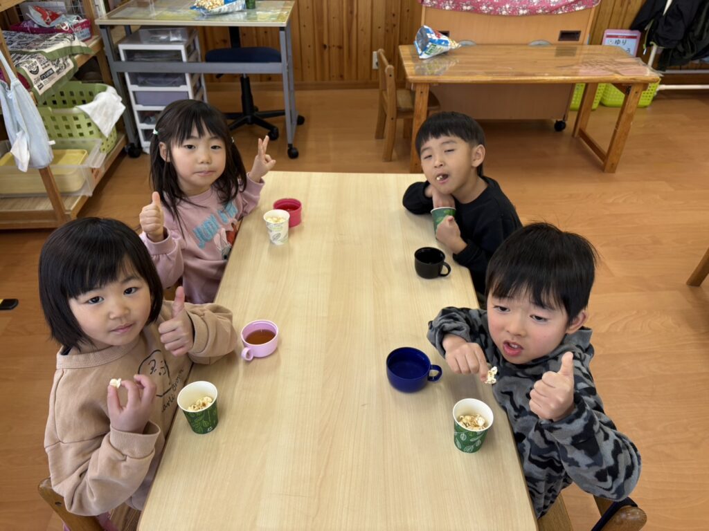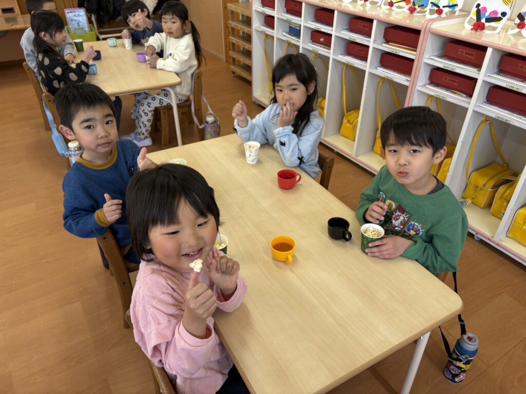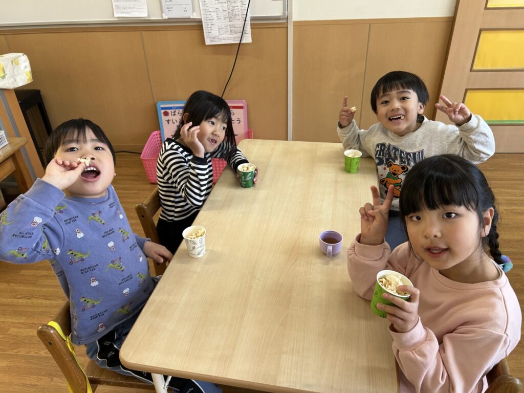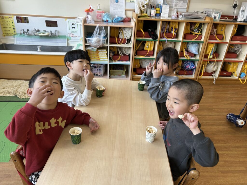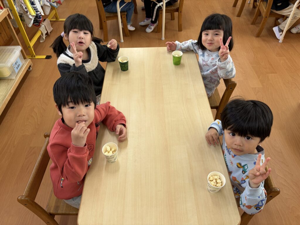 ★おやつにポップコーンを食べましたよ