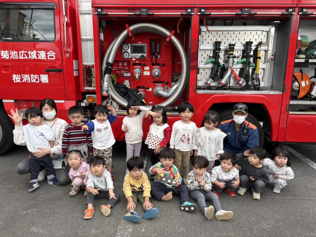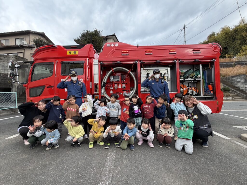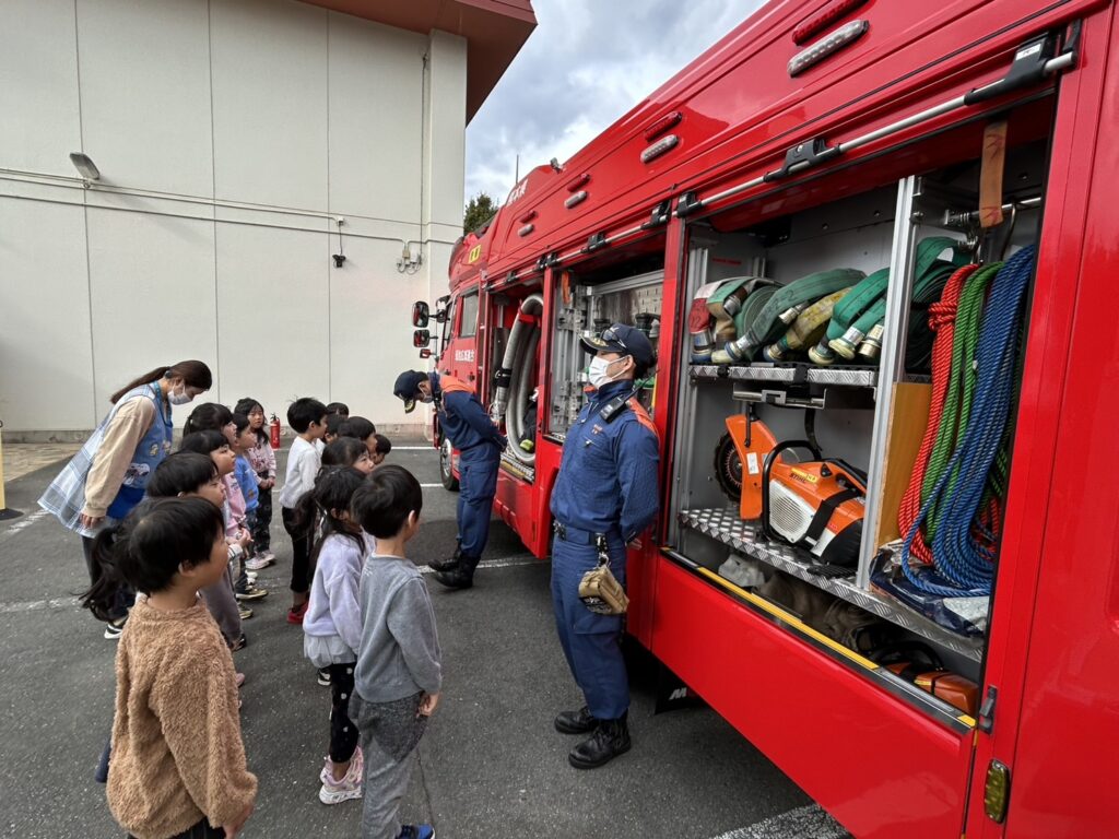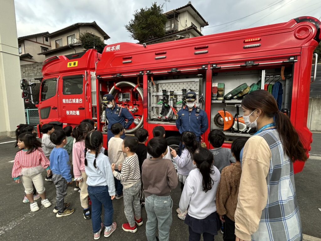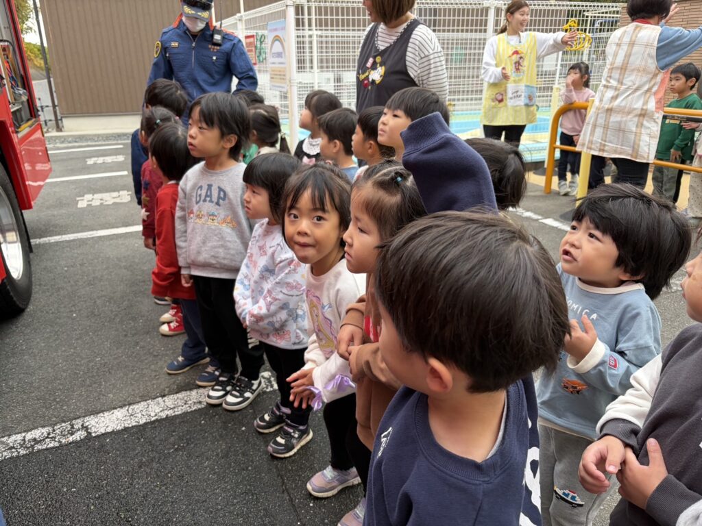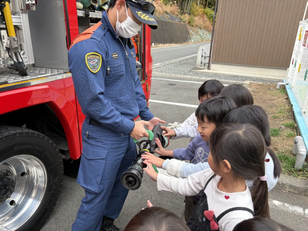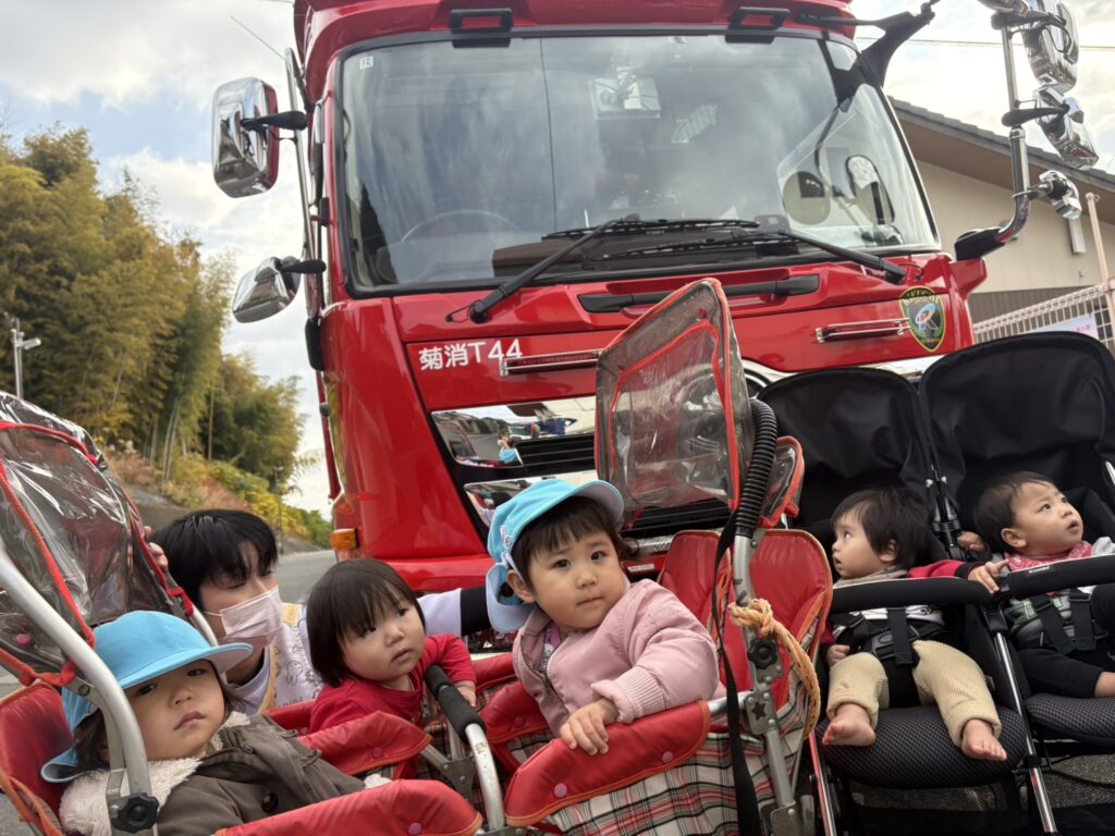 202512.03 避難訓練(火災) 今日は、消防士さんの立会いの下、火災訓練を実施しました! 以上児クラスは、防災指導のDVDを見て火災の恐ろしさを学び、 職員は消火訓練を行いました💪 消防車も間近で見せてもらって、大興奮の子ども達でした✨ ●以上児クラス ●未満児クラス ●職員の消火訓練