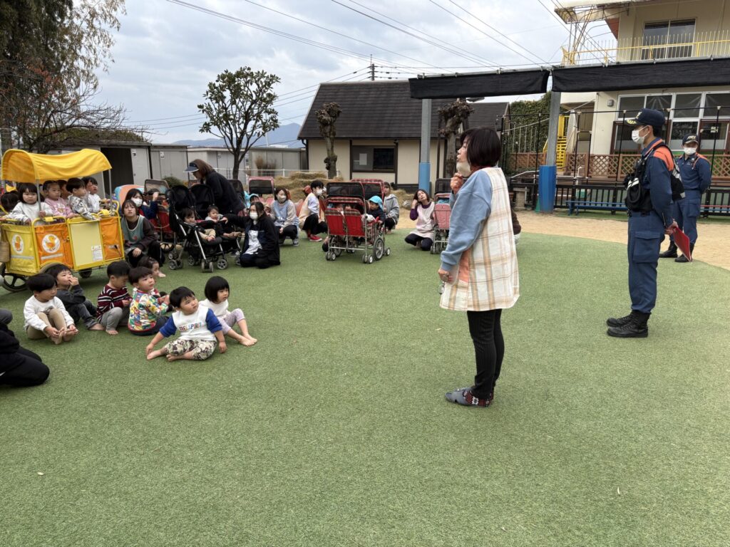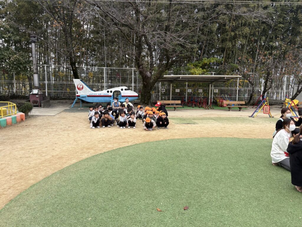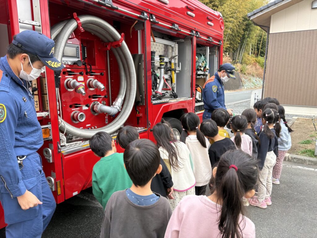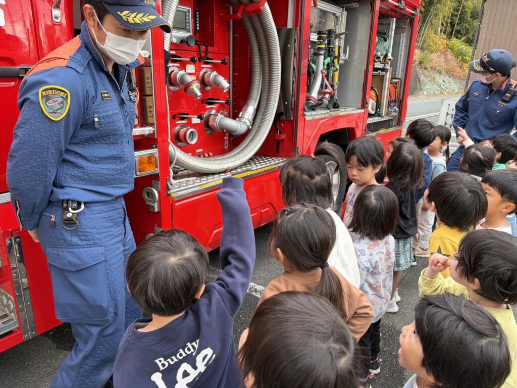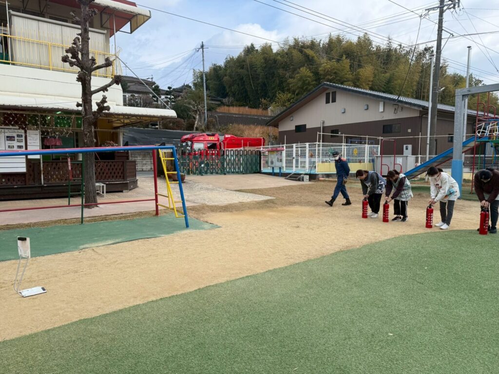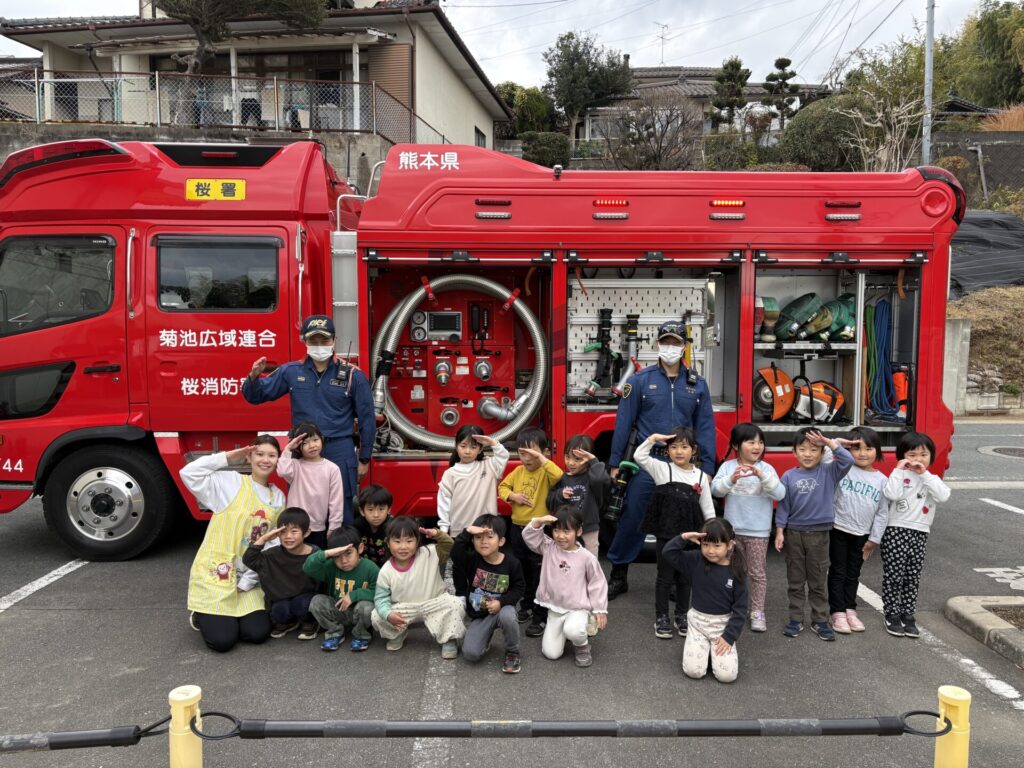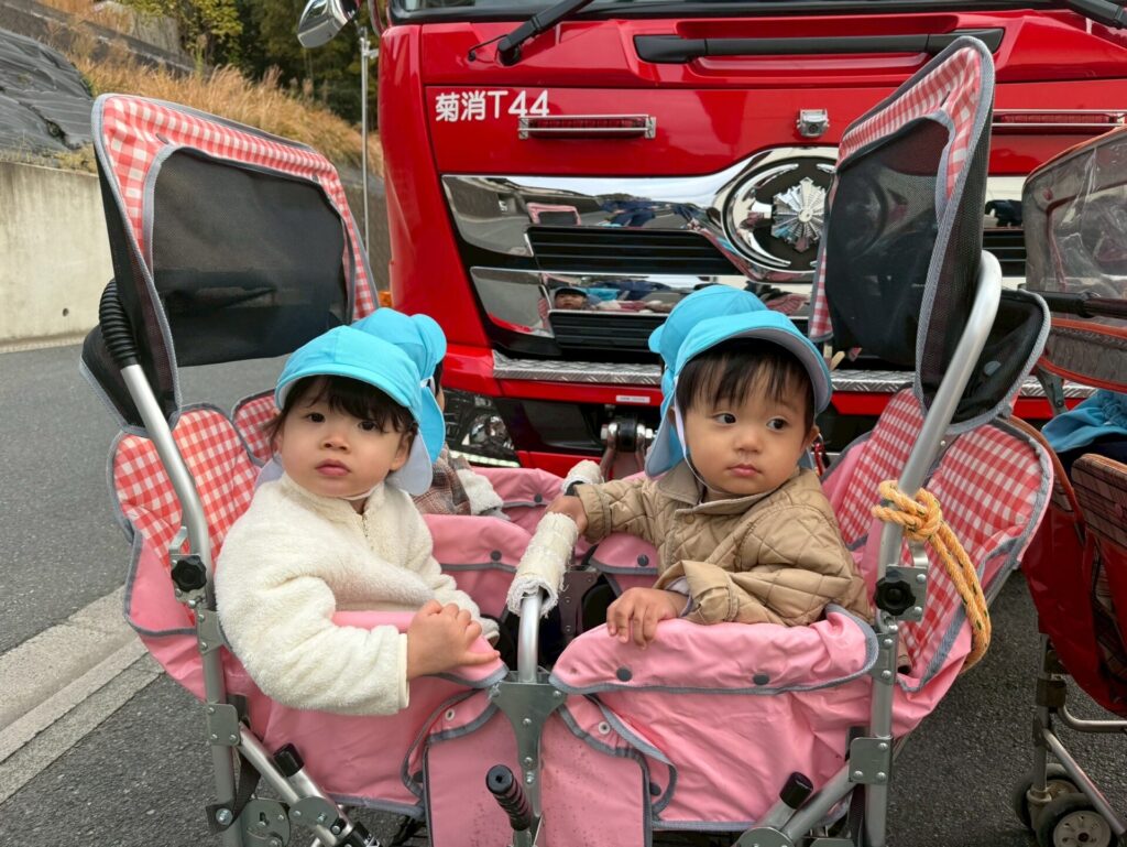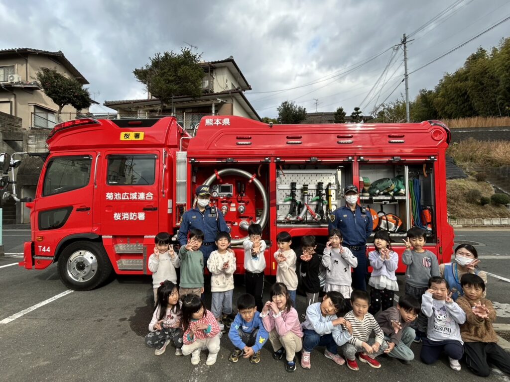 202512.03 避難訓練(火災) 今日は、消防士さんの立会いの下、火災訓練を実施しました! 以上児クラスは、防災指導のDVDを見て火災の恐ろしさを学び、 職員は消火訓練を行いました💪 消防車も間近で見せてもらって、大興奮の子ども達でした✨ ●以上児クラス ●未満児クラス ●職員の消火訓練